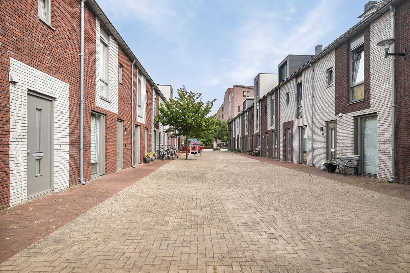 De woning is verder gebouwd conform recente maatstaven: o.a. hoge deuren, hogere plafonds op de eerste verdieping en ‘luie’ trappen zijn een verschil ten opzichte van woningen met een ouder bouwjaar. De raamkozijnen zijn daarbij praktisch uitgevoerd met mooie draai-/kiepramen. Ook is de woning al tijdens de bouw voorzien van een aantal goede veiligheidsvereisten, zoals draadloos geschakelde rookmelders op het lichtnet en een goede elektrische installatie met randaarde op ieder stopcontact. Een fijn en veilig idee!