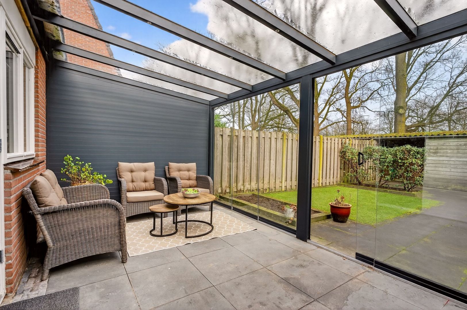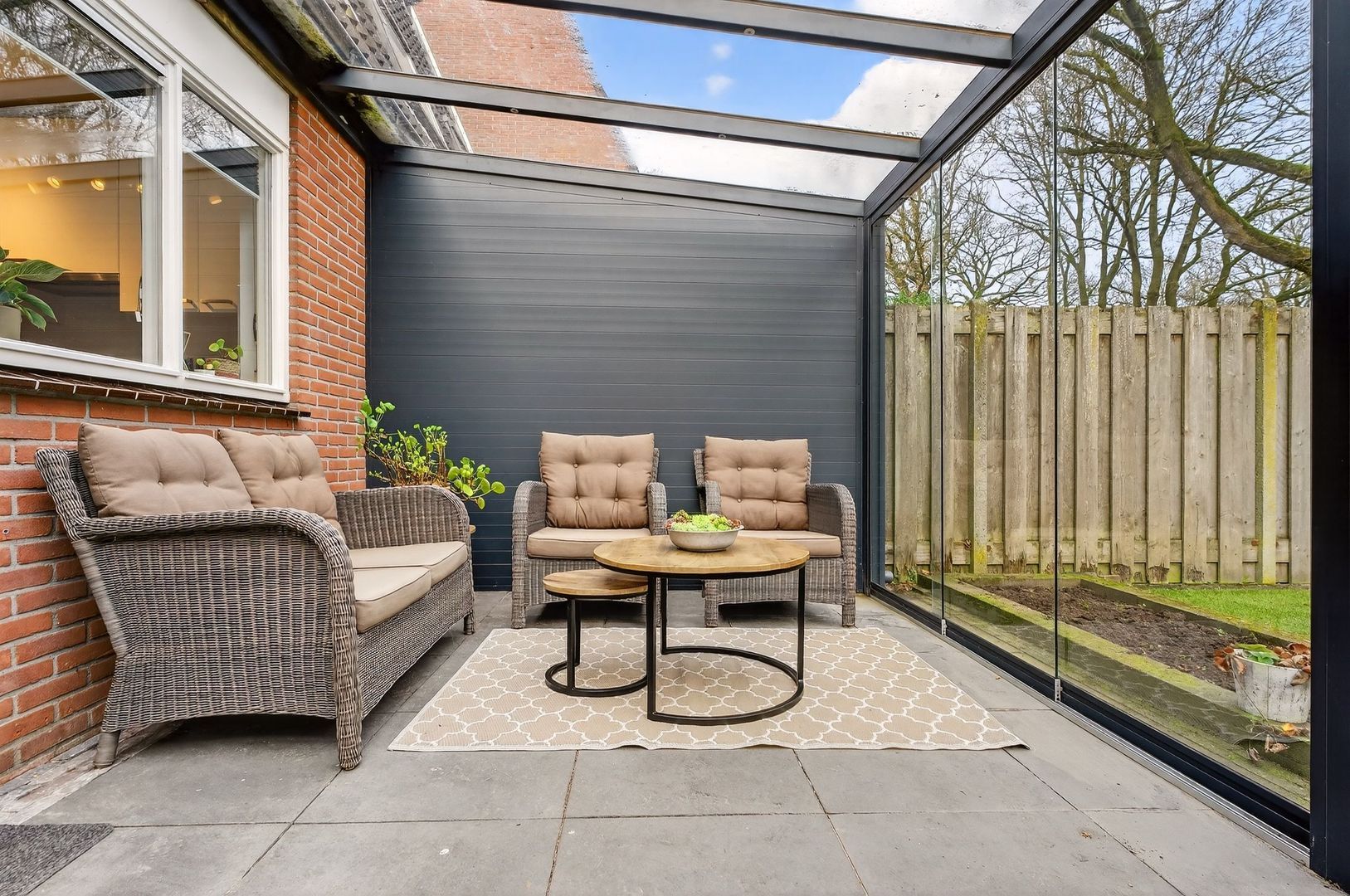 Een echte meerwaarde is de fraaie serre, die fungeert als verlengstuk van de woning en het mogelijk maakt om in alle seizoenen beschut buiten te verblijven.