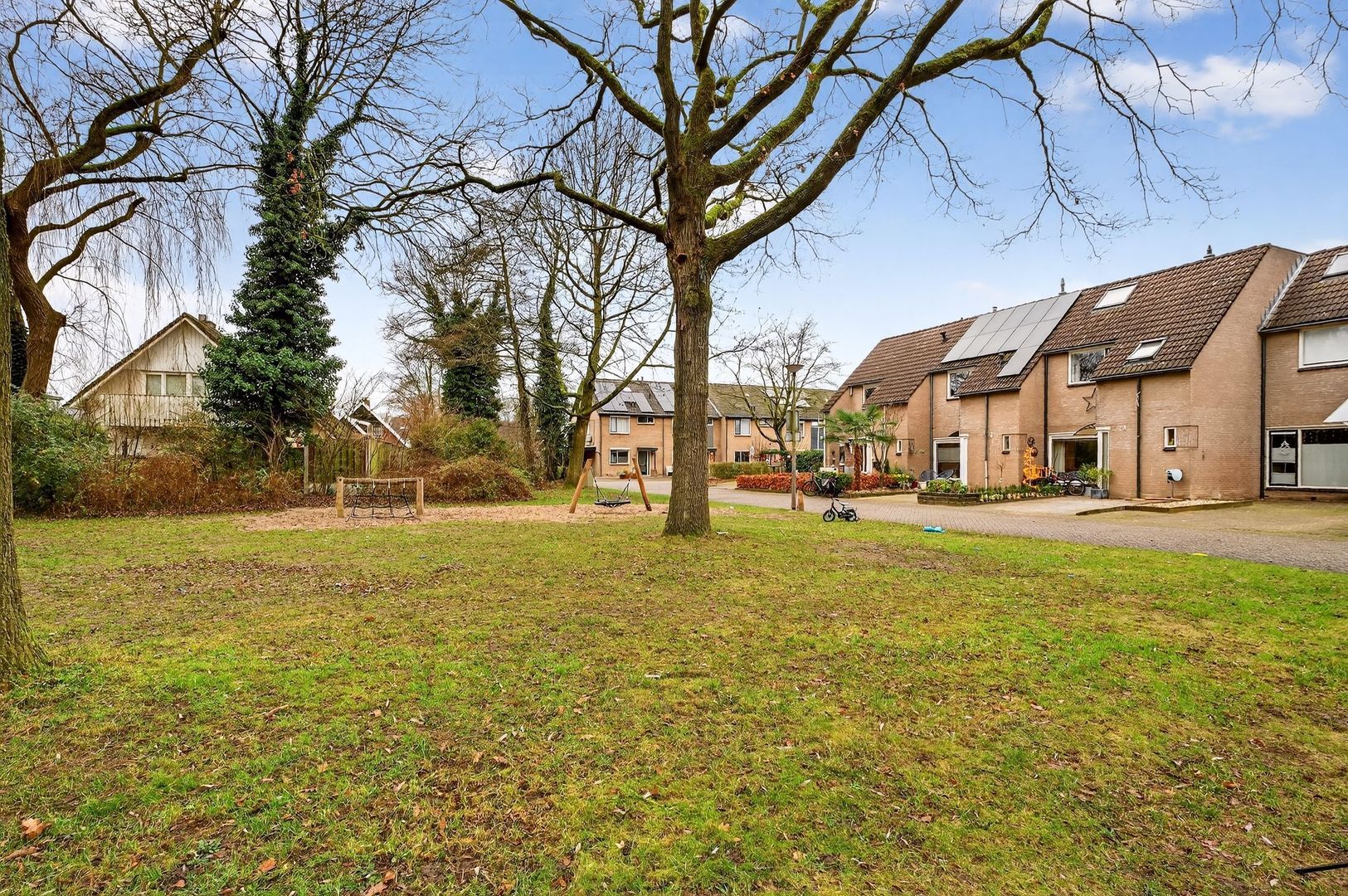 Het is prettig en rustig thuiskomen in deze straat, waar uitsluitend bestemmingsverkeer komt. Dit zorgt voor een veilige en aangename woonomgeving, ideaal voor gezinnen. Direct voor de woning ligt een groen grasveld met een speeltuintje, wat de straat extra kindvriendelijk maakt en uitnodigt tot buiten spelen.