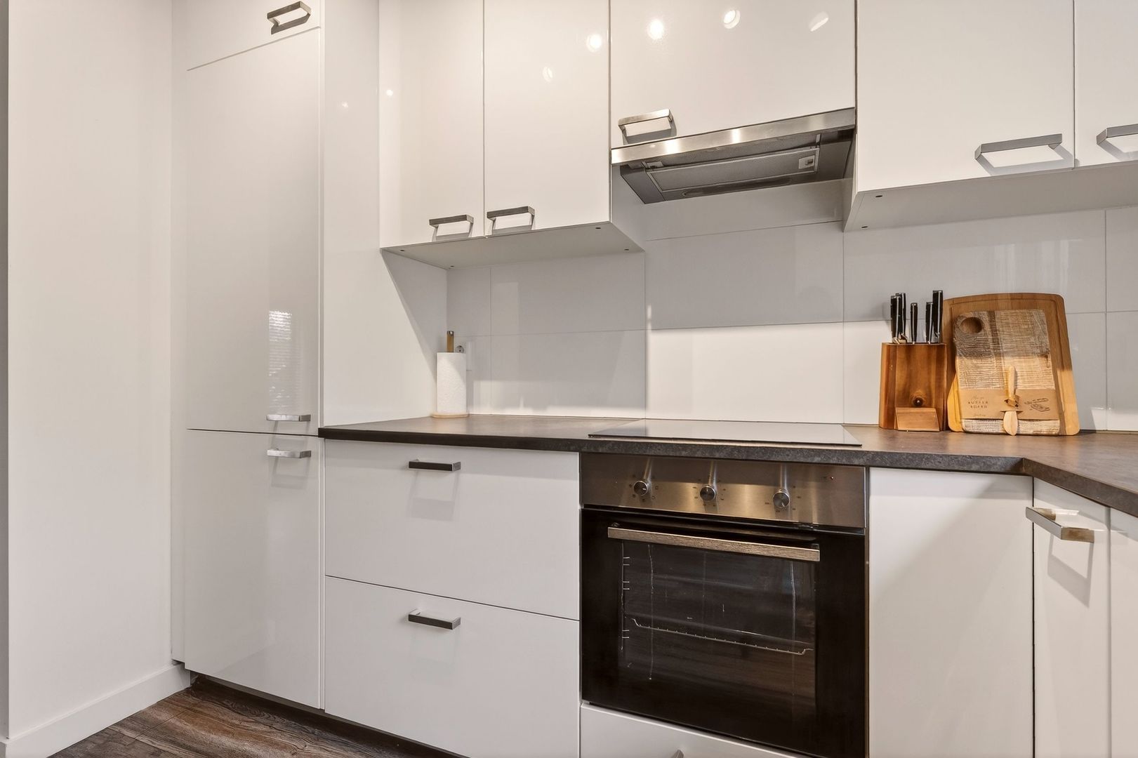 De ruime keuken is praktisch van opzet en biedt volop werk- en opbergruimte. De keuken is uitgerust met een inductiekookplaat en een oven waardoor deze van alle gemakken is voorzien. Door de prettige indeling is de keuken een fijne plek om te koken en samen te komen.