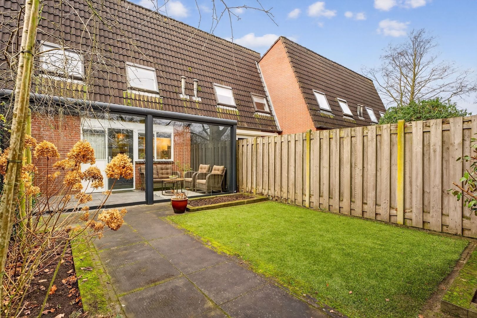 Ook buiten is het comfortabel wonen. De onderhoudsvriendelijke tuin beschikt over een serre, een berging met elektra en een handige achterom. Dit alles maakt deze woning tot een complete en comfortabele gezinswoning op een fijne locatie.