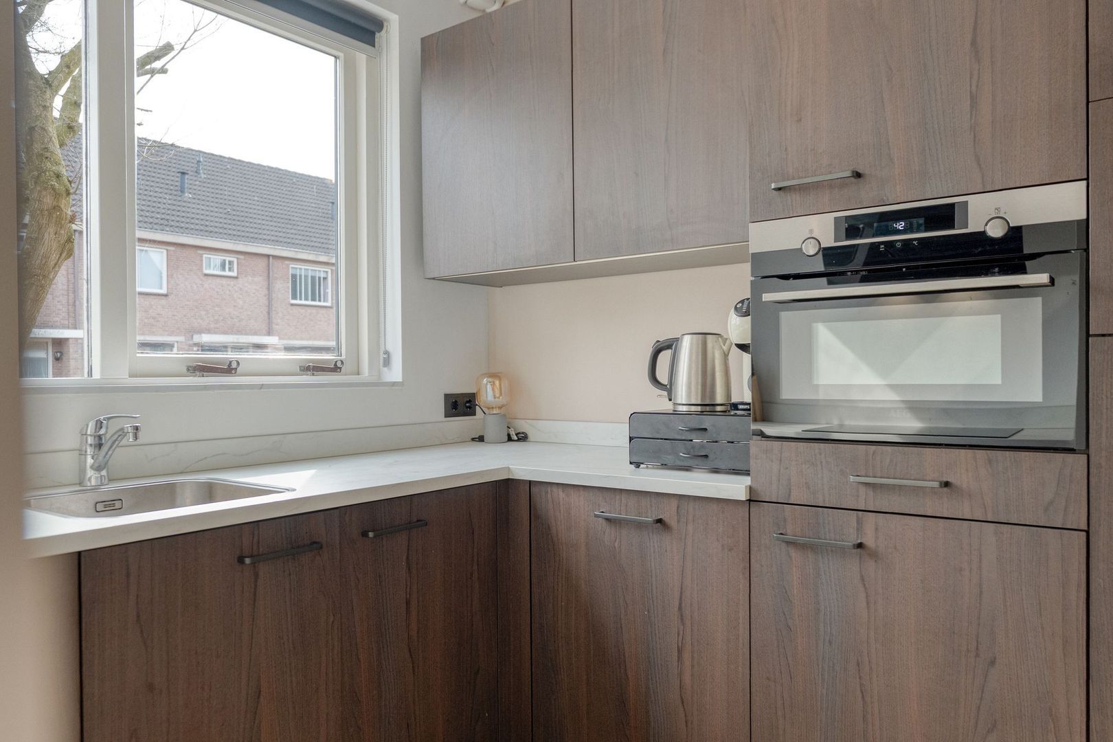 De moderne keuken (2025) is van alle gemakken voorzien en biedt een fraai vrij uitzicht over de straat. De keuken vormt een echte eyecatcher binnen de woning en sluit perfect aan op de rest van de afwerking.
