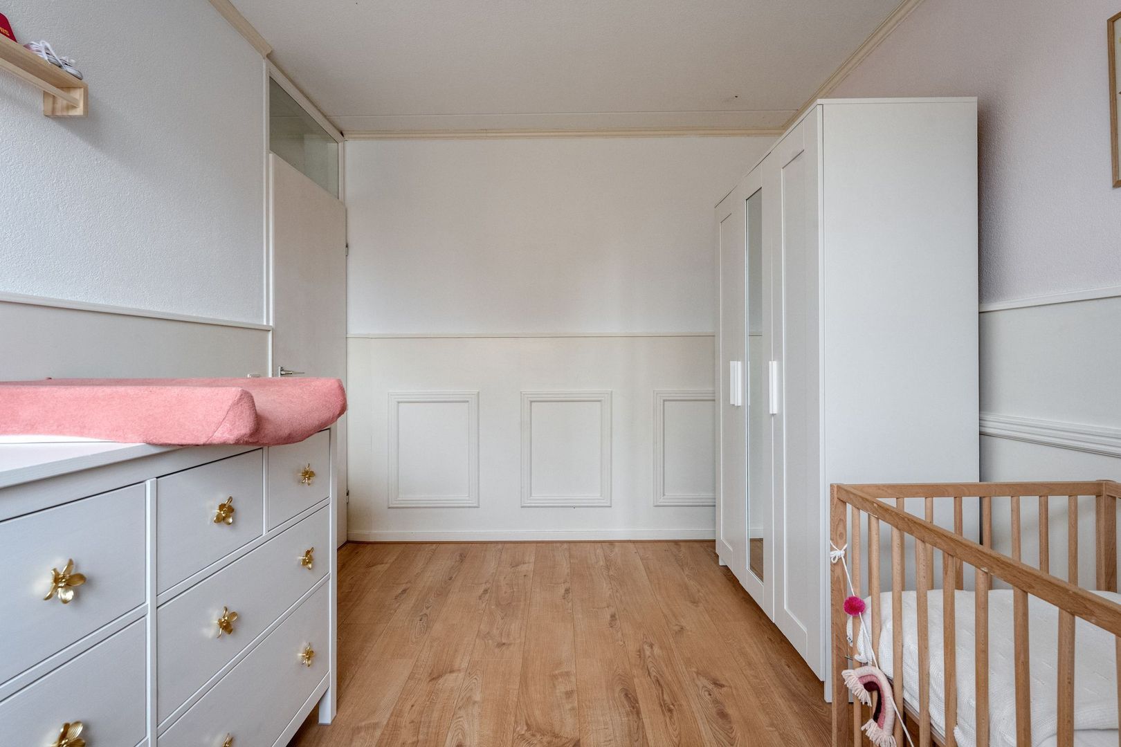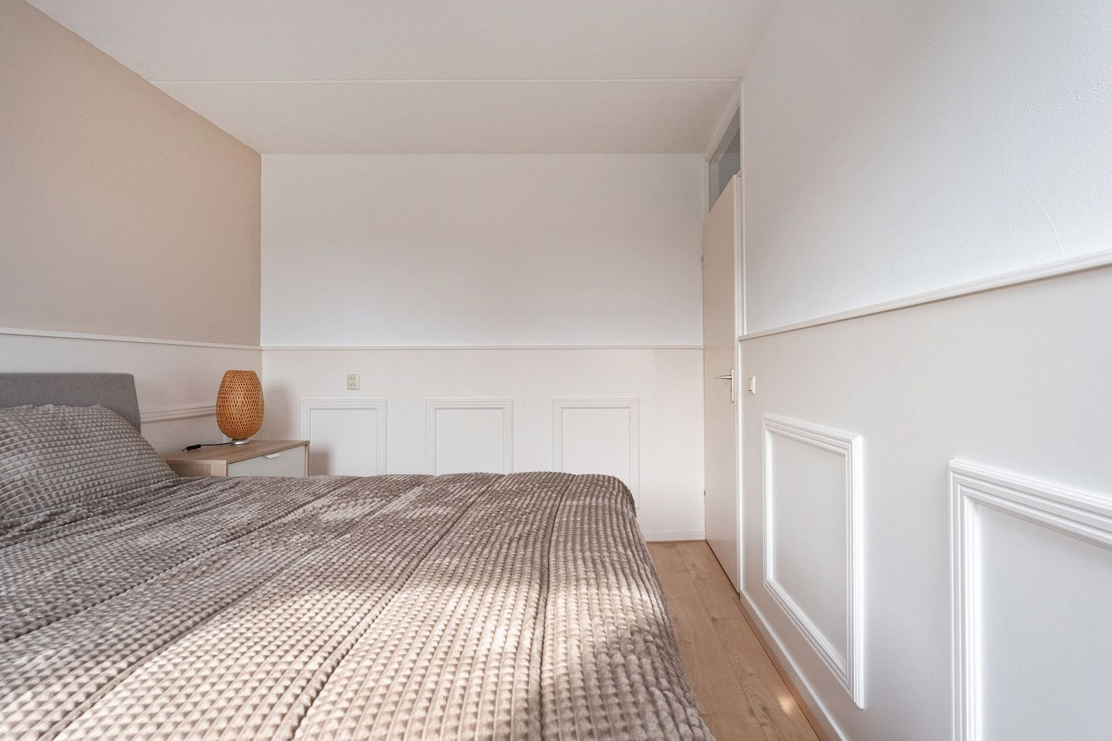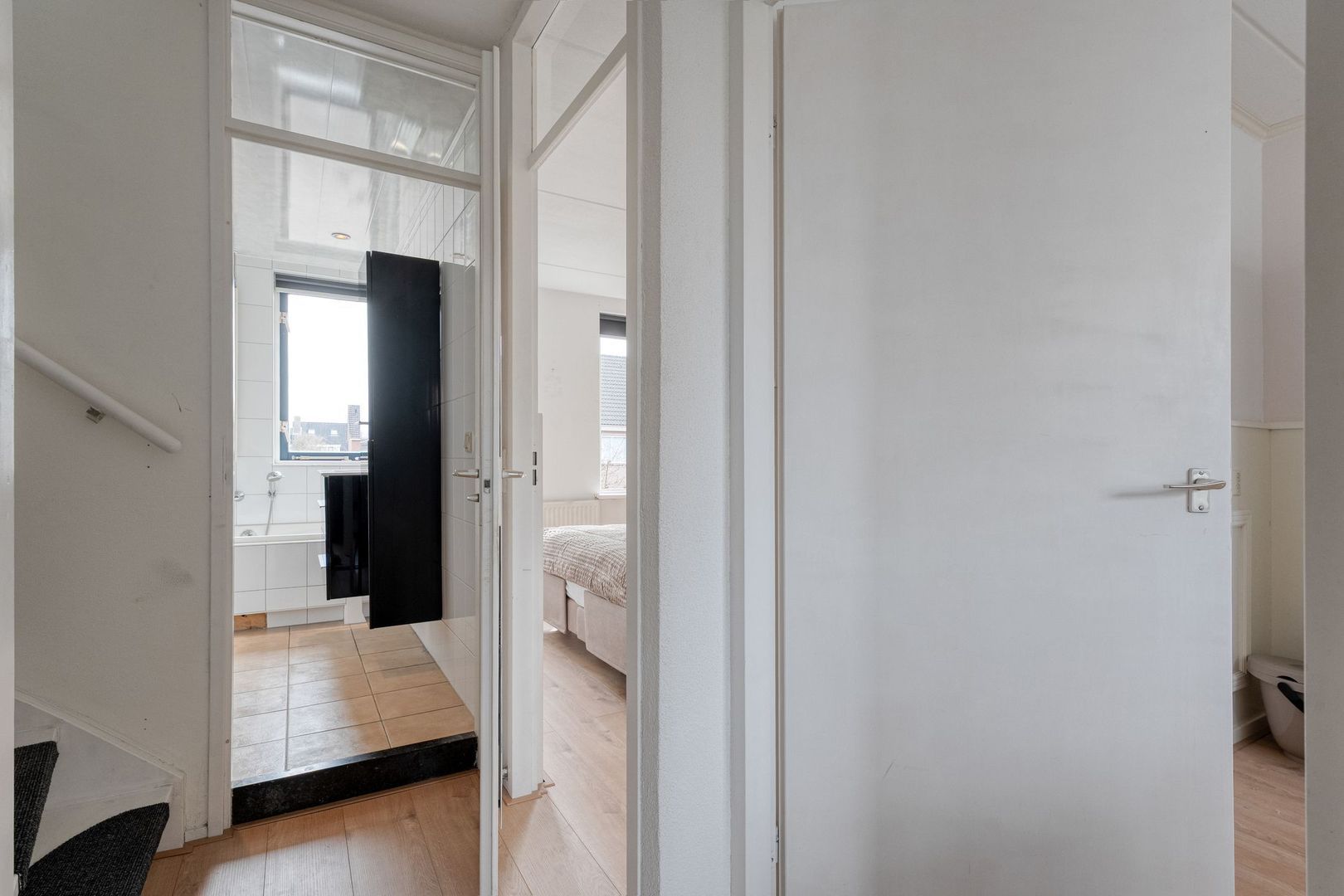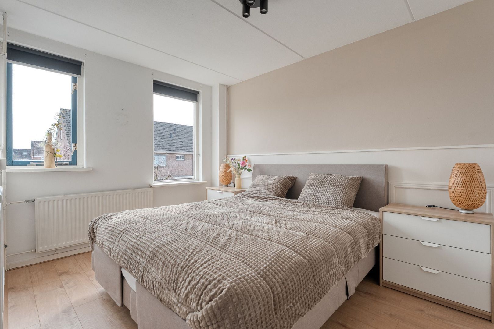 De derde slaapkamer is de ruime masterbedroom. Deze kamer kenmerkt zich door de royale opzet, de fijne lichtinval en het comfortabele woongevoel. De aanwezigheid van een radiator en de praktische indeling maken dit een ideale hoofdslaapkamer.