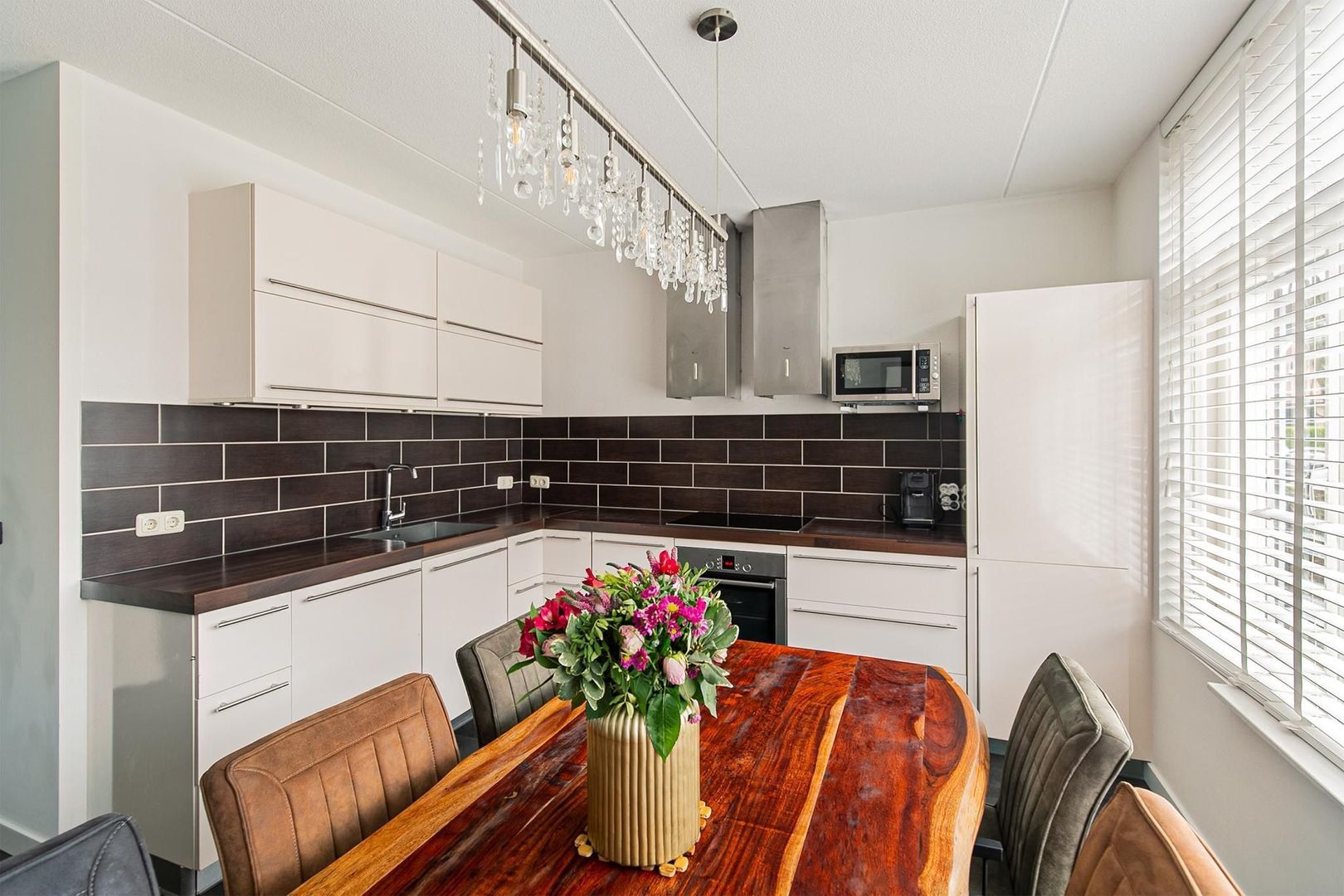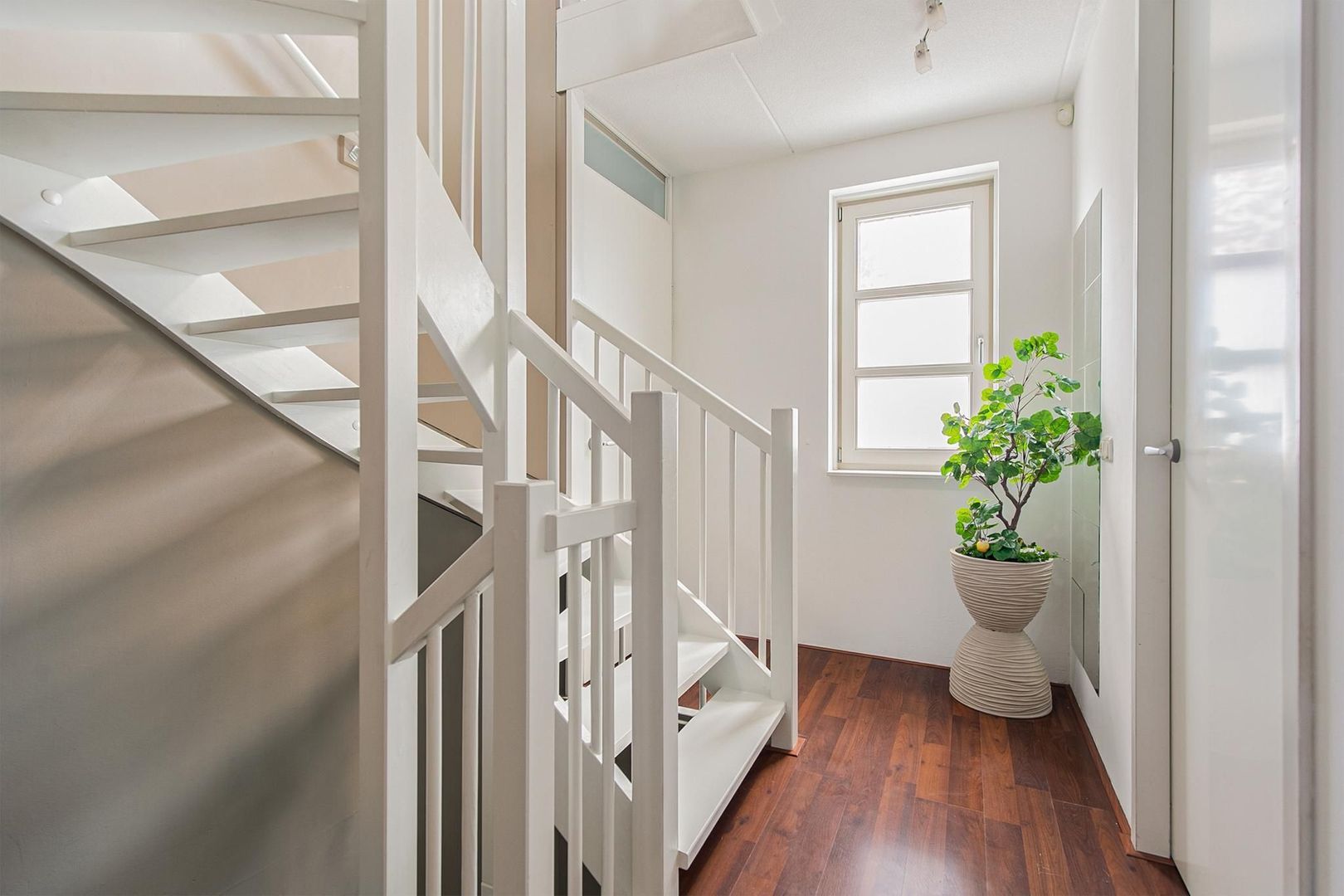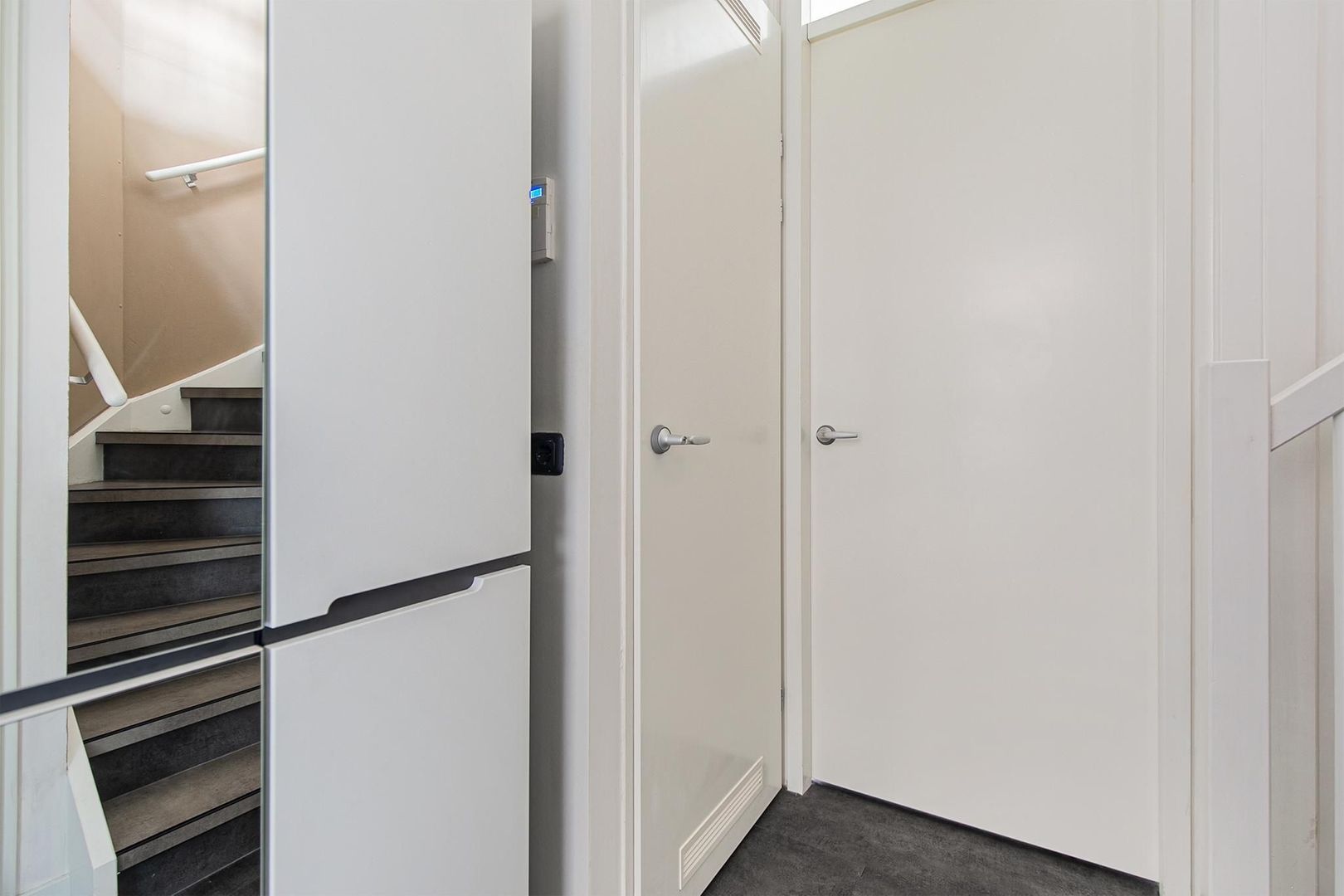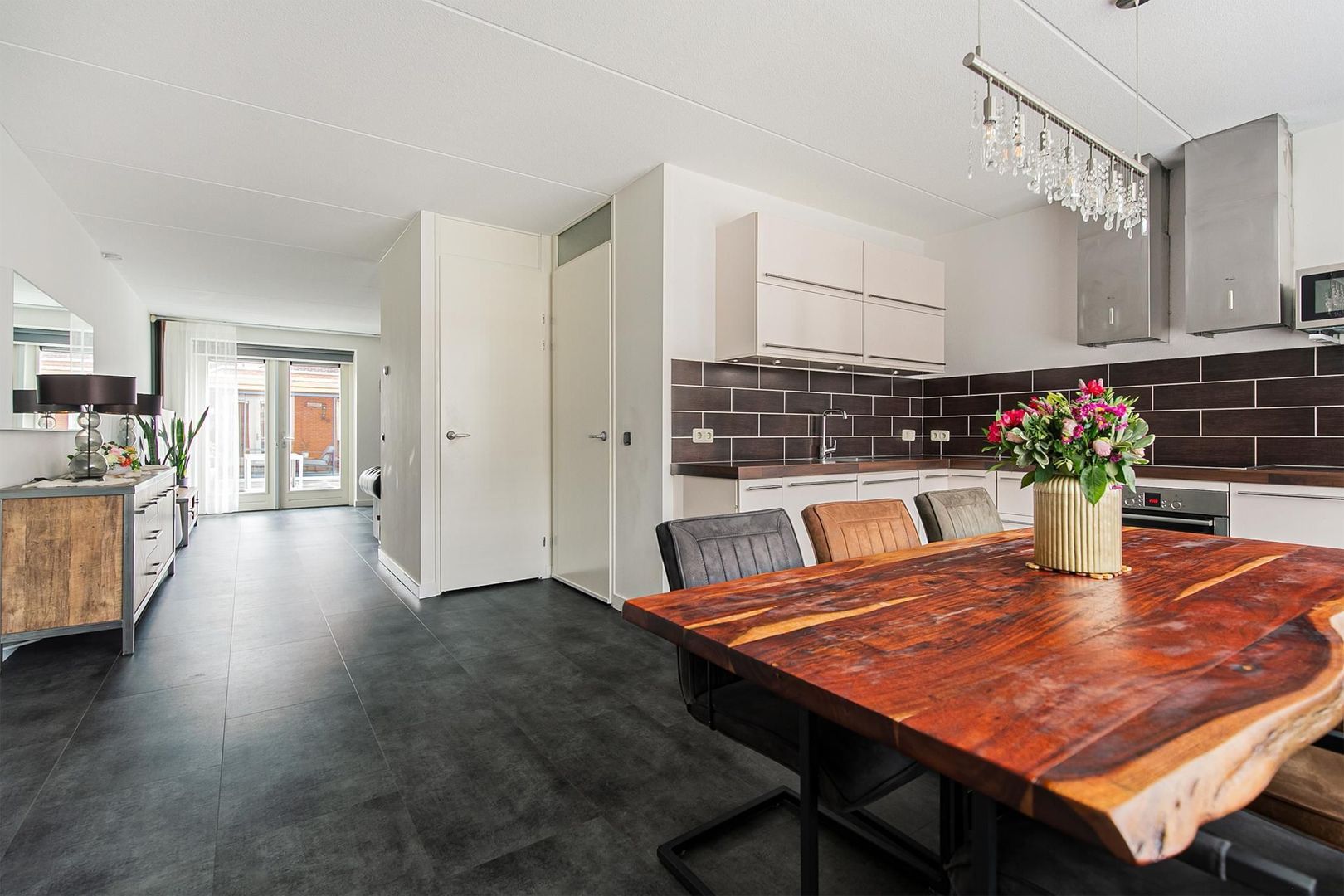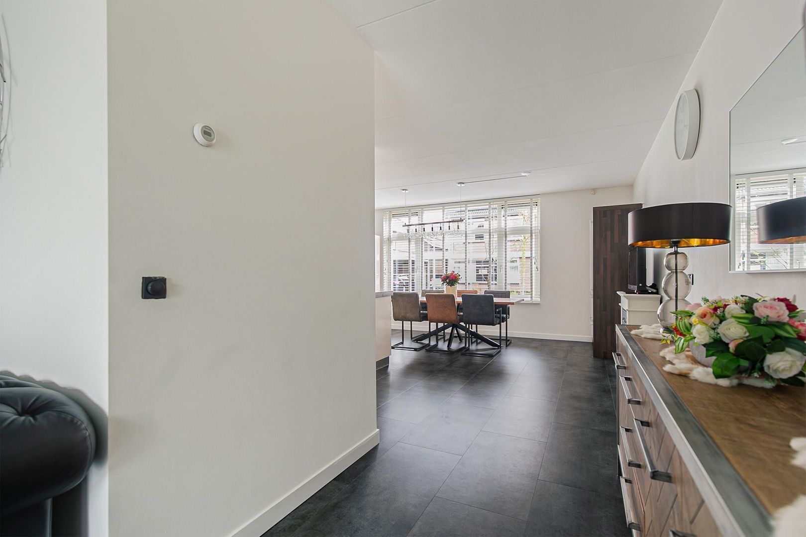hal/entree met trapopgang, garderobedeel, meterkast en moderne toiletruimte voorzien van wandcloset en fontein; straatgerichte woonkeuken met keukenblok voorzien van inbouwapparatuur, waaronder een recent vernieuwde vaatwasser en inductiekookplaat; tuingerichte woonkamer met trapkast en openslaande deuren naar terras;