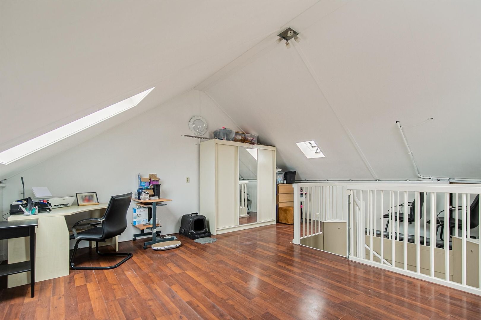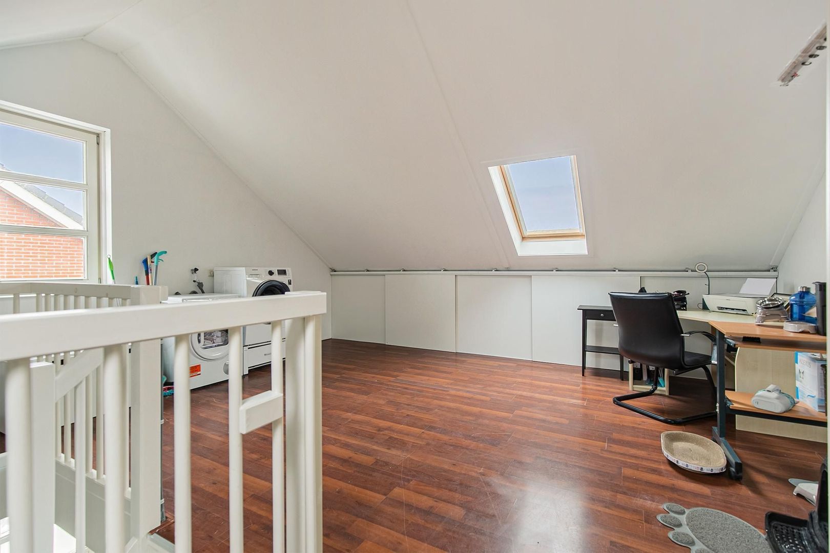 open tweede verdiepingsruimte met c.v.-installatie (Remeha, 2008), m.v.-box-opstelling, wasmachine- en drogeropstelling, bergruimte achter schuifwanden, uitzetdakraam en Velux-dakraam, zonneboilerinstallatie en omvormer voor de zonnepanelen, ruimte voor meerdere (slaap-)kamers.