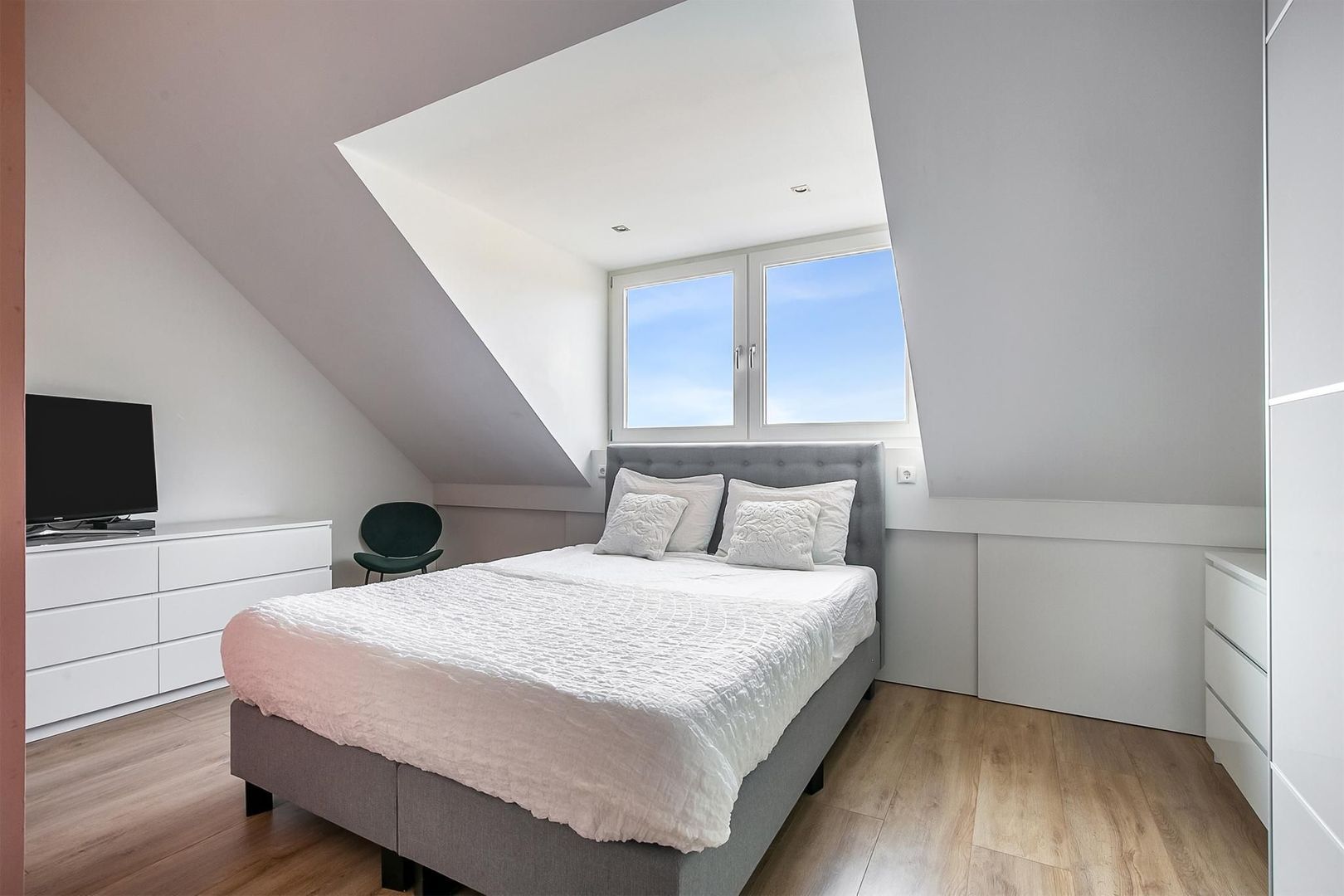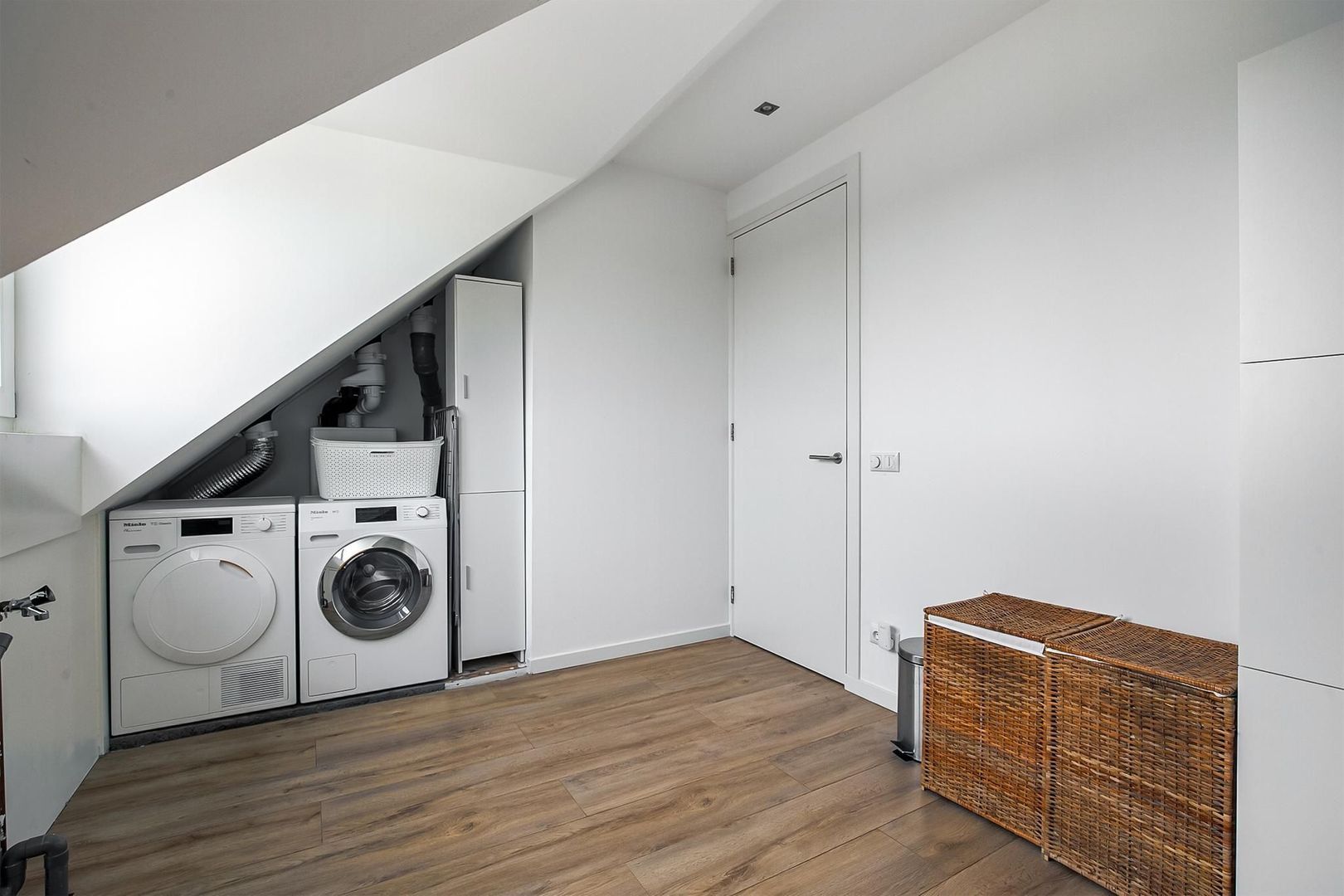 overloop met bovengelegen bergzolderruimte; royale vierde slaapkamer met dakkapel, wasmachine- en drogeropstelling, mechanische ventilatiebox-opstelling en c.v.-installatie (Intergas, 2018); royale vijfde slaapkamer met bergruimte achter schot en dakkapel.