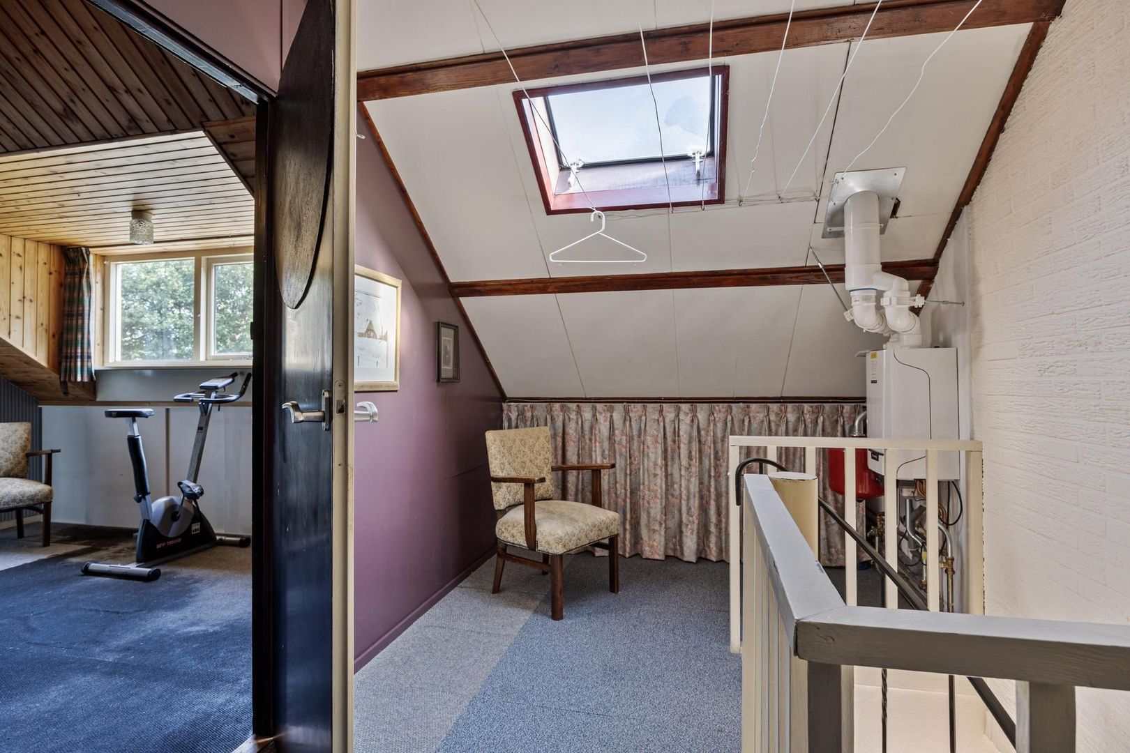 overloop met bergruimte, c.v.-installatie (Remeha, 2023) en opstelplaats voor de wasmachine; grote slaapkamer met dakkapel en inloopbergruimte.