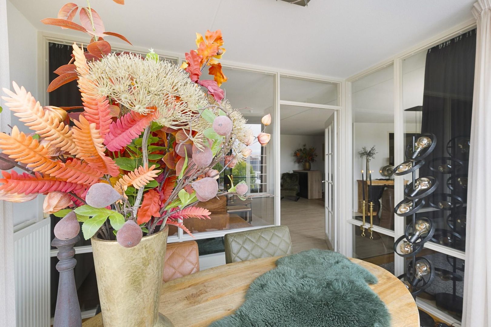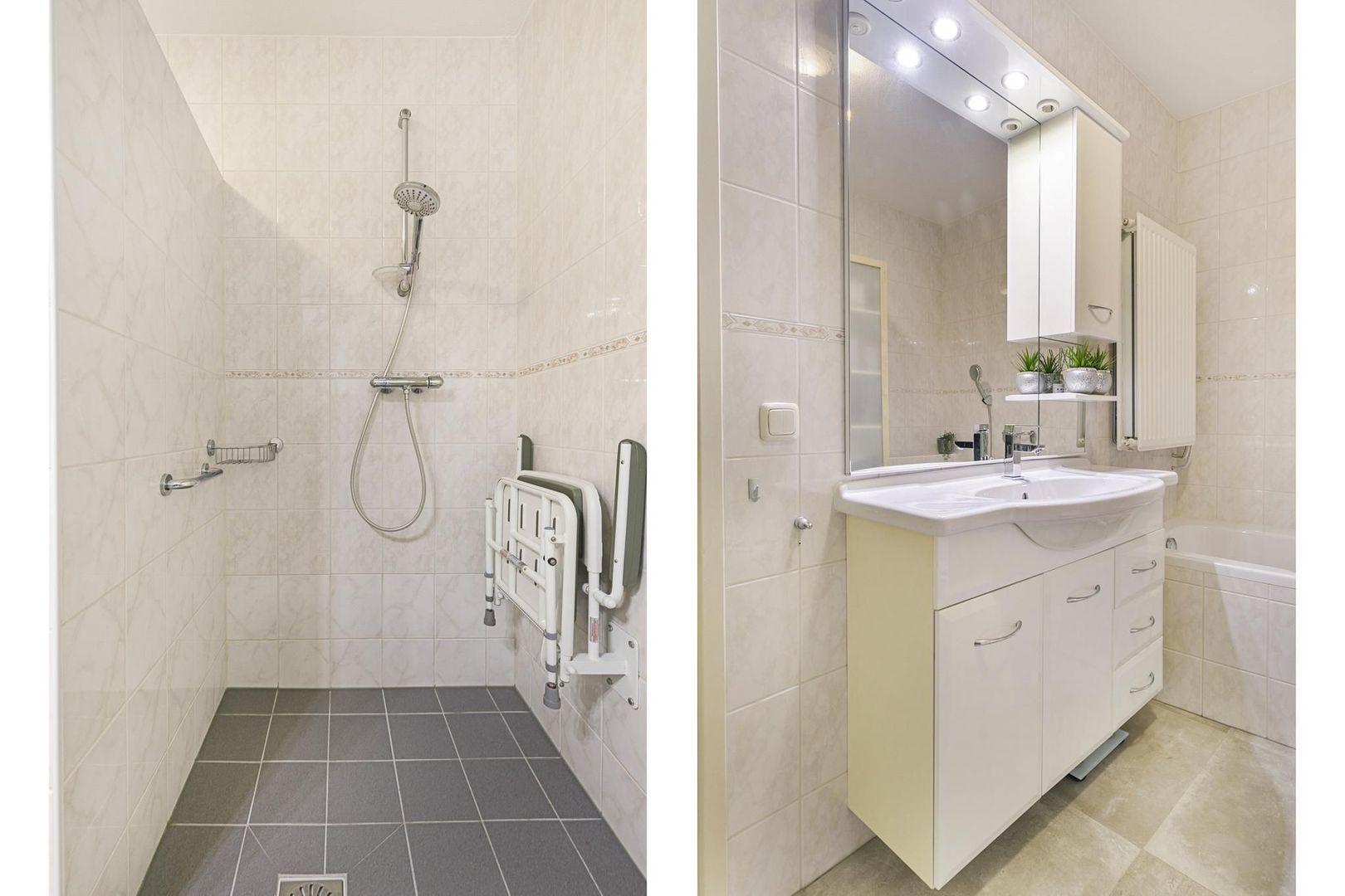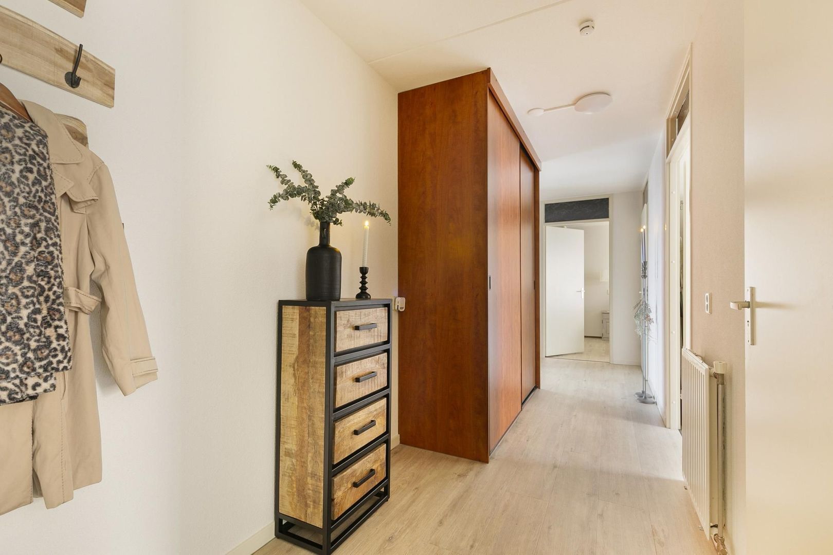 hal/entree met meterkast en garderobegedeelte; toiletruimte met wandcloset en fontein; (werk-)kamer met c.v. (Remeha, 2018), m.v.-box (Duco, 2022) en wasmachineaansluiting; twee slaapkamers; badkamer met wandcloset, wastafel met meubel, inloopdouche en ligbad; woonkamer met elektrisch bedienbaar uitvalscherm; halfopen keuken met keukenblok (2022) voorzien van inbouwapparatuur; loggia/tuinkamer met elektrisch bedienbare screens en openslaande ramen.