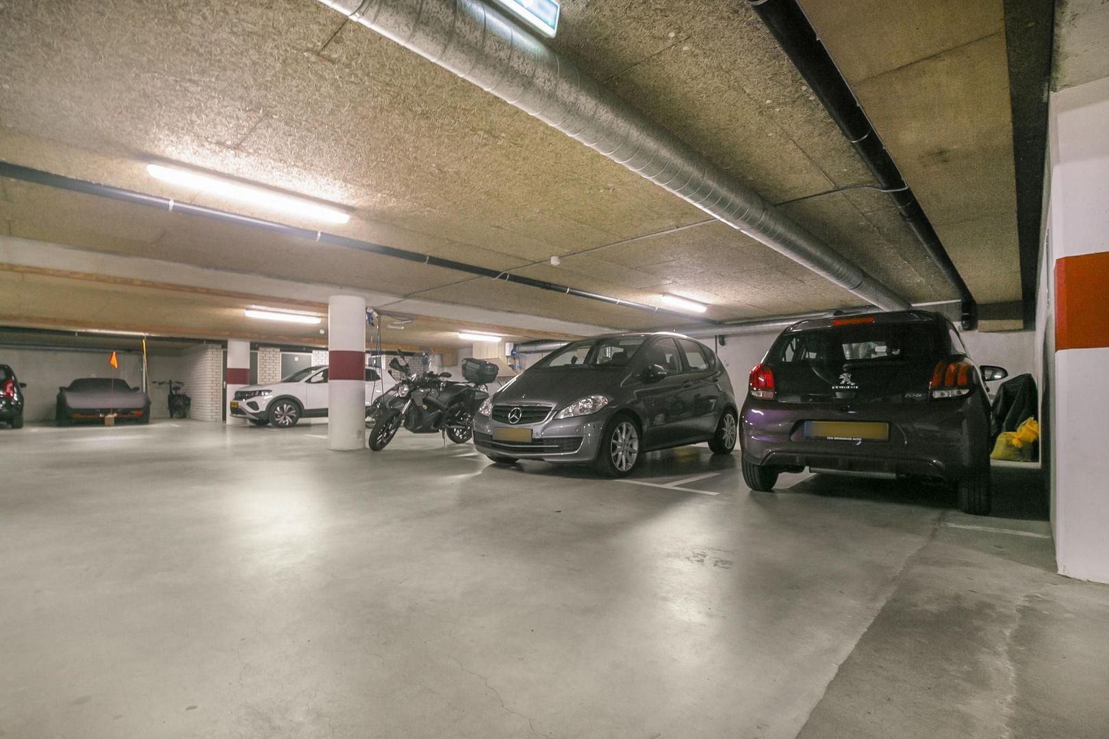met afstandbedienbare garagedeur bereikbare parkeergarage voorzien van parkeerplek en eigen berging;