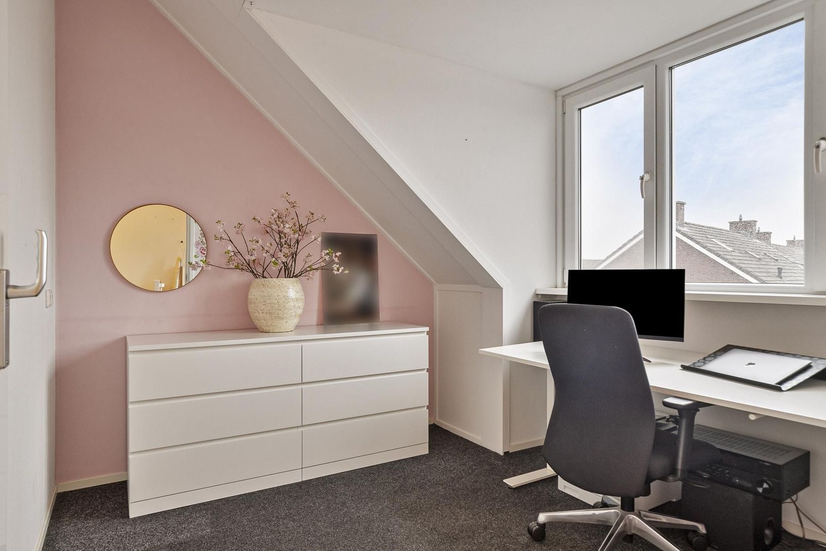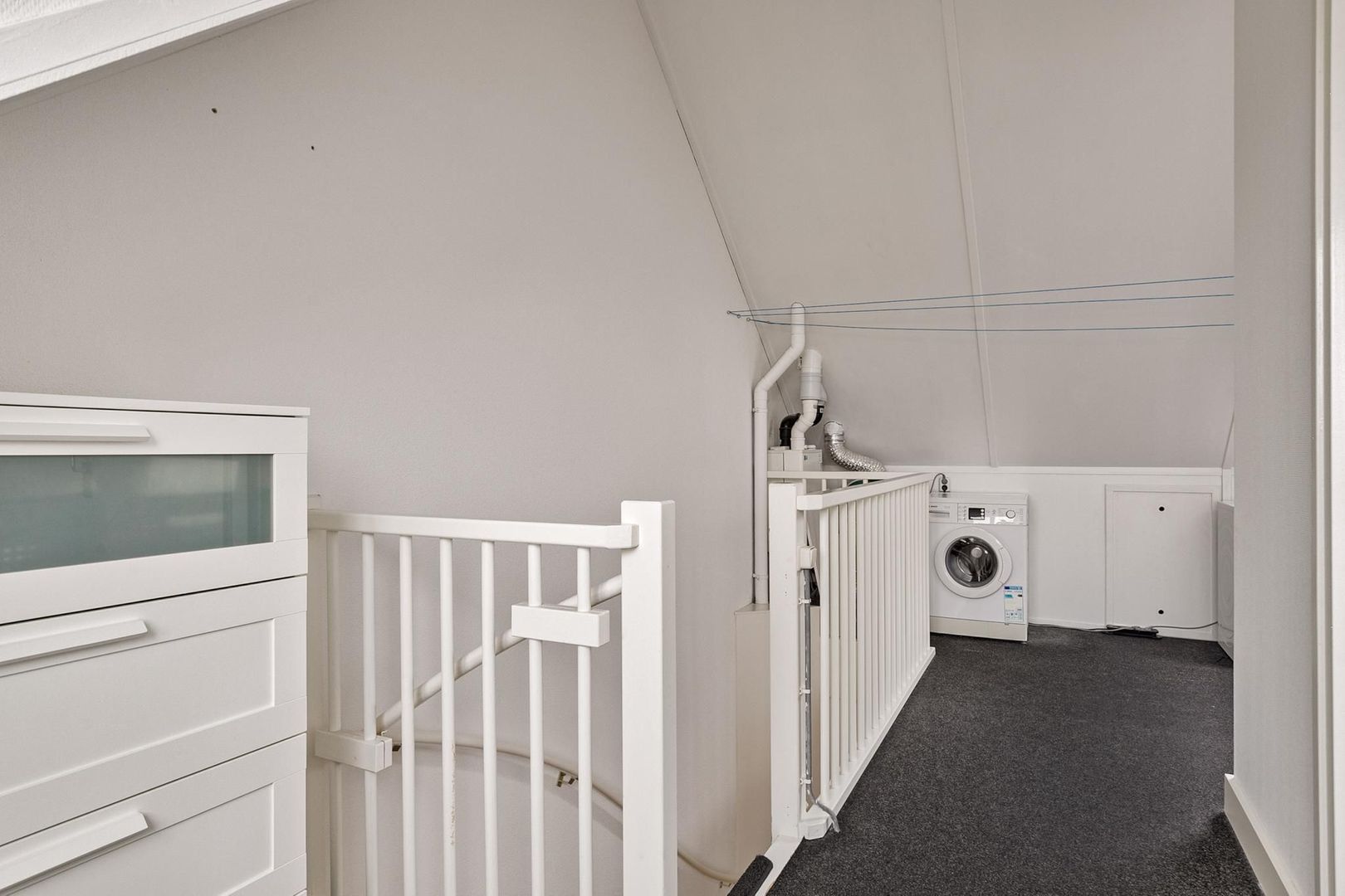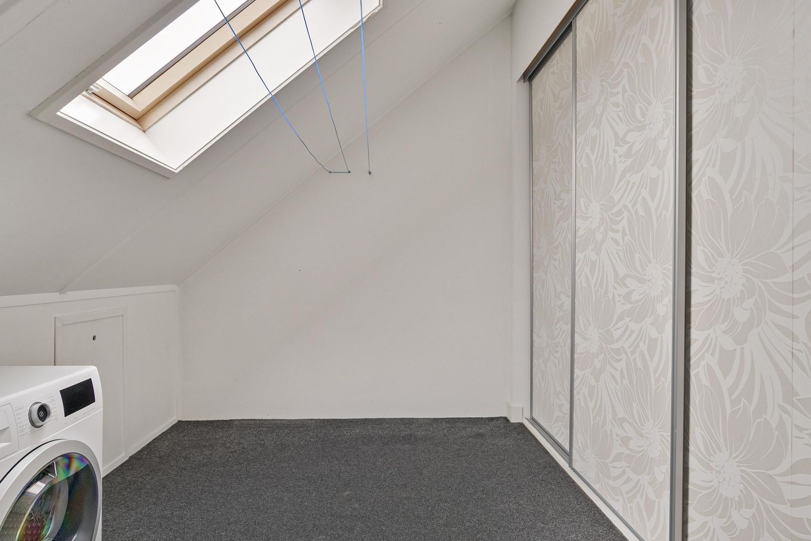 overloop/kamer met grote schuifkastenwand, bergruimte achter schot, dakraam, dakkapel met elektrisch rolluik, m.v.-box, c.v.-installatie (Intergas, 2010) en wasmachine- en drogeropstelling; ruime (slaap-)kamer met dakkapel, draai/kiepramen, inzethorren en elektrisch bedienbaar rolluik.