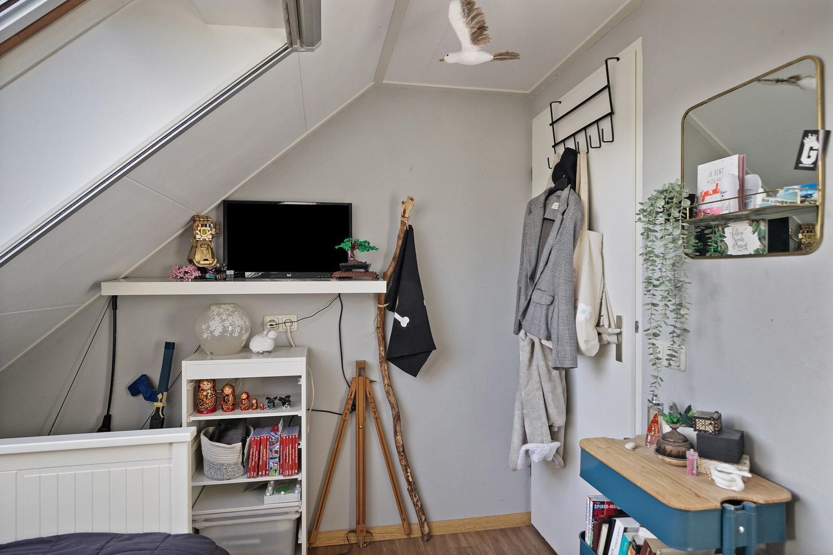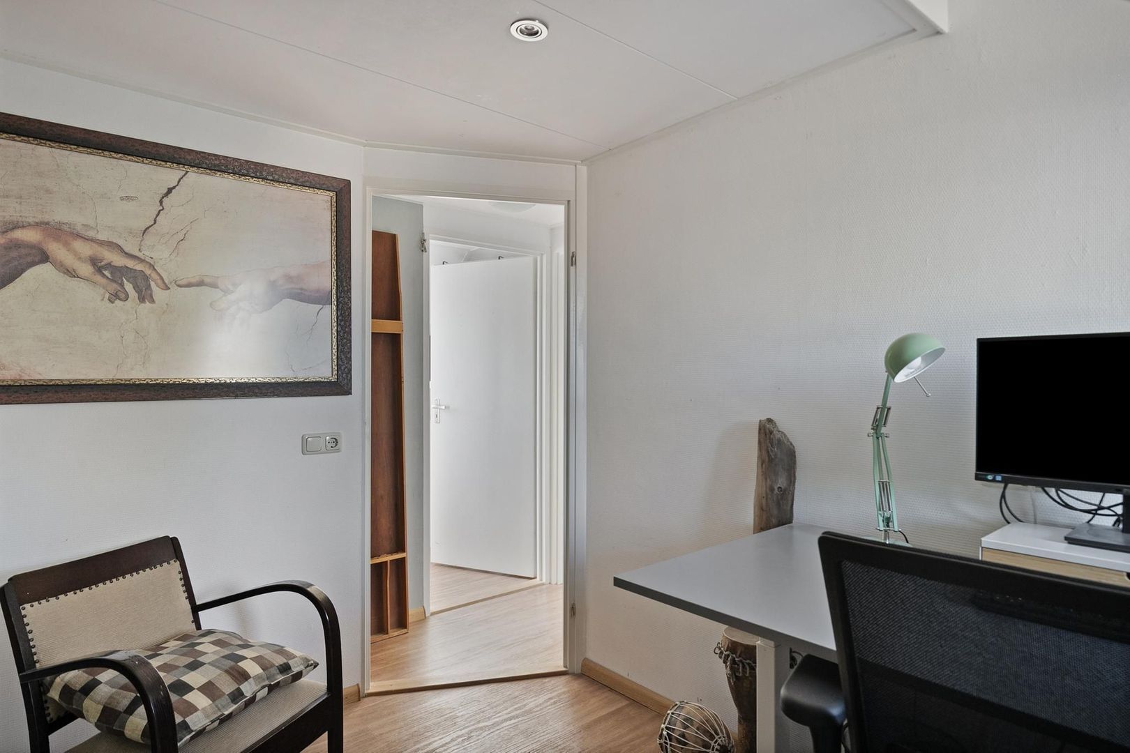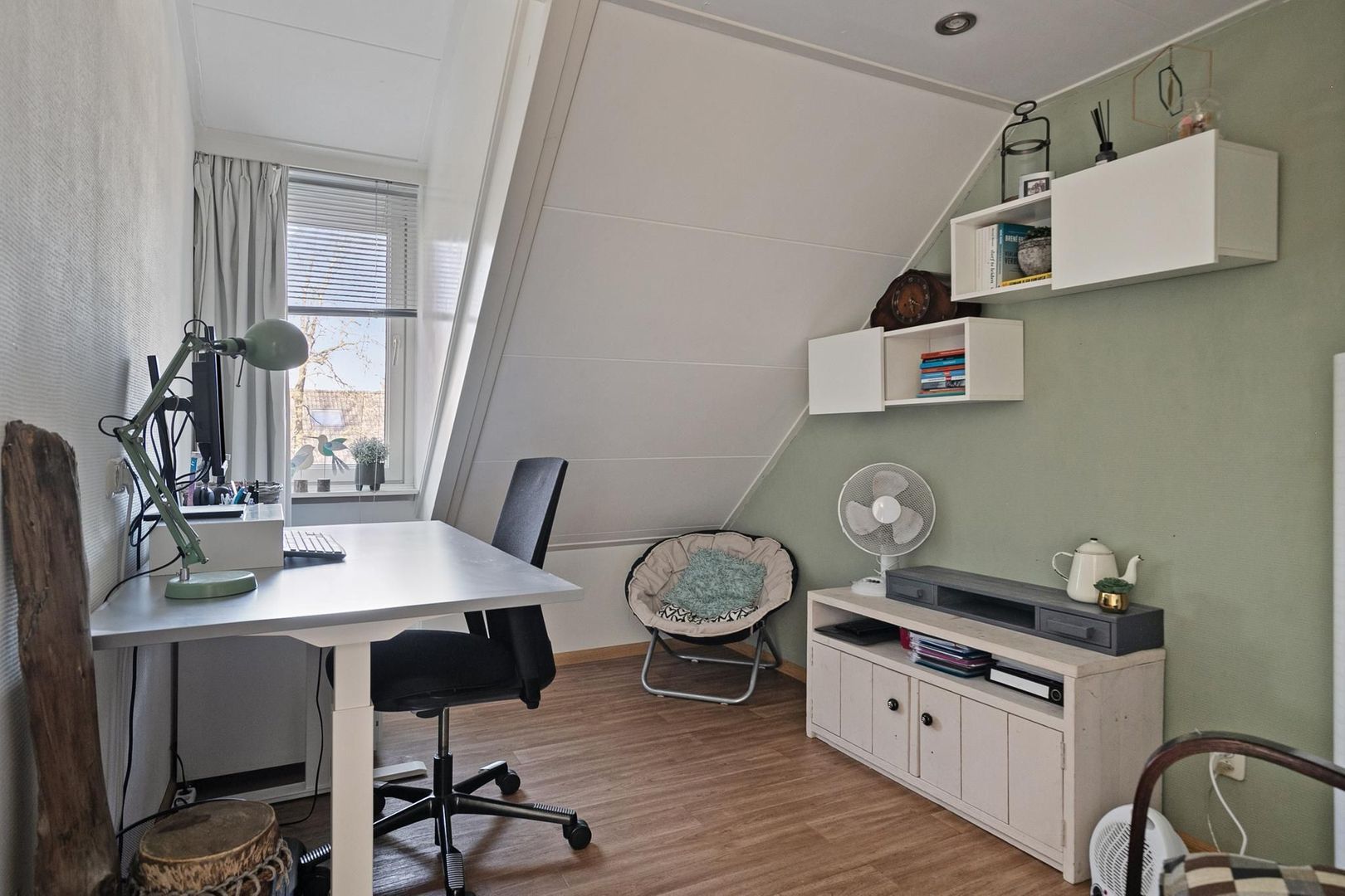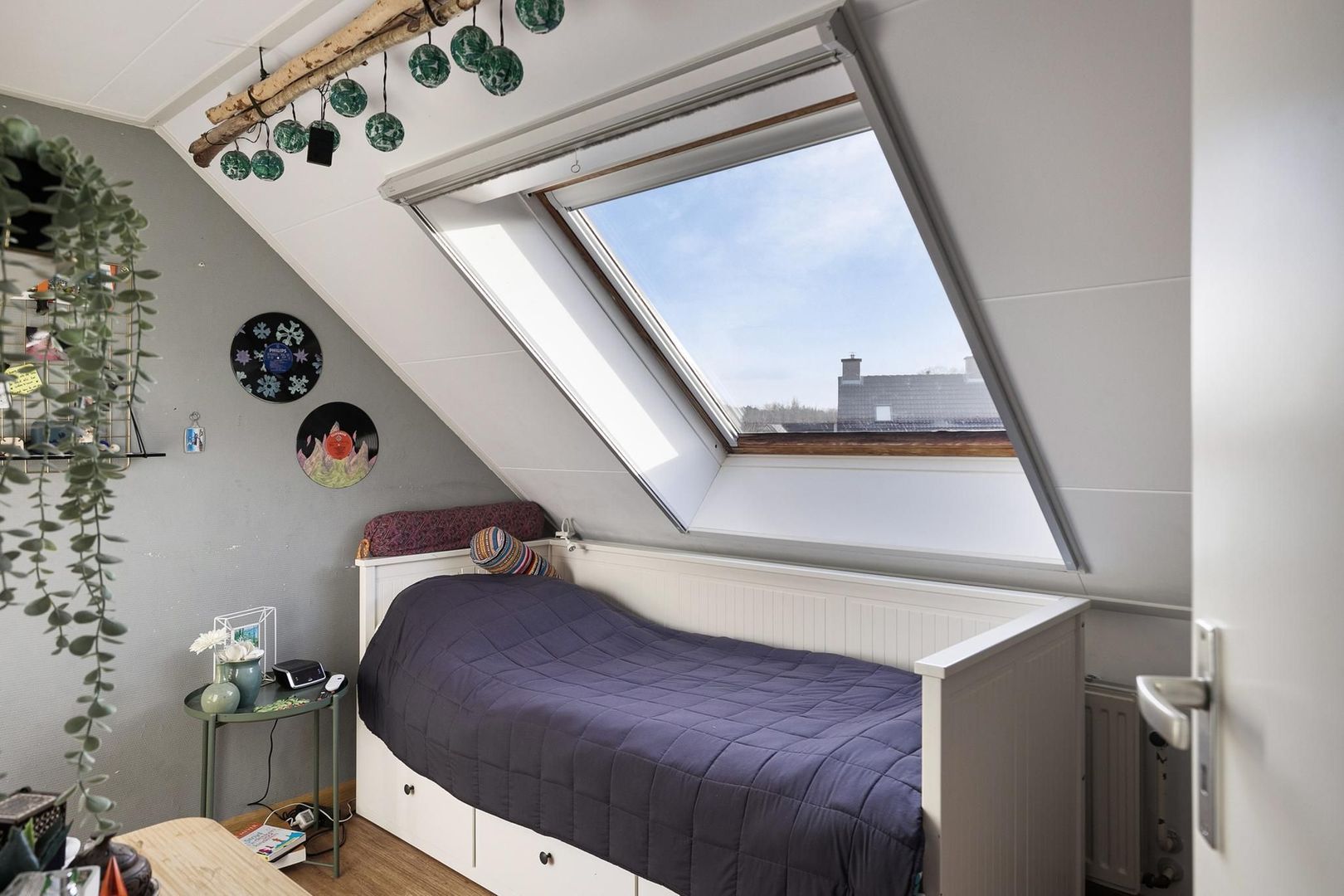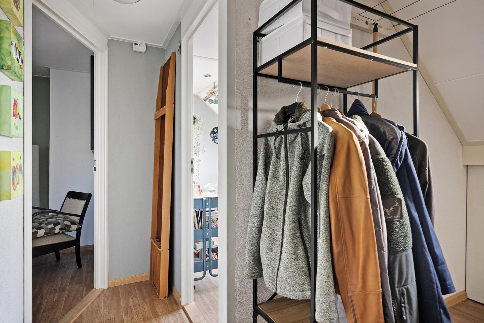 overloop met bergruimte, c.v.-installatie (Nefit, 2017), dakraam, luik naar vlizotrap derde verdieping, wasmachine- opstelmogelijkheid en airco-installatie (2023);