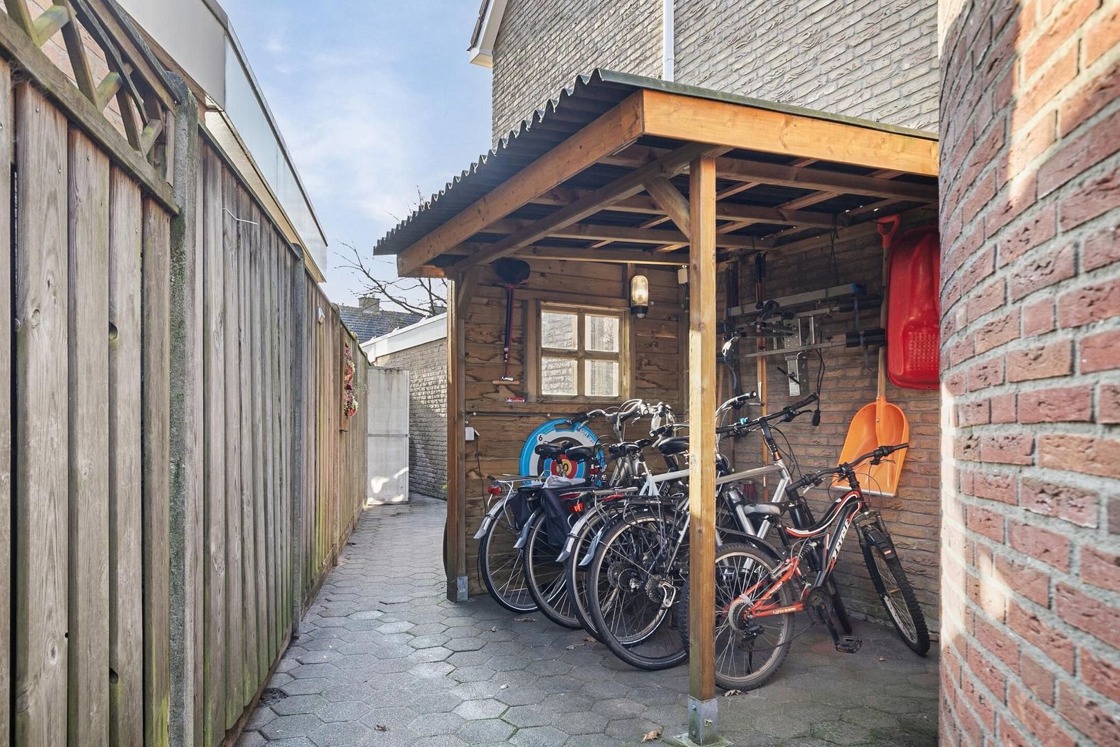 Overdekte fietsenstalling en overkapping.