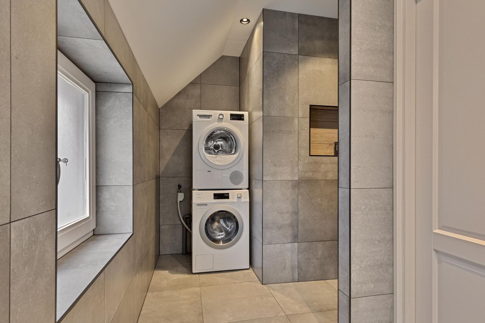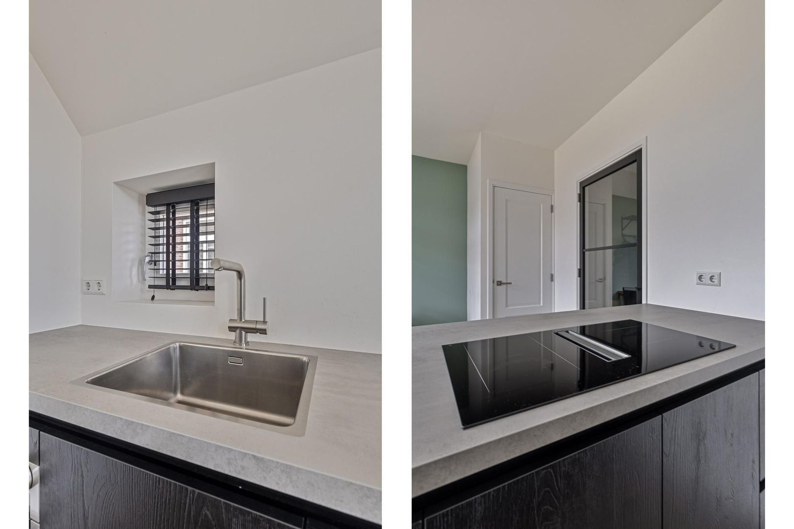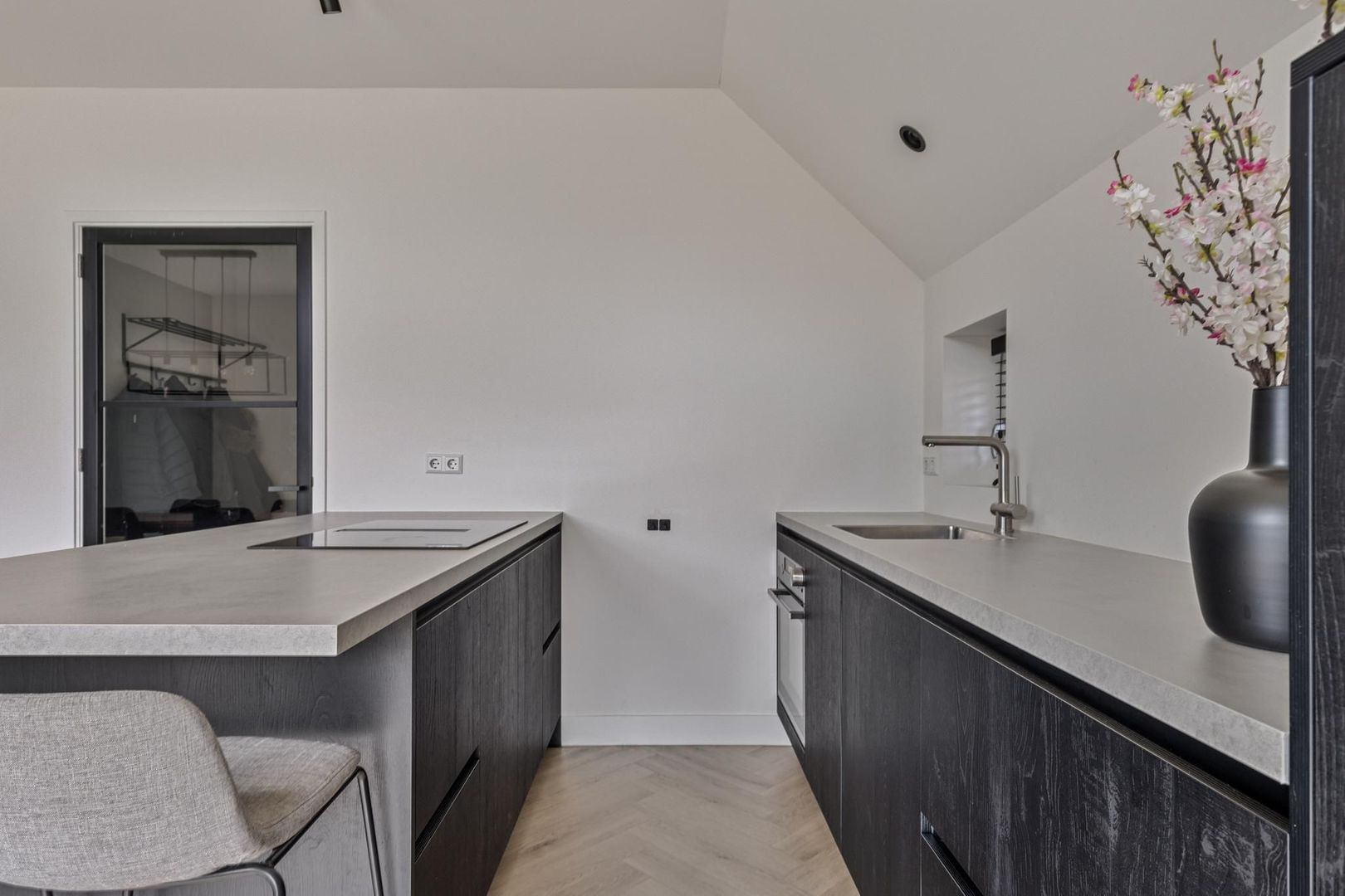 achterentree met openslaande deuren, woonkeuken met trapkast, kookeiland met kookveldafzuiging en keukenblok voorzien van inbouwapparatuur (2023); tussenhal met garderobe en toiletruimte (2023); woonkamer met deur naar trapopgang; badkamer met inloopdouche, vloerverwarming, dubbele wastafel met meubel en wasmachine- en drogeropstelling;
