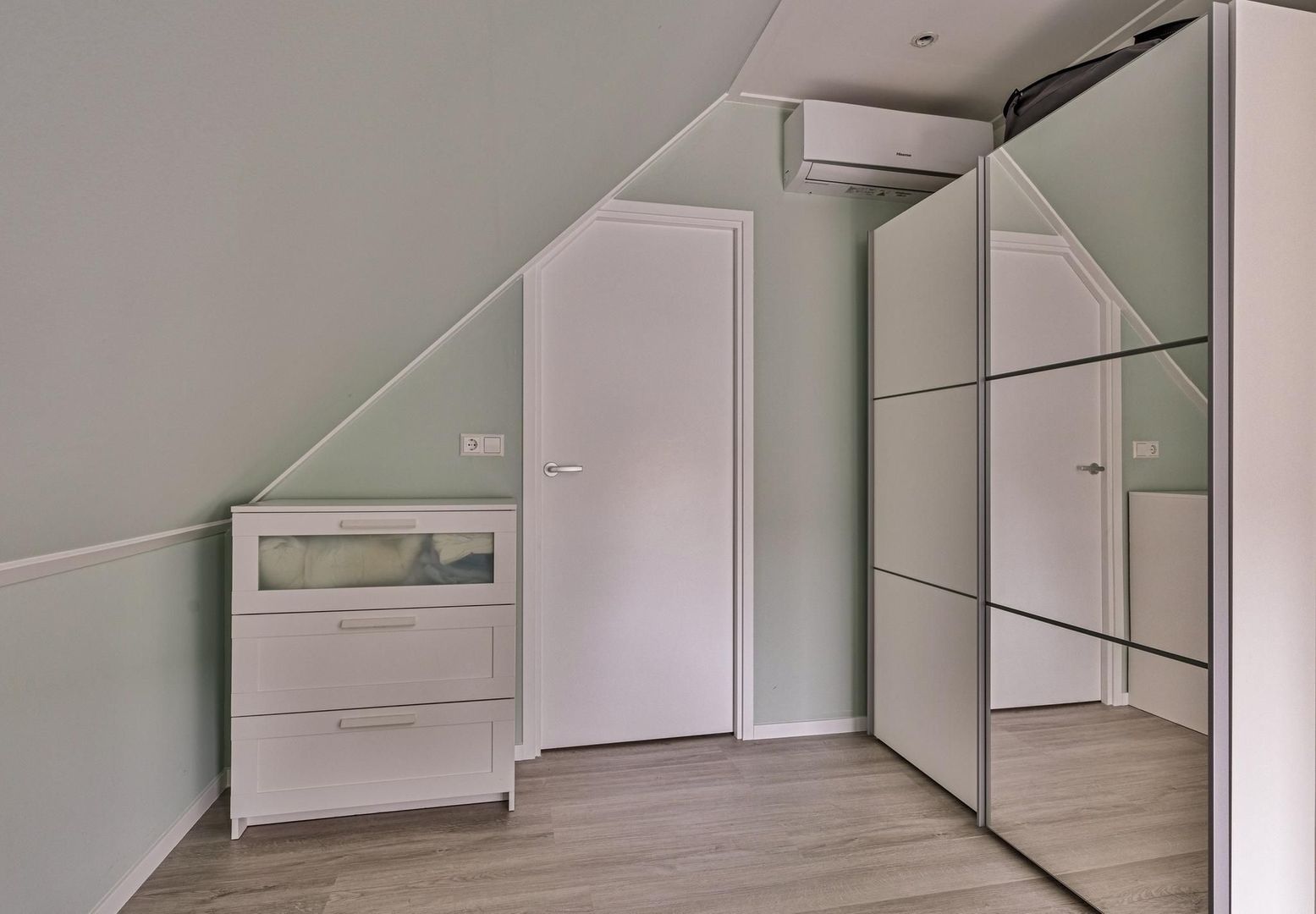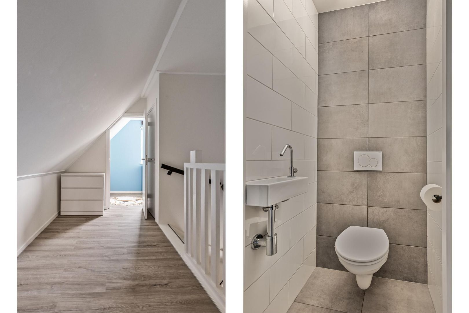 overloop met c.v.-kastruimte (Intergas, 2017) en mechanische ventilatiebox-opstelling; toiletruimte voorzien van wandcloset en fontein (2023); slaapkamer 1 met draai-/kiepraam en slaapkamer 2 met draai-/kiepraam en aircovoorziening (2023).