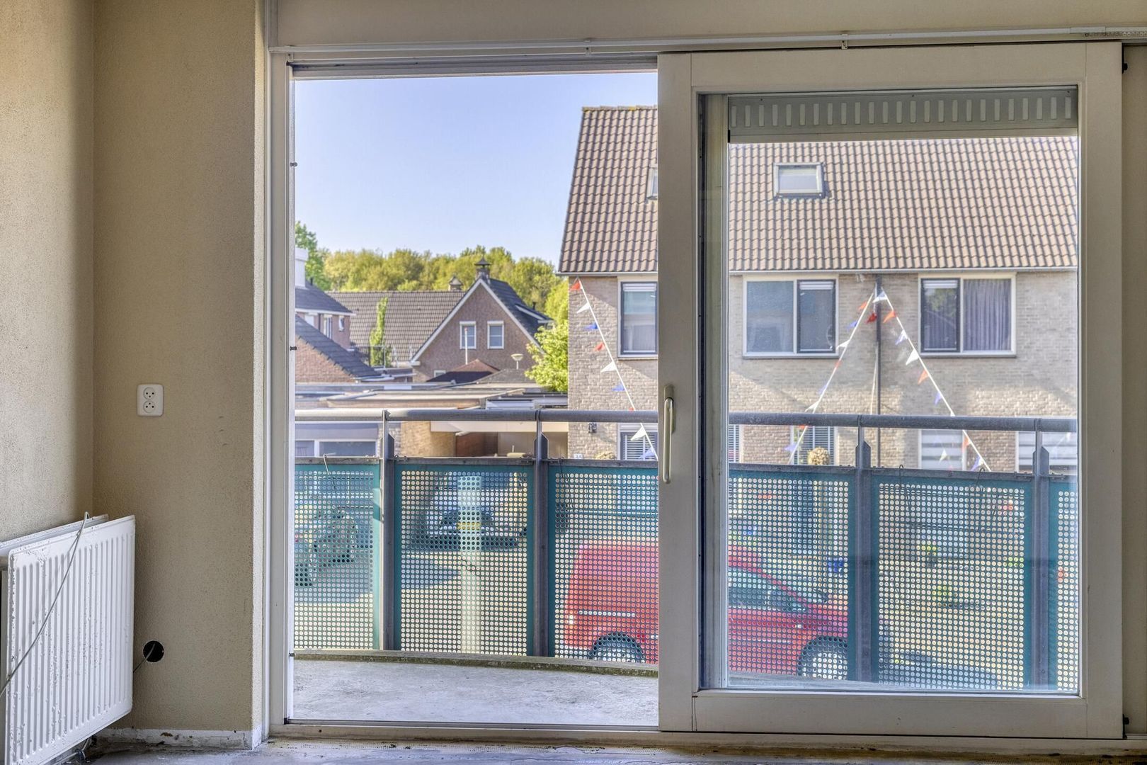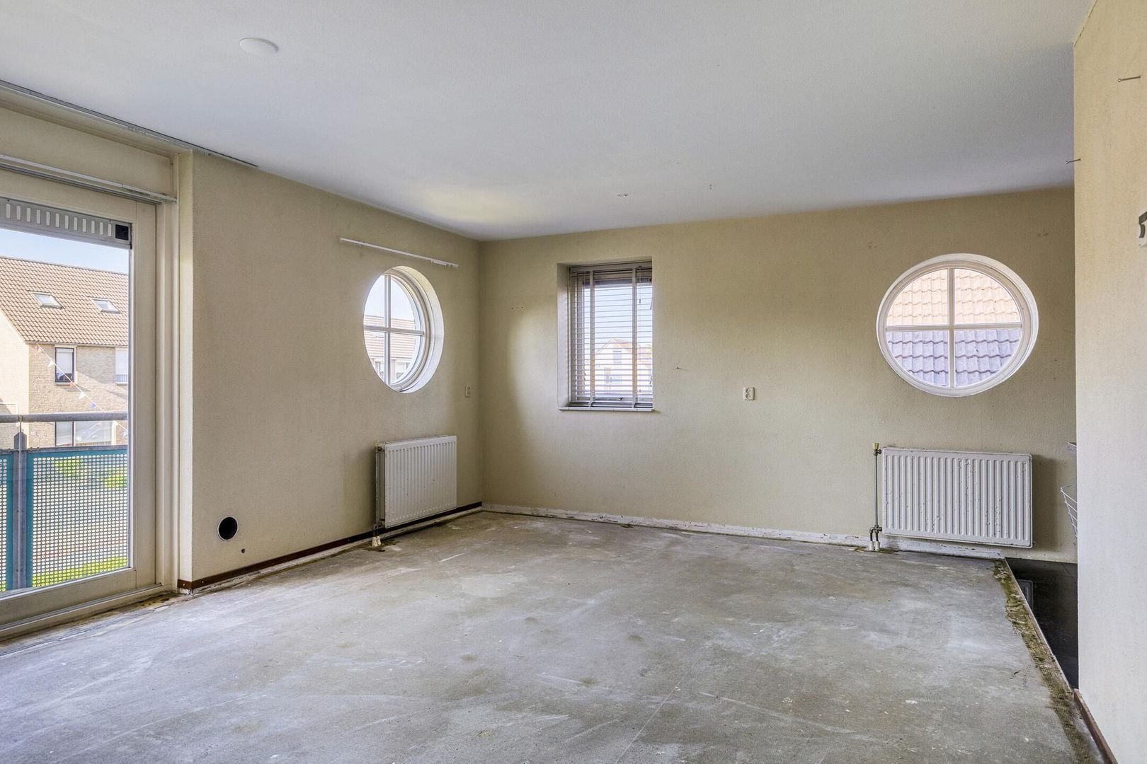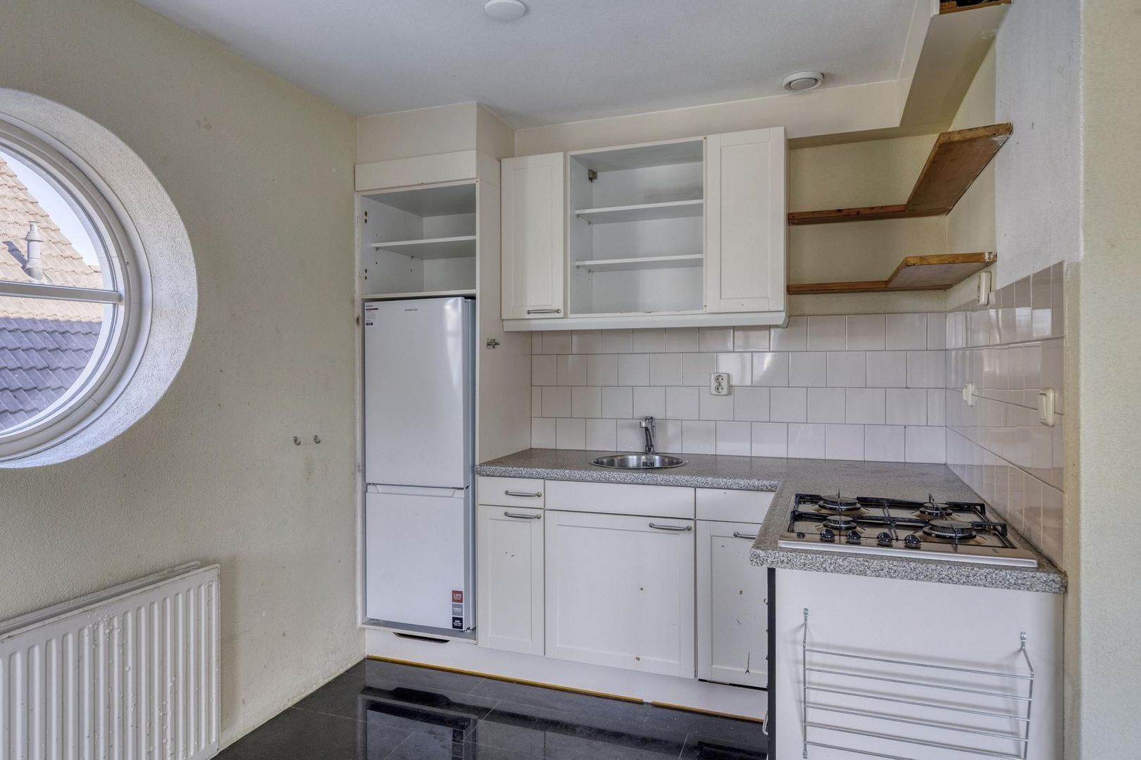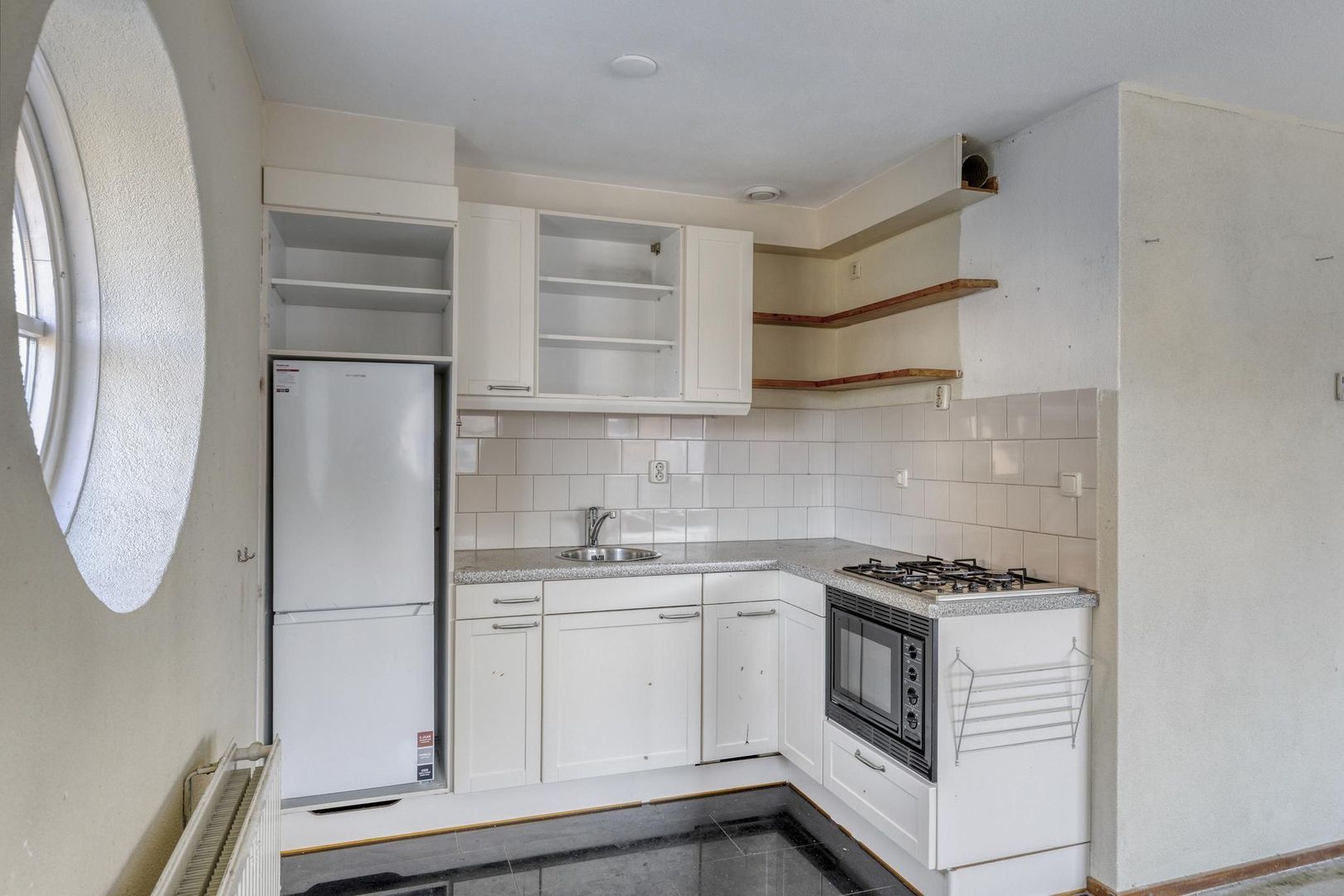 Rechtdoor loopt de hal door naar de lichte woonkamer, waar voldoende ruimte is voor een zit- en eethoek. De woonkamer staat in open verbinding met de L-vormige keuken, die is voorzien van inbouwapparatuur, een 4-pits gasfornuis en voldoende werk- en kastruimte. Aan de woonkamer grenst het balkon, een fijne plek om buiten te zitten.