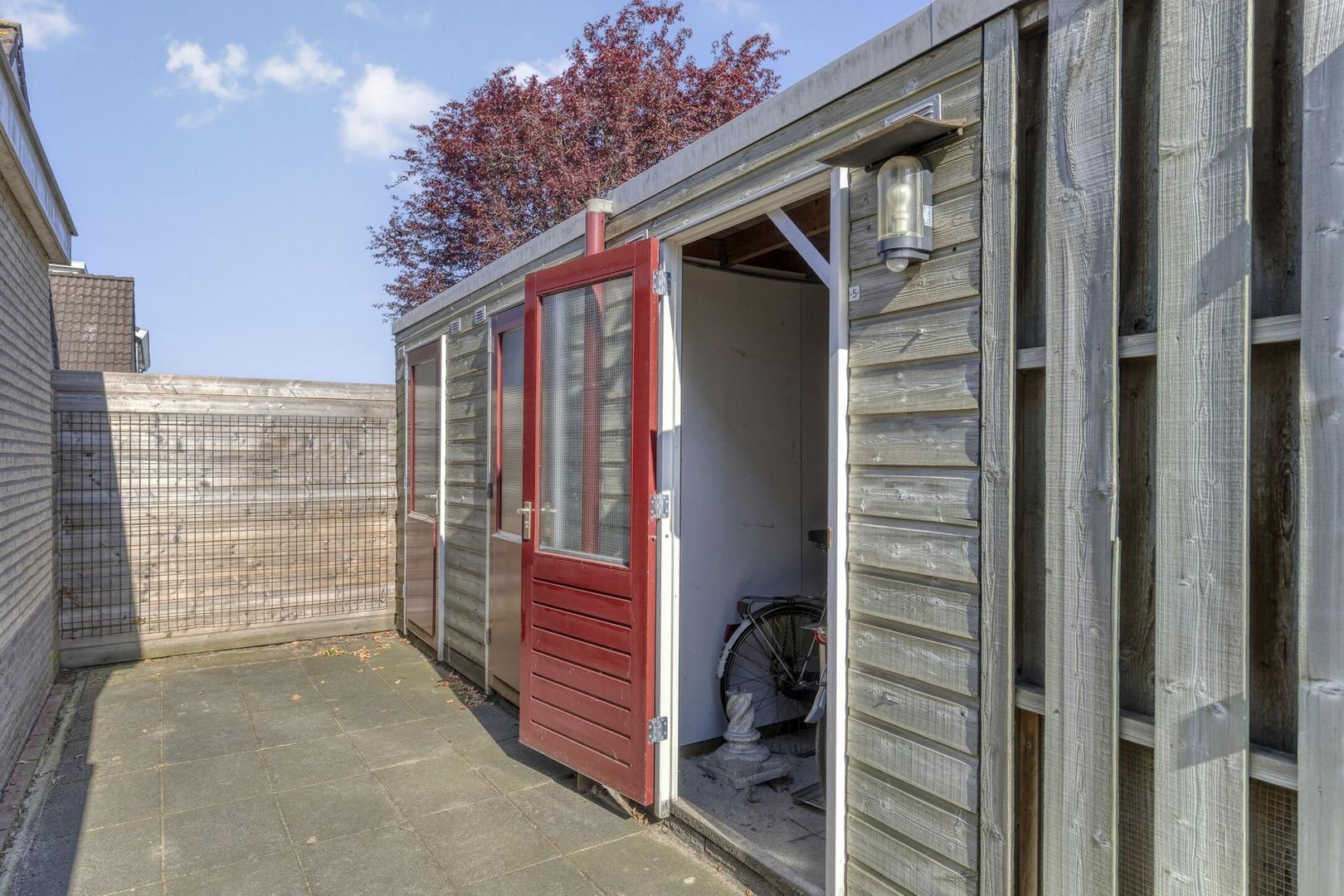 Aansluitend aan de woonkamer vind je een inpandige berging, waar ook de cv-installatie en de aansluitingen voor de wasmachine en droger zich bevinden. Deze ruimte is praktisch voor het opbergen van huishoudelijke spullen of als voorraadkast.