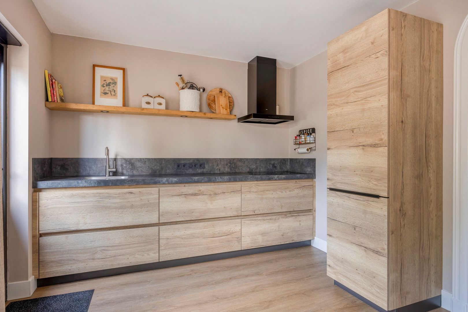 -Keuken: Ruime, volledig vernieuwde keuken (2023) met inbouwapparatuur, waaronder inductiekookplaat, afzuigkap en koel-/vriescombinatie.