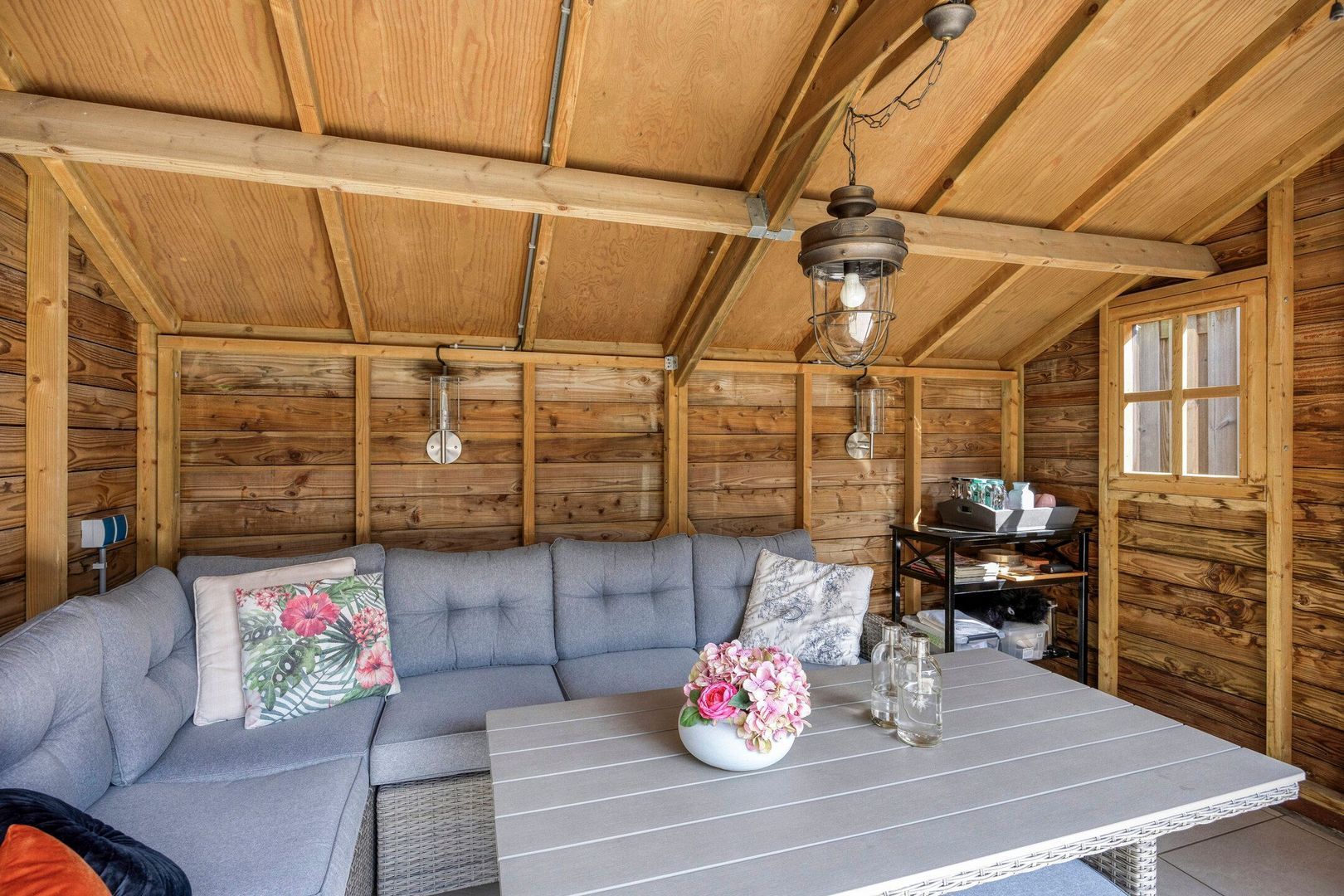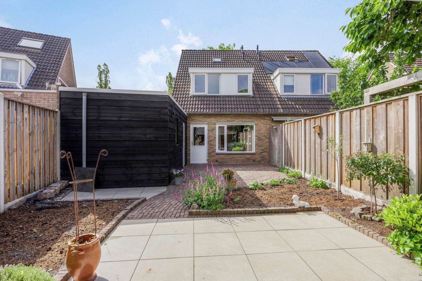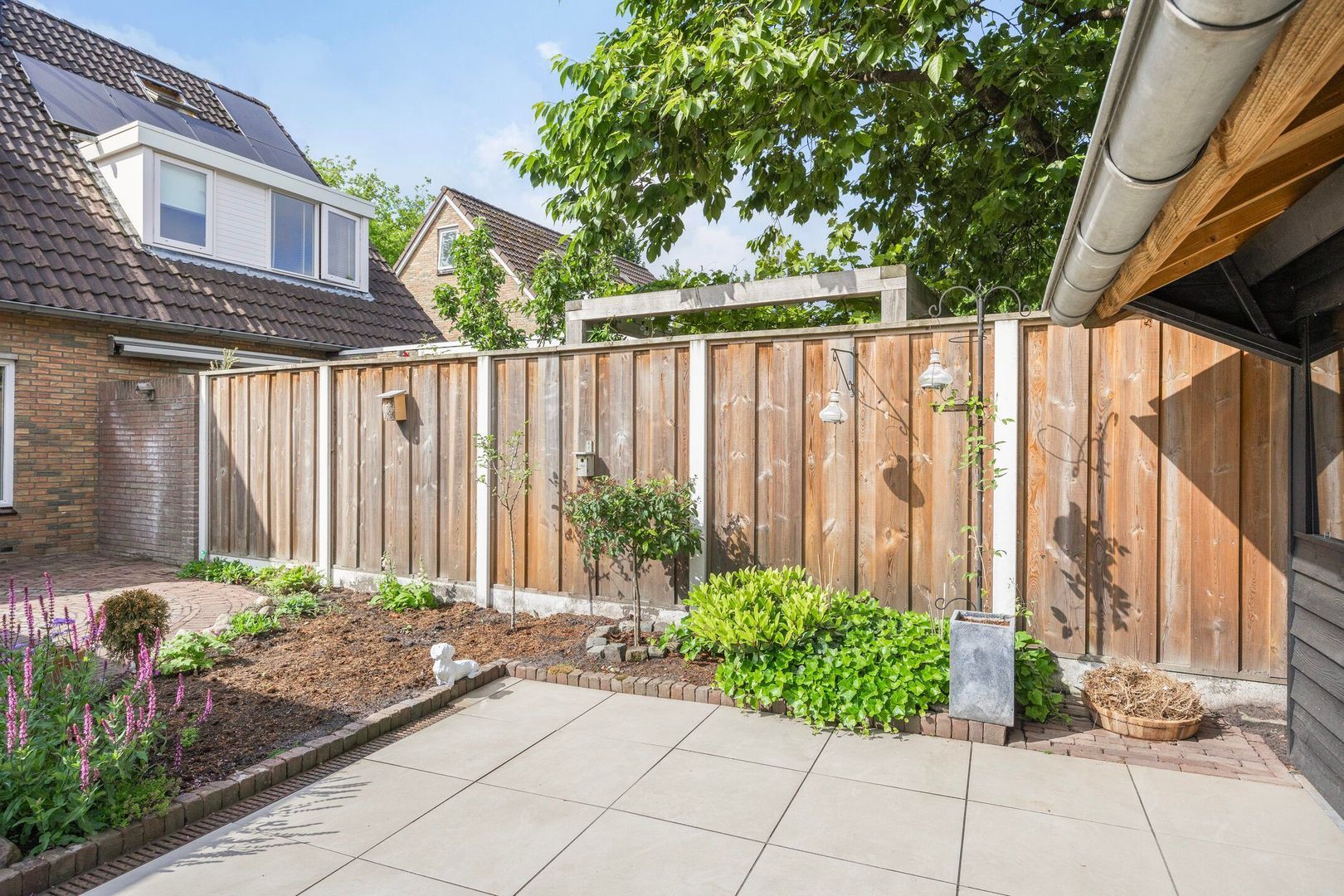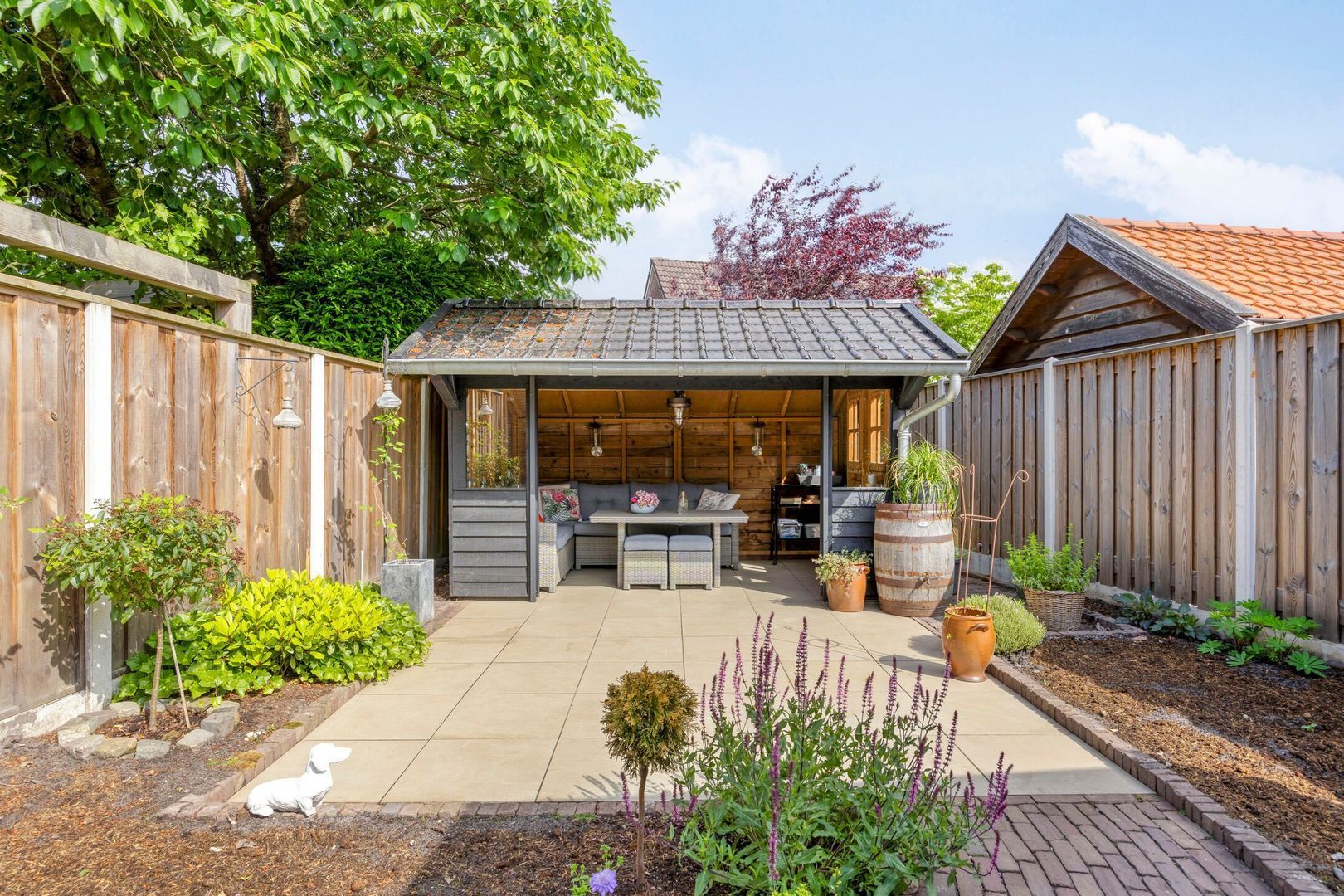 onderhoudsvriendelijk aangelegde achtertuin met veel privacy door vernieuwde schuttingen (2021) en groen. Ruim terras met gebakken klinkers en een overkapping (2007) achter in de tuin. Prettige zonligging en verzorgde uitstraling maken dit een fijne buitenruimte.