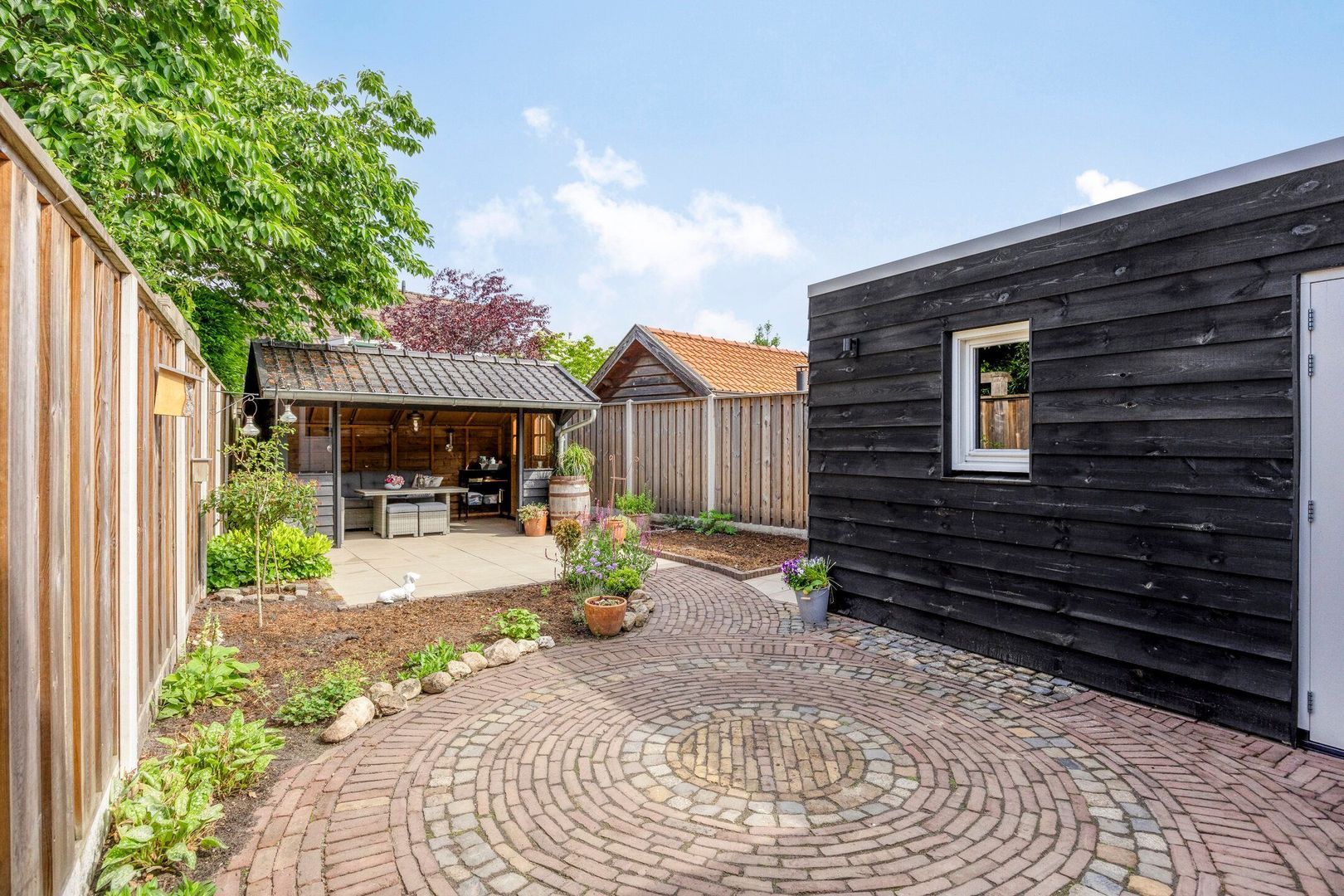 De grote achtertuin beschikt over veel privacy met gebakken sierbestrating en een royale overkapping (2007), ideaal voor de zomeravonden. Op eigen terrein parkeert u eenvoudig drie auto's op de brede oprit, met daarbij een royale garage (34m2) voorzien van lichtkoepel, elektra en een praktische wasbak.