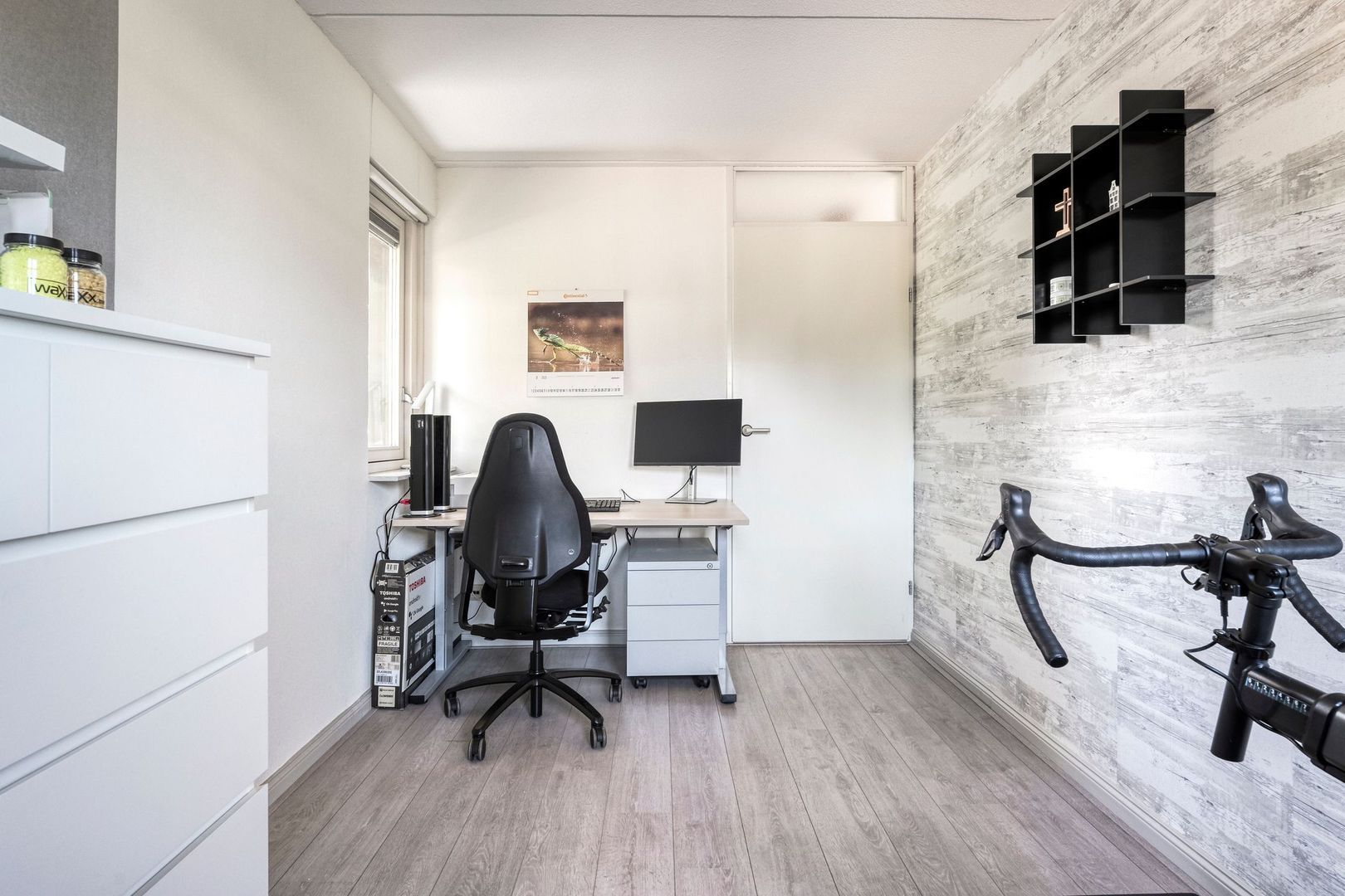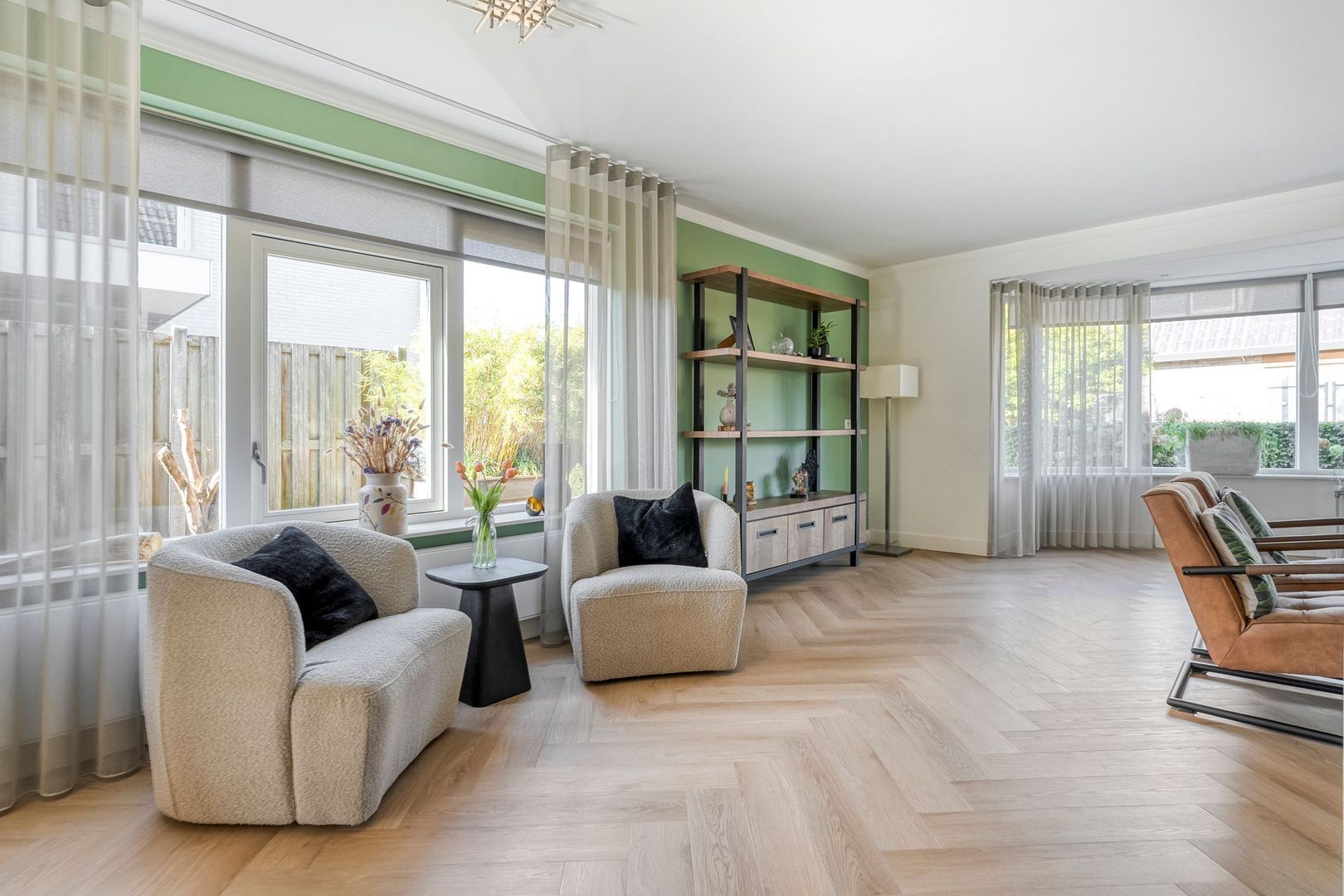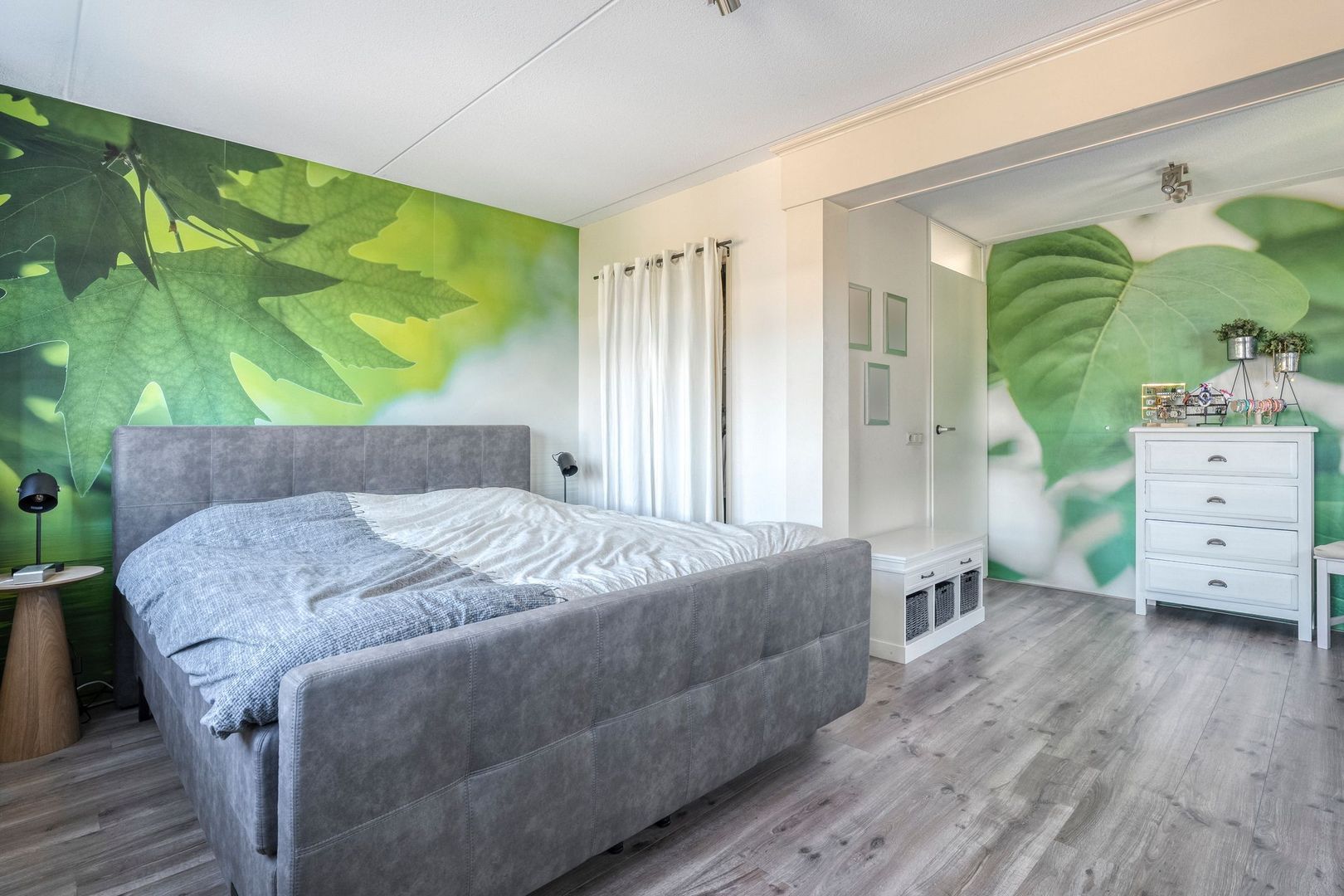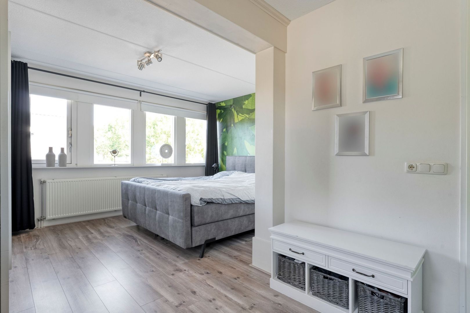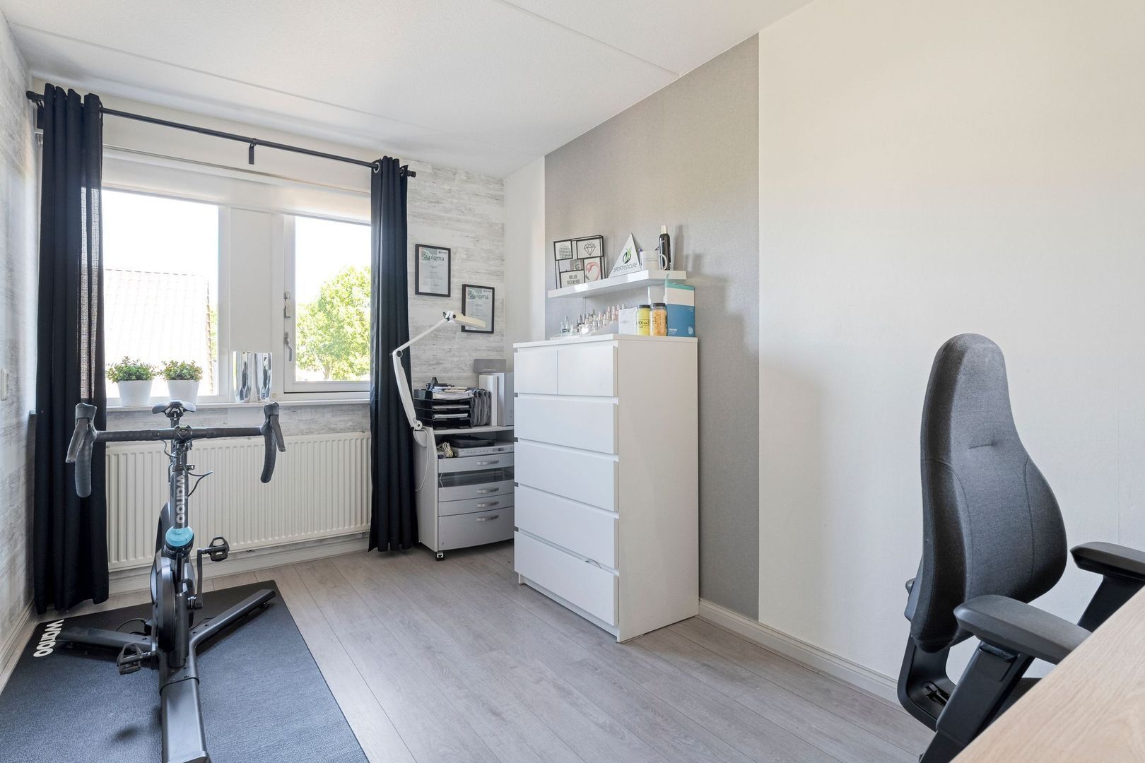 De tweede slaapkamer is eveneens ruim en beschikt over een groot raam dat zorgt voor veel lichtinval. Deze kamer leent zich uitstekend als kinderkamer of kantoorruimte. De derde kamer op deze verdieping is in gebruik als praktijk- of slaapkamer. Door de twee openslaande ramen en het zijgevelraam voelt ook deze ruimte fris en licht. De strakke afwerking en het prettige formaat maken de kamer veelzijdig in gebruik.
