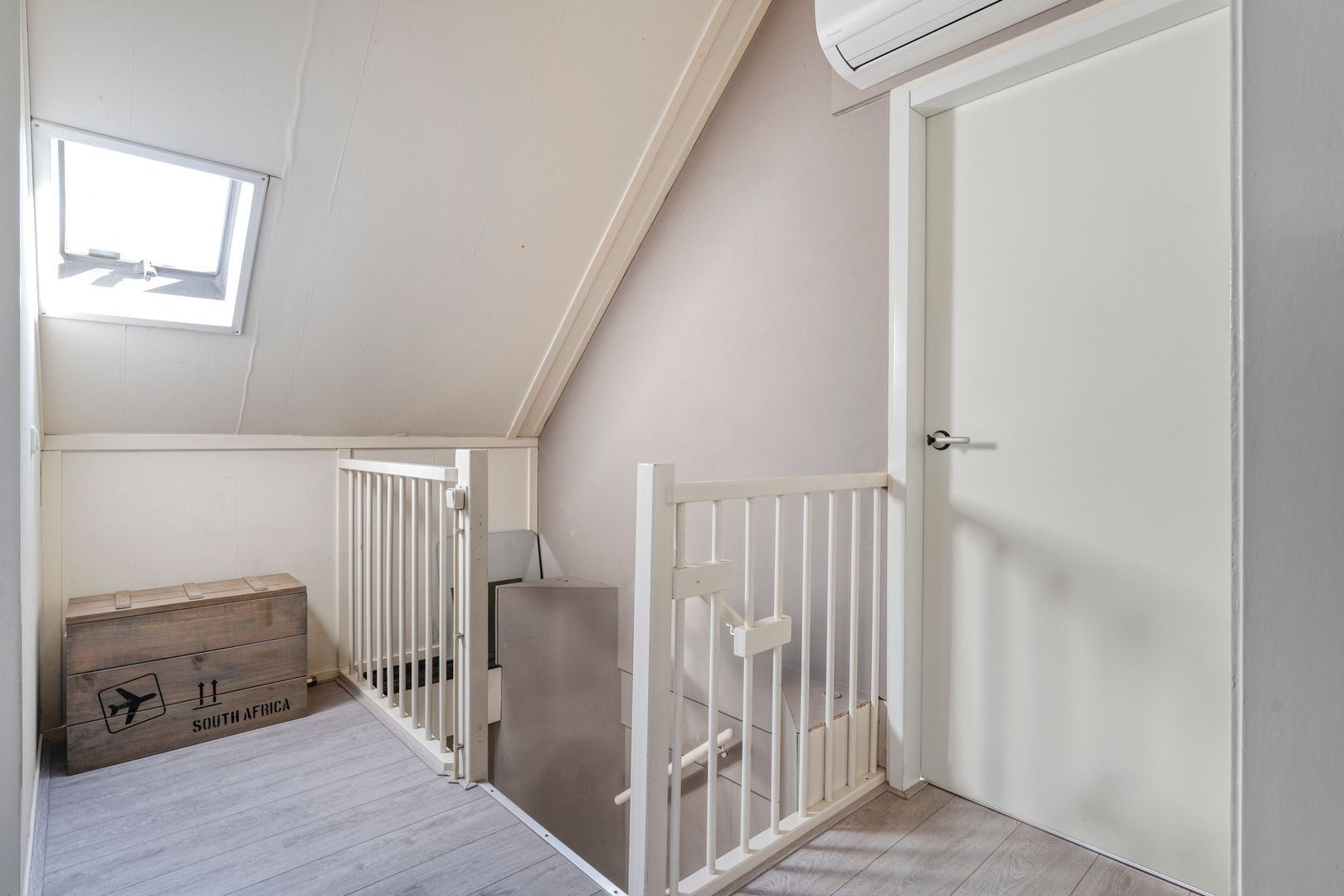 De tweede verdieping is verrassend ruim en praktisch ingedeeld, waardoor dit een volwaardige extra woonlaag vormt. Bij het betreden van de overloop merkt u direct de lichtinval van het dakraam. Hier is bovendien een airco geplaatst, zodat ook op warme zomerdagen een aangename temperatuur gegarandeerd is. Via een ladder of losse trap bereikt u een handige vliering, ideaal voor het opbergen van seizoensspullen of andere zaken die u niet dagelijks nodig heeft.