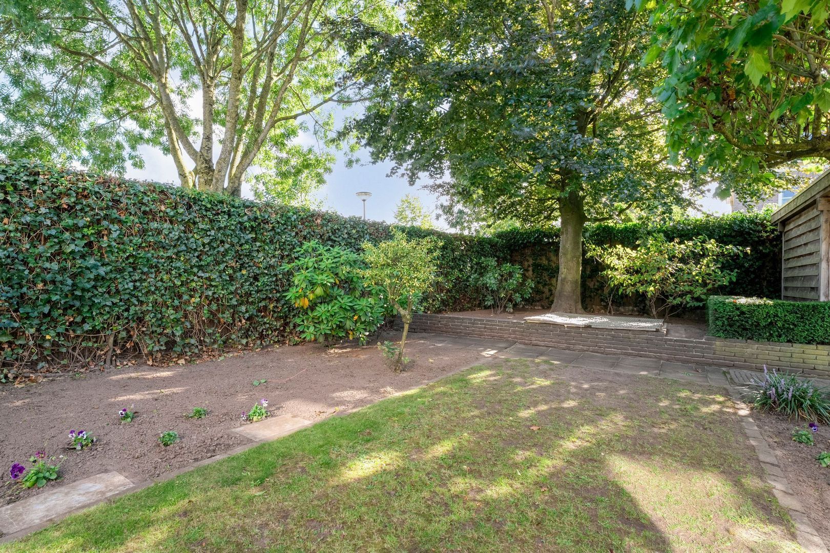 De tuin is fraai aangelegd met gebakken klinkers, veel groen en een verzorgde erfafscheiding die zorgt voor optimale privacy. Daarnaast is er een houten berging aanwezig, praktisch voor het opbergen van tuingereedschap of fietsen. Via een achterom bereikt u gemakkelijk de tuin, wat het ook praktisch maakt in dagelijks gebruik.