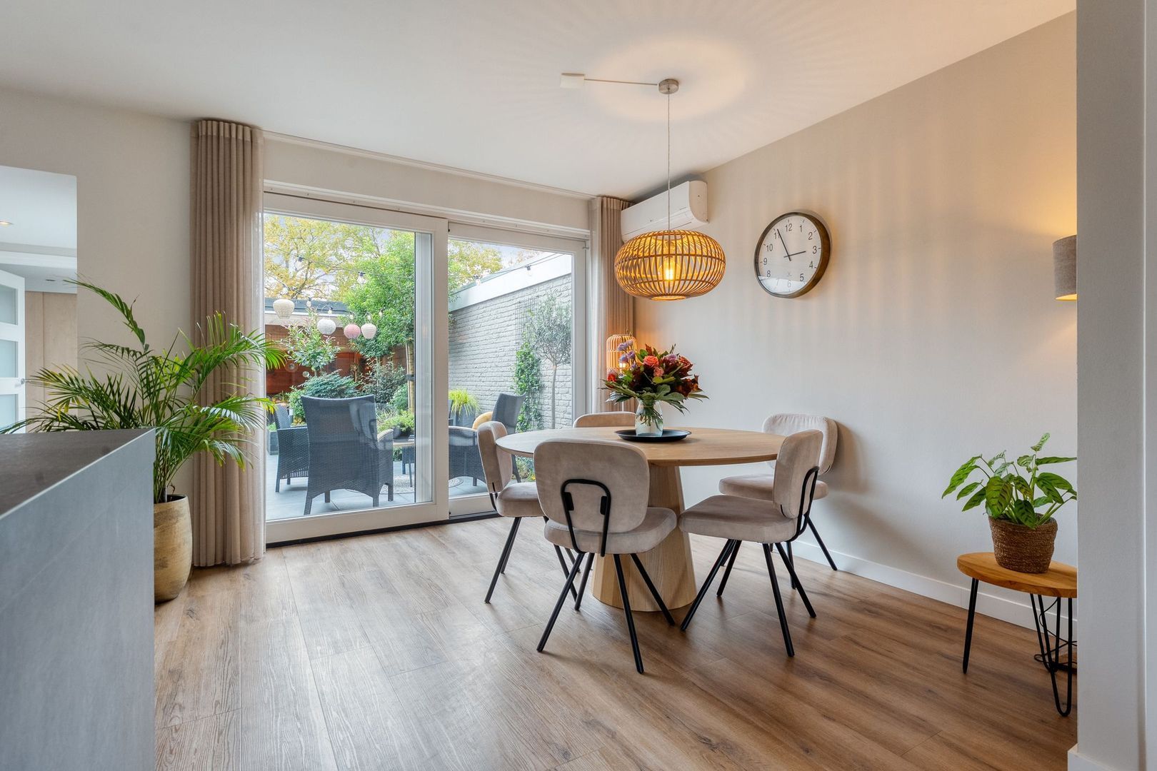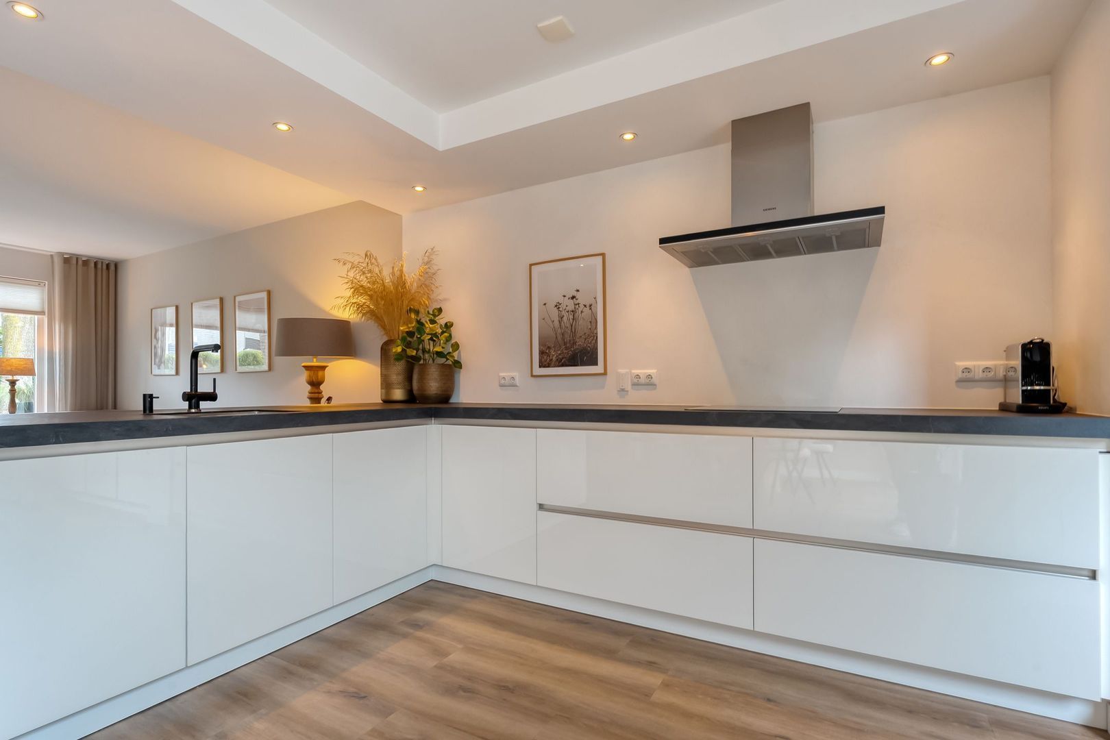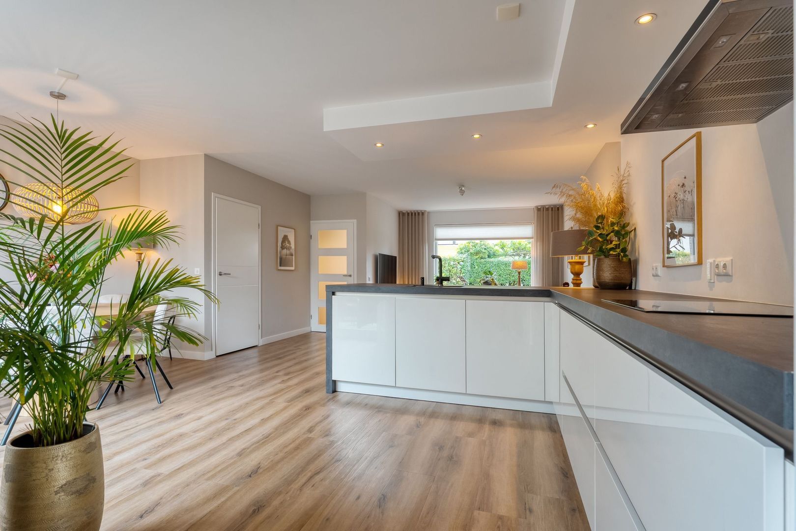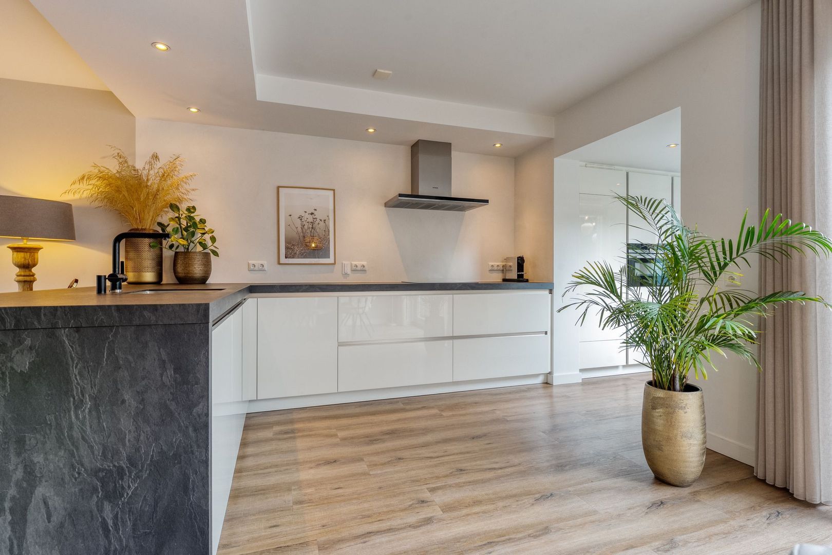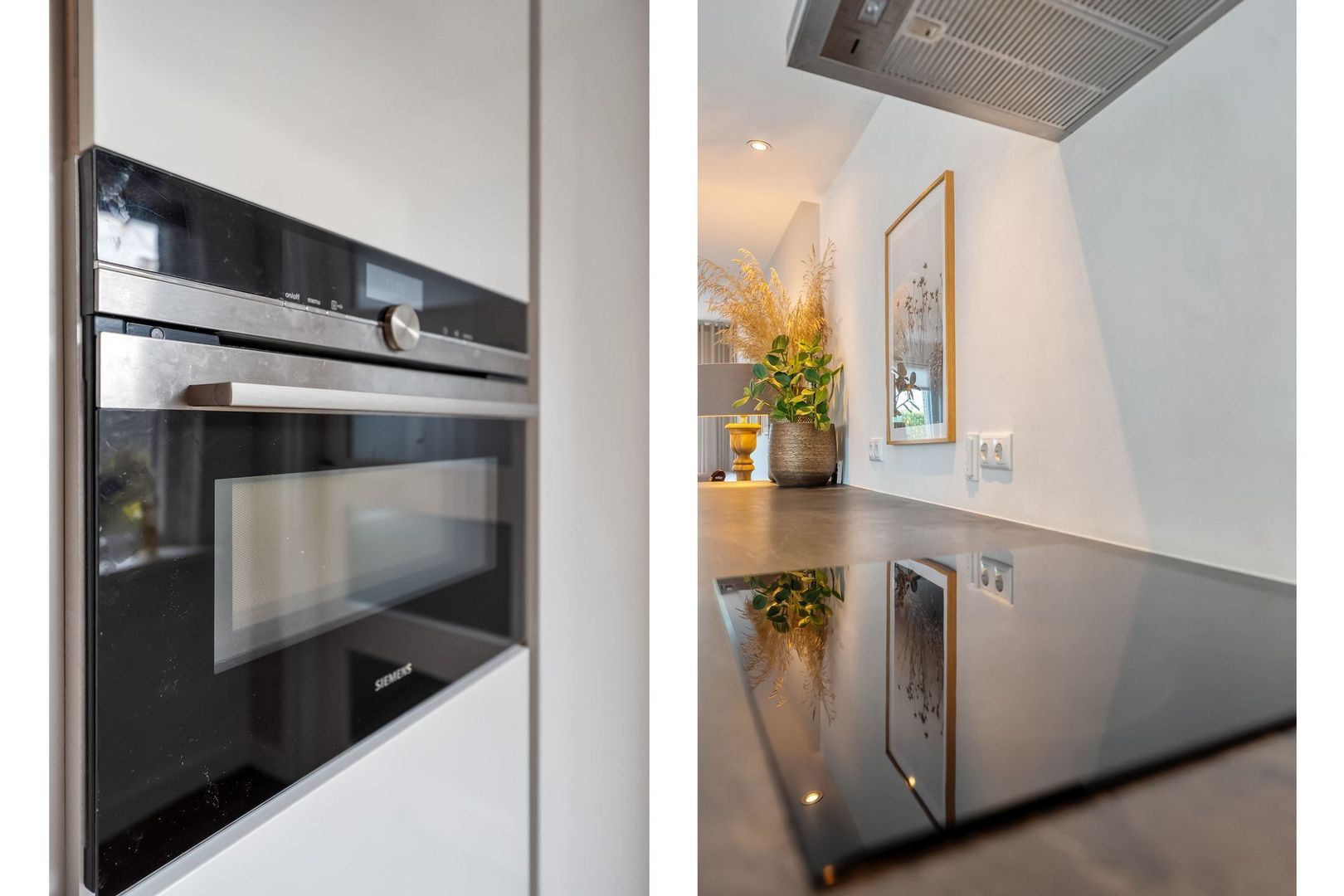 De keuken aan de achterzijde is in 2020 volledig vernieuwd en vormt een echte eyecatcher. De moderne inrichting met inductiekookplaat, combi-oven/magnetron en een 15-liter heetwaterboiler combineert stijl met functionaliteit. De inbouwspots en strakke lijnen zorgen voor een eigentijdse uitstraling, terwijl de open verbinding met de woonkamer een gevoel van ruimte en gezelligheid creëert.