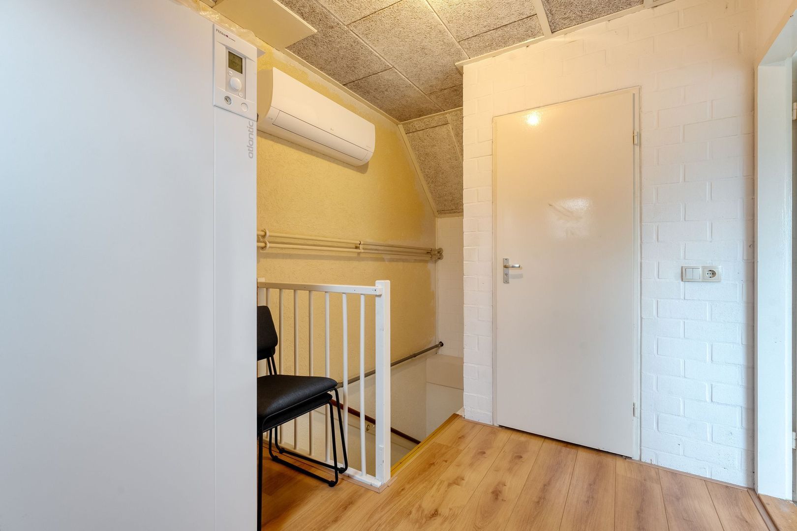 De overloop is praktisch ingericht met aansluitingen voor wasmachine en droger, een 190-liter luchtwarmtepomp watervat, extra bergruimte onder de knieschotten en een tweede dakraam dat zorgt voor extra licht. De recent geplaatste LG dual inverter airco (2024) biedt een aangename temperatuur gedurende het hele jaar. Alles is netjes afgewerkt en functioneel opgezet, waardoor de verdieping direct in gebruik kan worden genomen.
