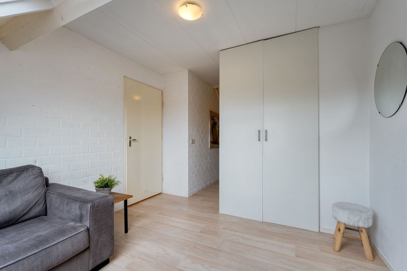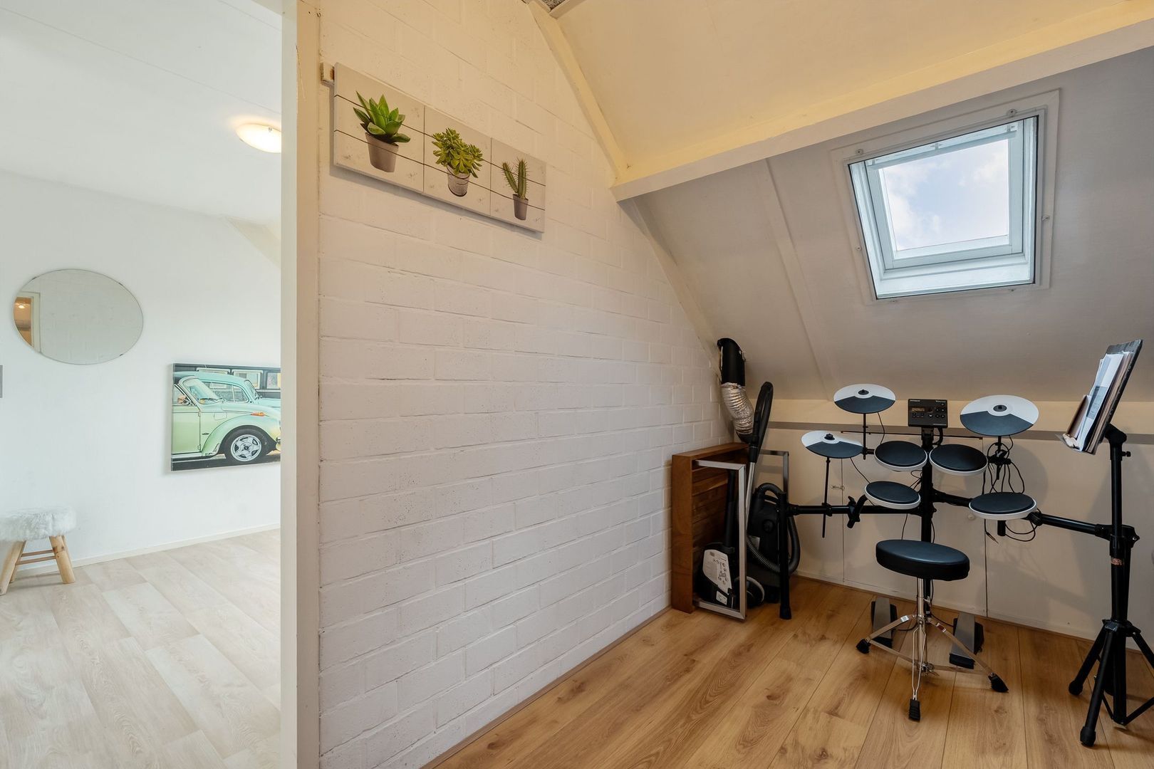 De tweede verdieping is verrassend ruim en slim ingedeeld. Hier bevindt zich een royale slaapkamer met dakraam, waar het daglicht prettig binnenvalt. De ruimte is keurig afgewerkt en biedt volop mogelijkheden, bijvoorbeeld als slaapkamer, logeerkamer of kantoor aan huis. Dankzij de royale afmetingen is het bovendien eenvoudig mogelijk om hier twee aparte kamers te realiseren.