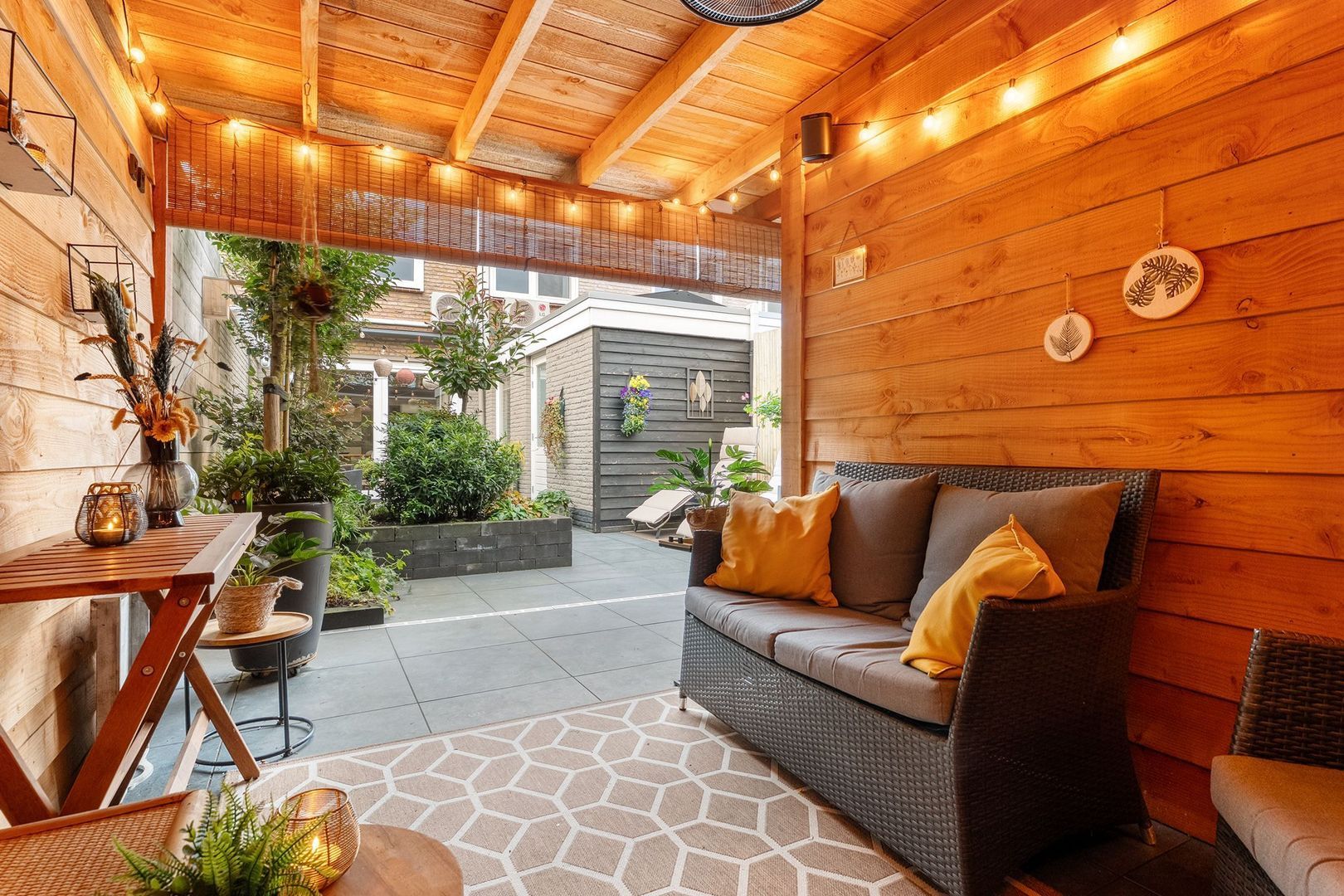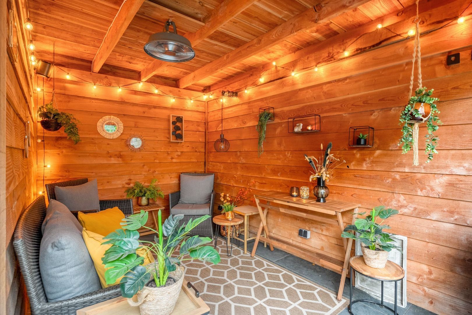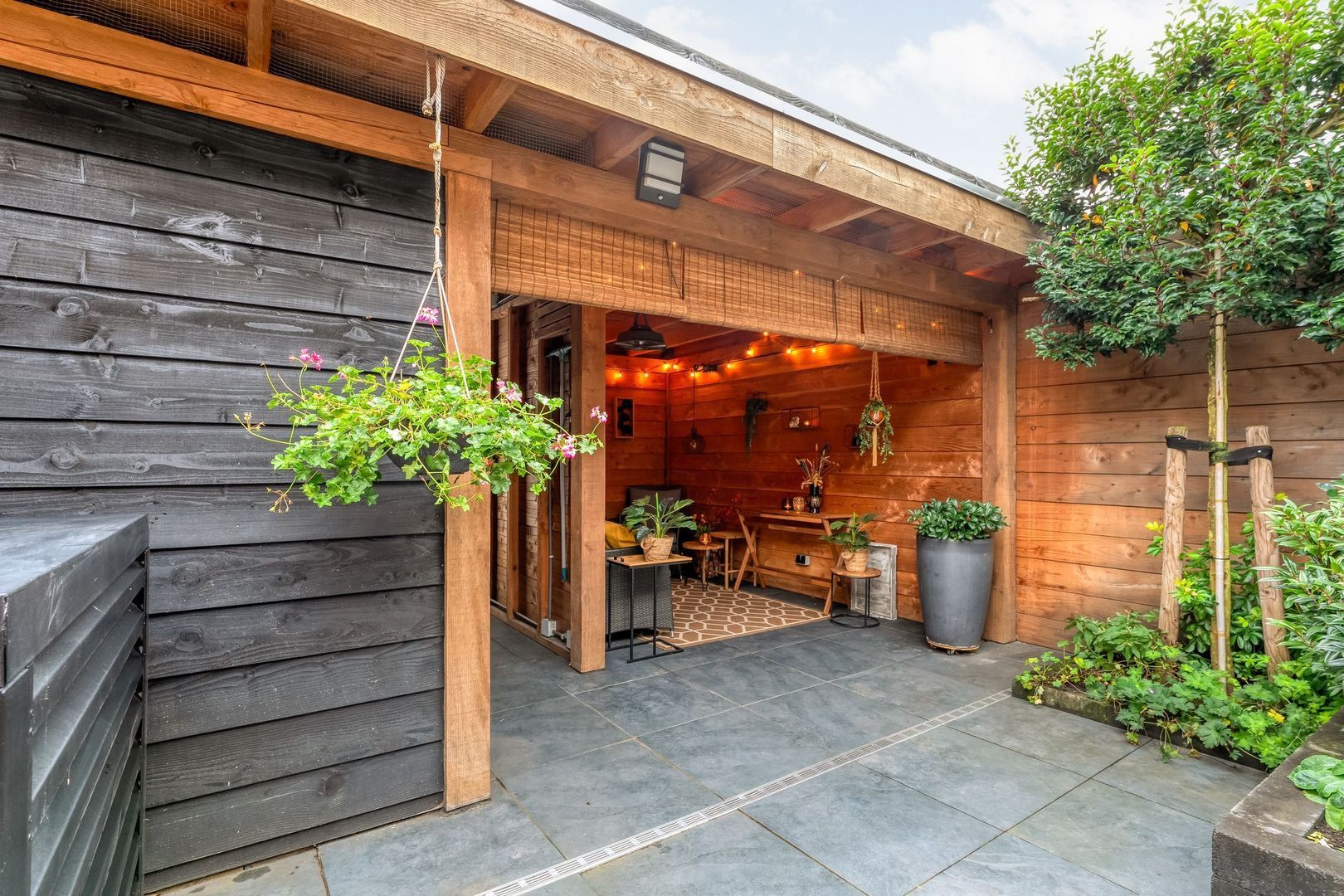 Aan de achterzijde bevindt zich een sfeervolle Douglas-overkapping (2019), de ideale plek om tot in de late uurtjes van het buitenleven te genieten. Aangrenzend bevindt zich een praktische berging, perfect voor het netjes opbergen van fietsen en tuingereedschap. De buiten unit van de warmtepomp (2022) is netjes weggewerkt, zodat het geheel een verzorgde en rustige uitstraling behoudt.