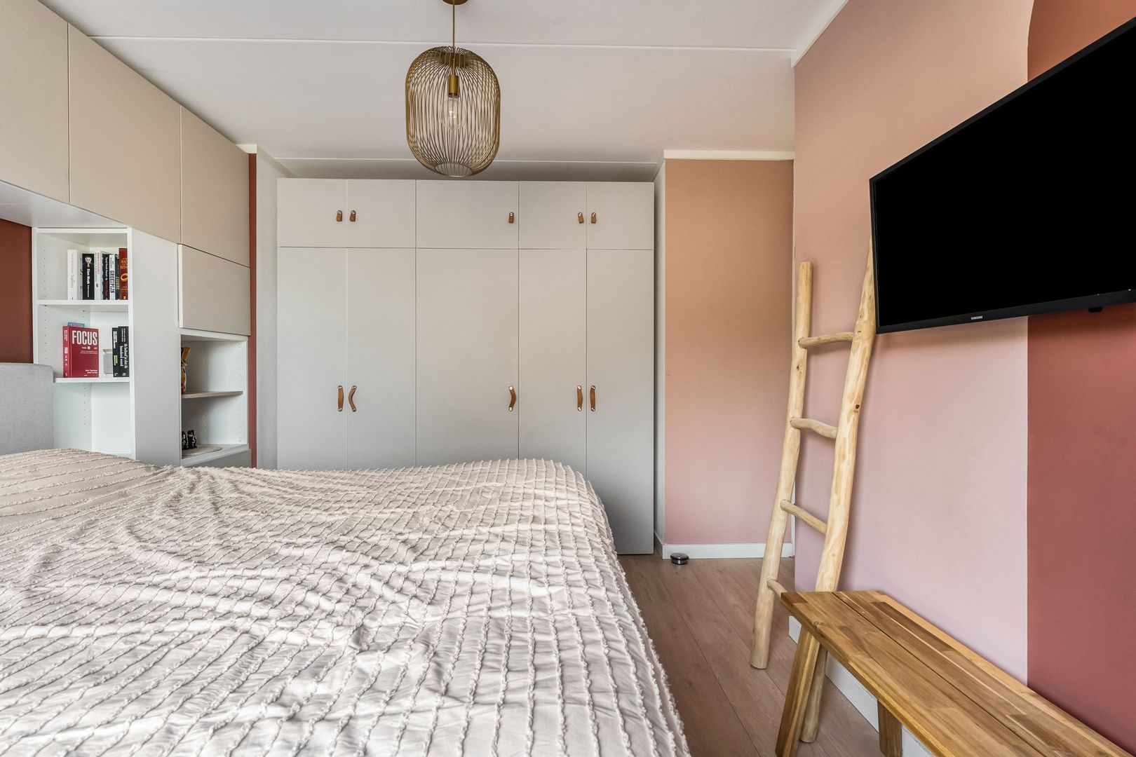De slaapkamer is strak en modern afgewerkt, voorzien van een groot dakraam en handige bergruimte achter de knieschotten. De ruimte voelt licht en open aan, en biedt voldoende plek voor een tweepersoonsbed en kastruimte. Indien gewenst kan de verdieping eenvoudig worden opgesplitst in twee afzonderlijke kamers, waardoor de woning nog meer flexibiliteit krijgt.