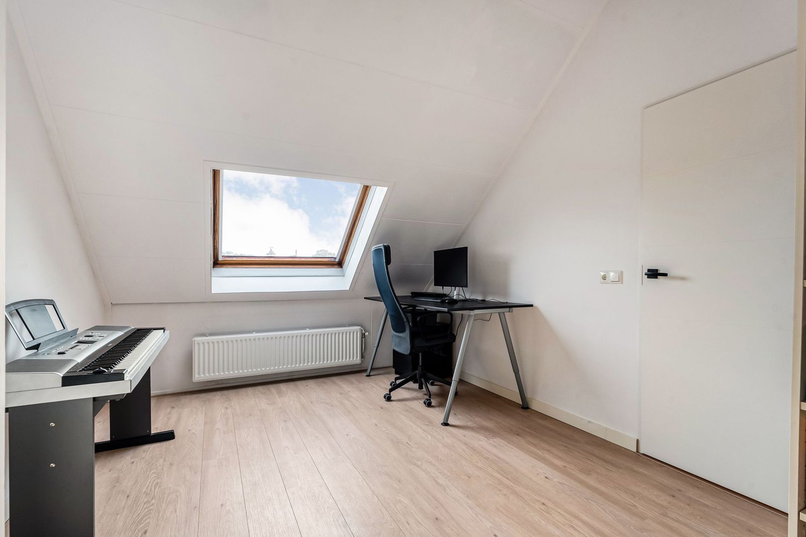 De vaste trap leidt naar de verrassend ruime tweede verdieping, die netjes is afgewerkt en volop mogelijkheden biedt. Op de overloop bevinden zich de cv-installatie (Nefit Trendline, 2021) en een dakraam dat zorgt voor natuurlijke lichtinval. Het zijraam in de kopgevel biedt bovendien een prachtig, vrij uitzicht over de omgeving.