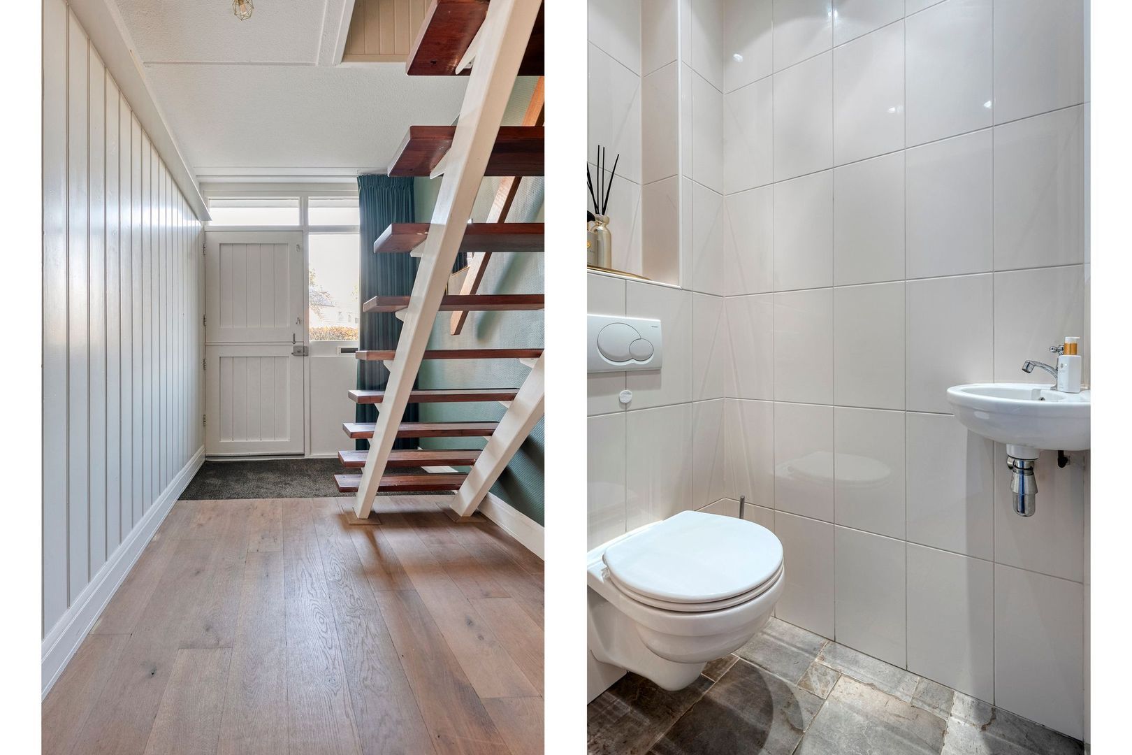 Aan de achterzijde van het perceel bevindt zich bovendien een achterentree via het fietspad, die toegang biedt tot de achtertuin. Dit is een handige doorgang voor het plaatsen van fietsen of het bereiken van de tuin zonder via de woning te hoeven gaan.