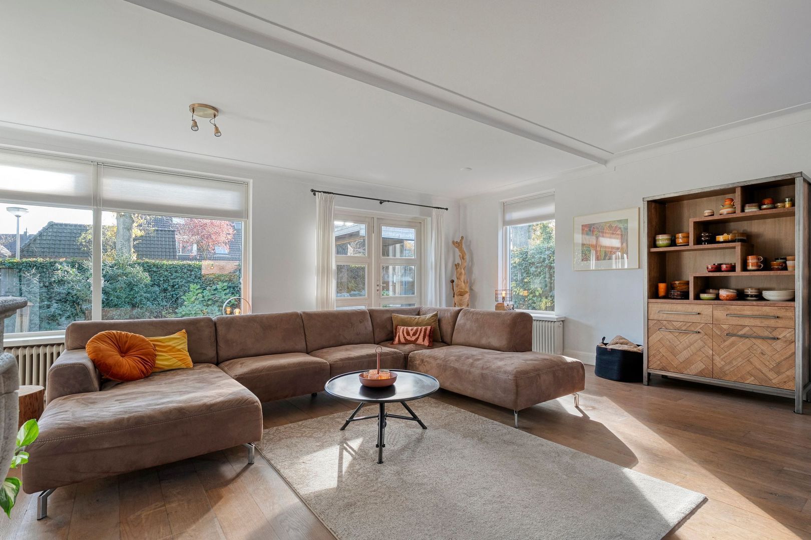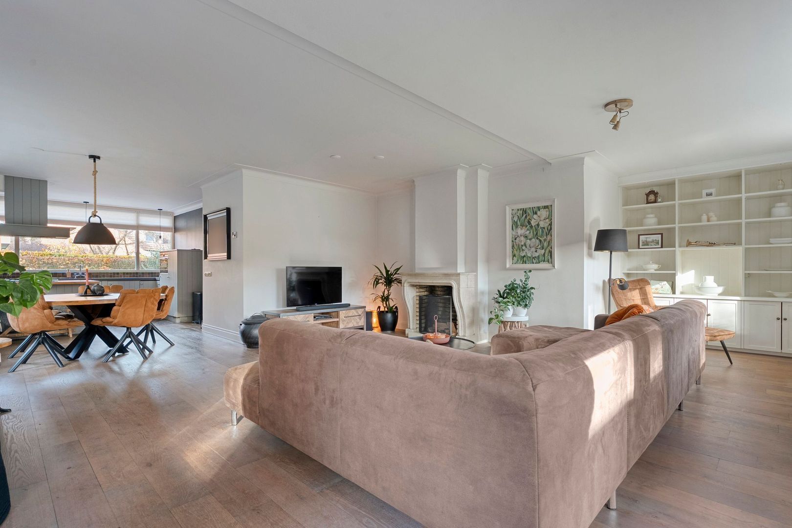 De begane grond van de woning kenmerkt zich door ruimte en licht. Vanuit de hal loop je via de keuken direct de sfeervolle woonkamer binnen, die over de volle breedte van de woning is uitgebouwd. Dankzij de grote raampartijen aan zowel de voor- als achterzijde geniet de kamer van uitzonderlijk veel lichtinval. De openslaande deuren naar de tuin versterken dit gevoel van ruimte en zorgen voor een fijne verbinding tussen binnen en buiten.