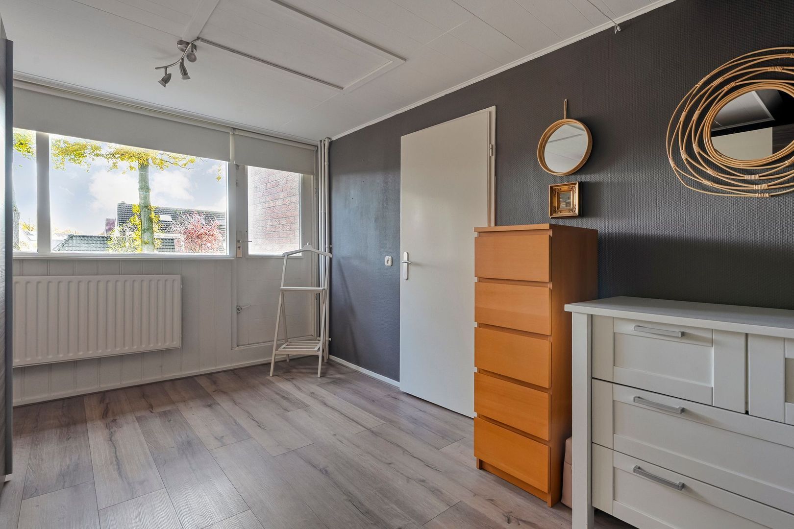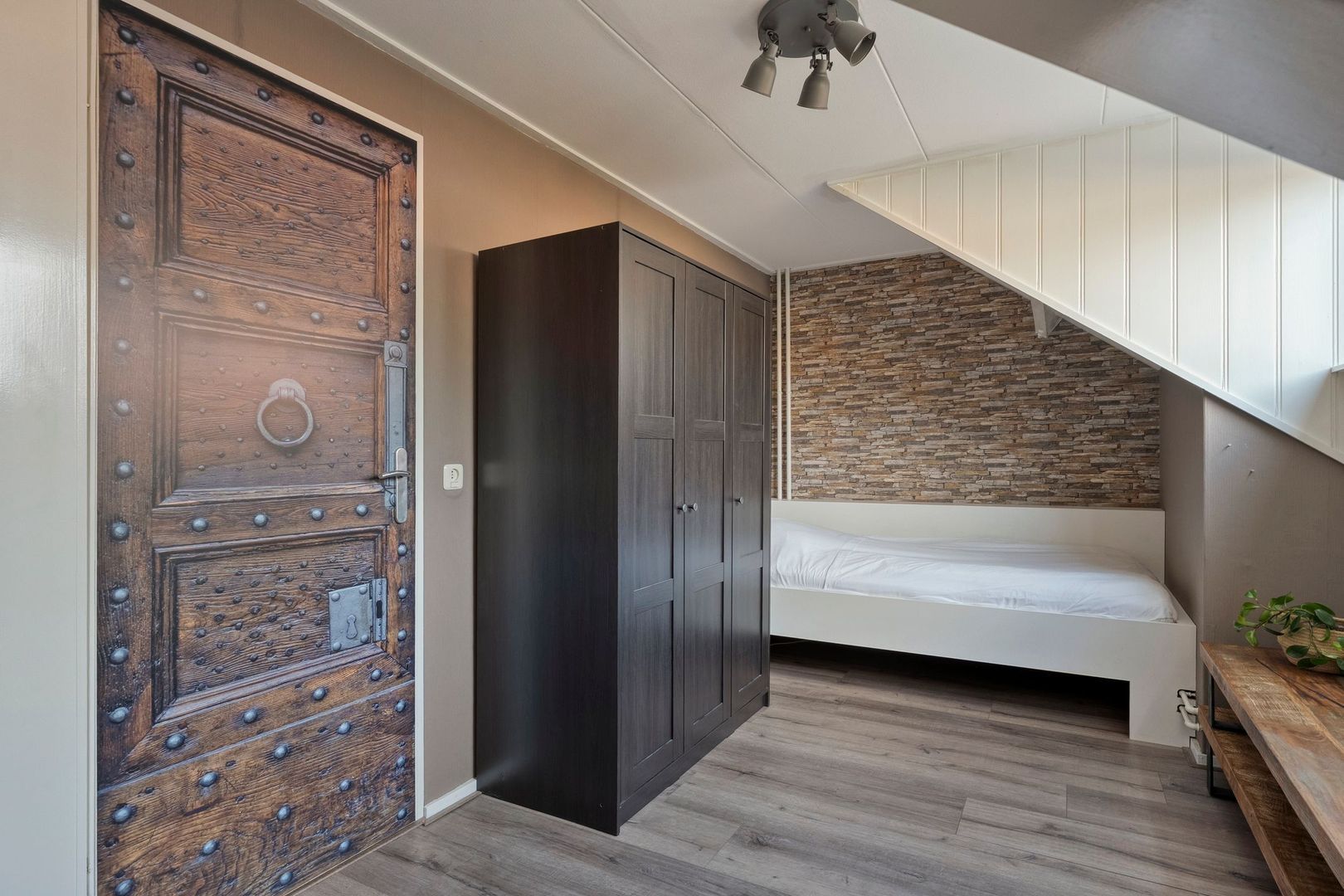 De derde slaapkamer heeft een loopdeur naar het grote balkon aan de achterzijde en een bergzolder/vliering, ideaal voor extra opslagruimte.