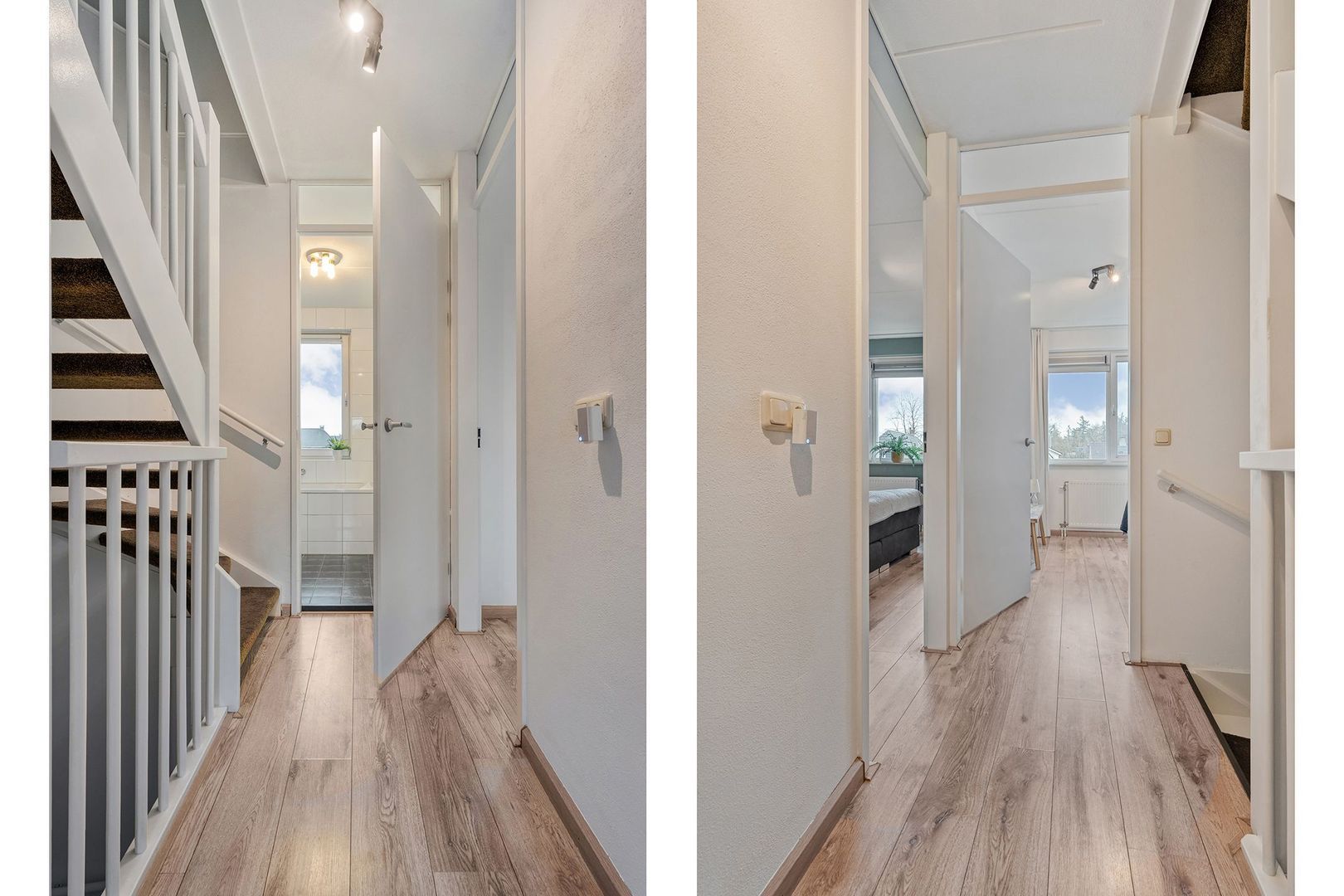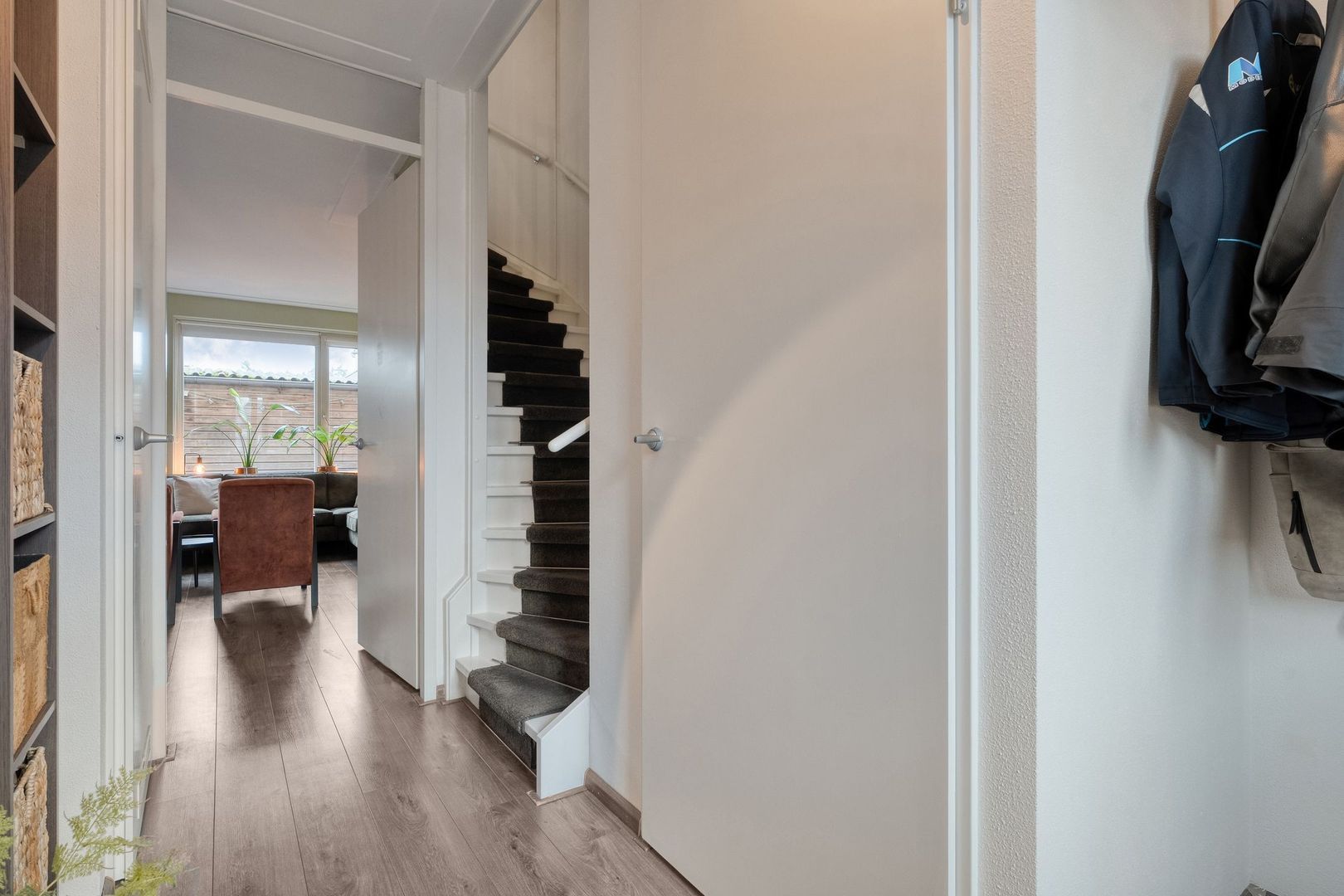 De hal biedt toegang tot zowel de woonkamer als de trap naar boven. Dankzij de overzichtelijke indeling en de verzorgde afwerking krijg je meteen een indruk van het wooncomfort dat de rest van het huis te bieden heeft.