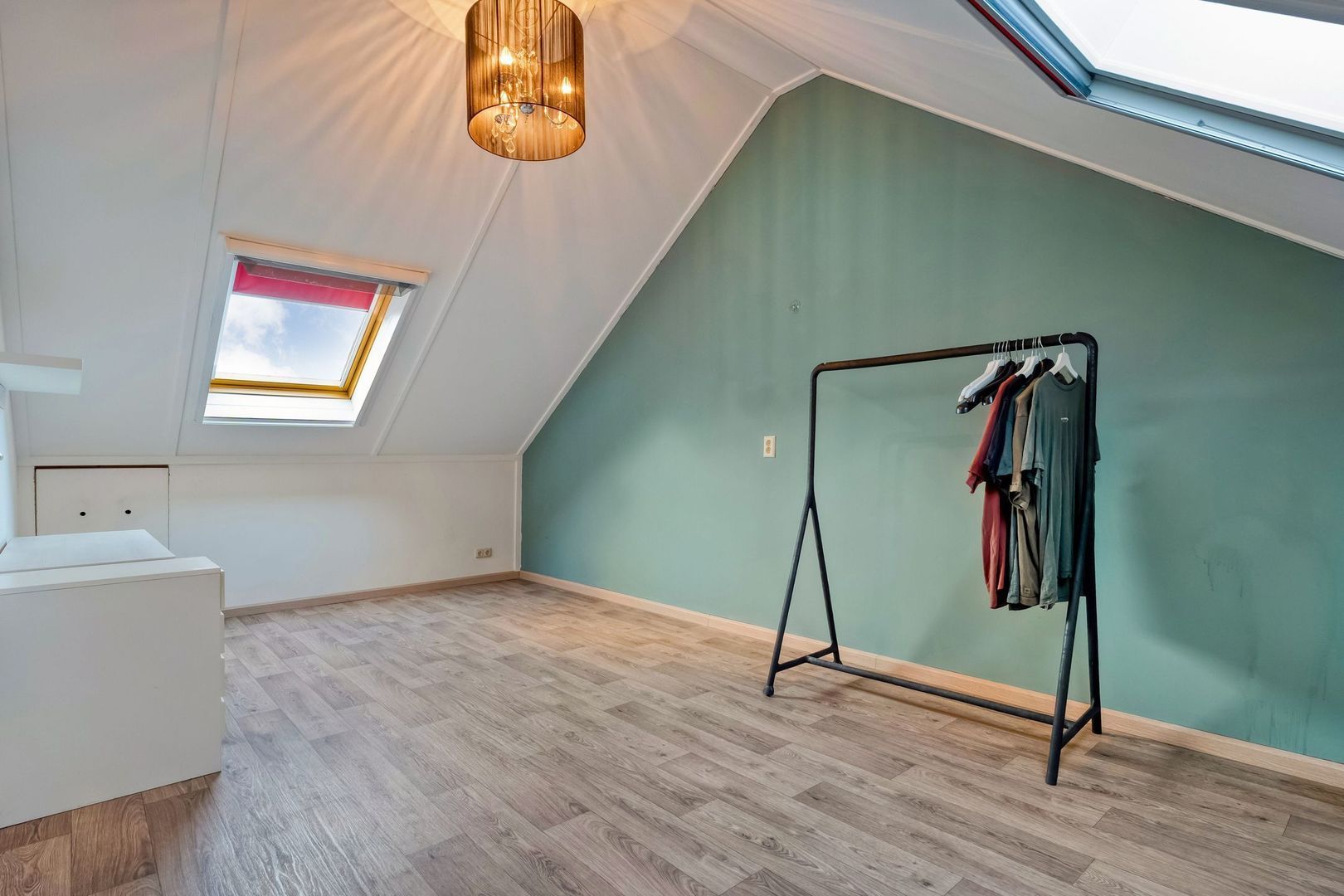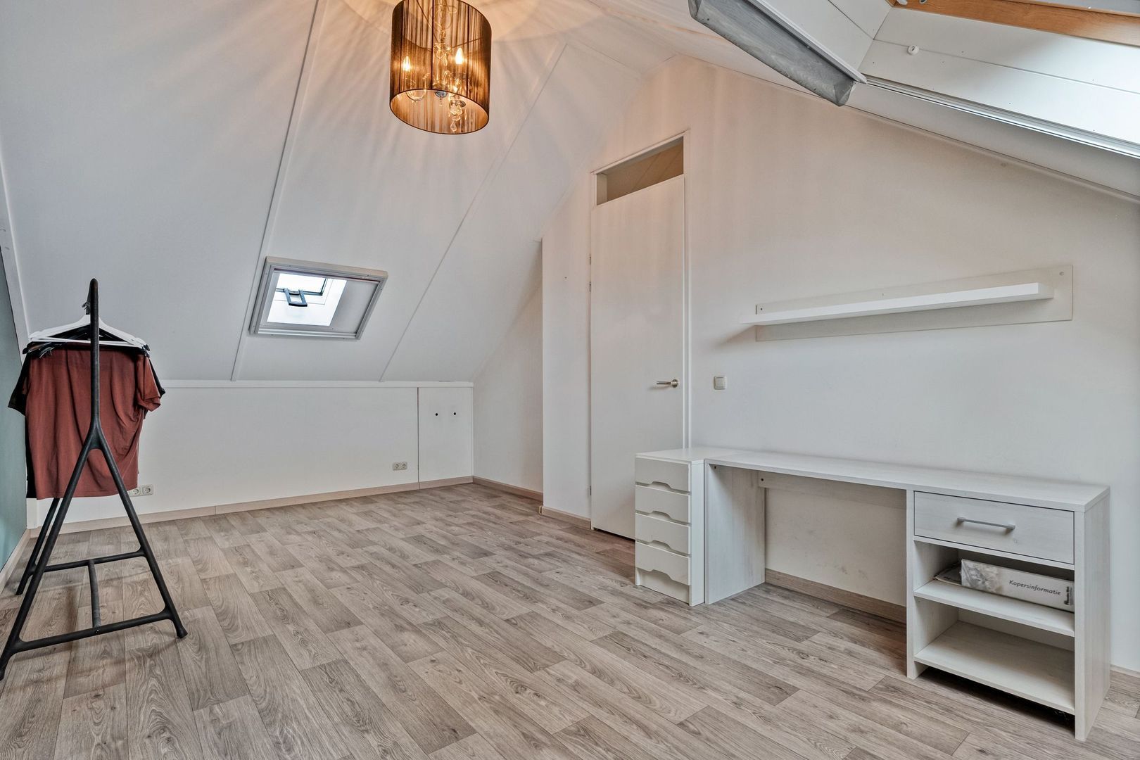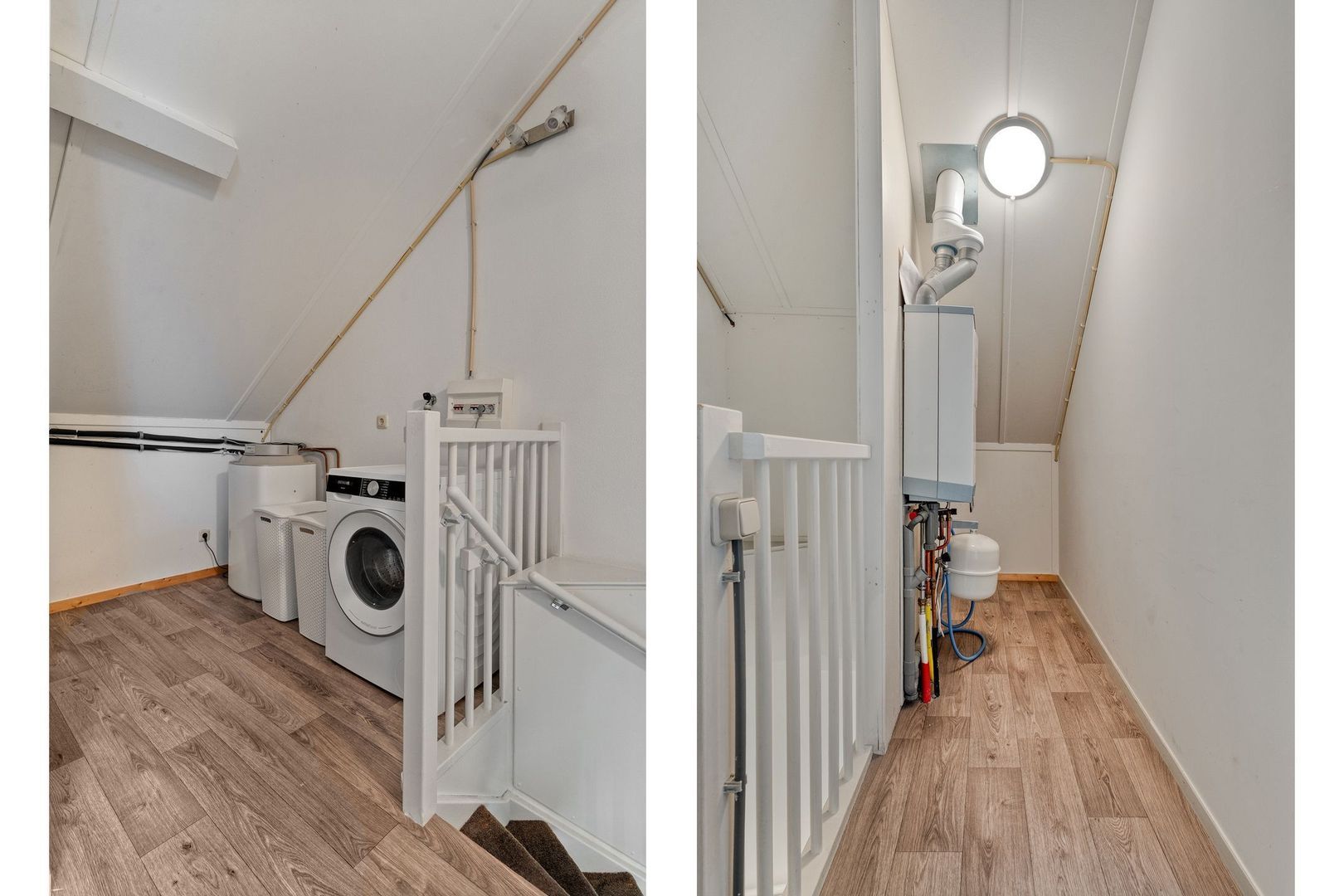 De tweede verdieping is een verrassend nette en multifunctionele ruimte. De ruime slaapkamer beschikt over twee dakramen die voor veel licht zorgen. Achter het knieschot vind je extra bergruimte, ideaal voor seizoensspullen. Op de overloop bevinden zich de cv-installatie, de zonneboiler en de aansluitingen voor wasmachine en droger. Een praktische, verzorgde verdieping die perfect inzetbaar is als extra slaapkamer, werkplek of hobbyruimte.