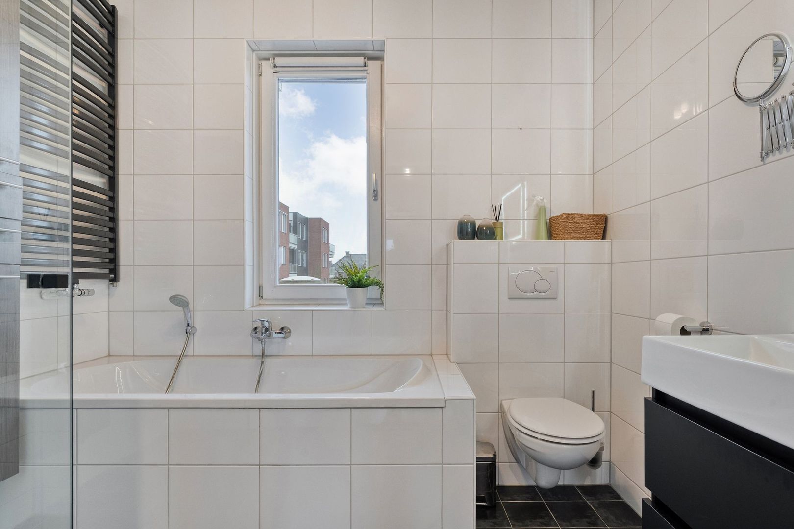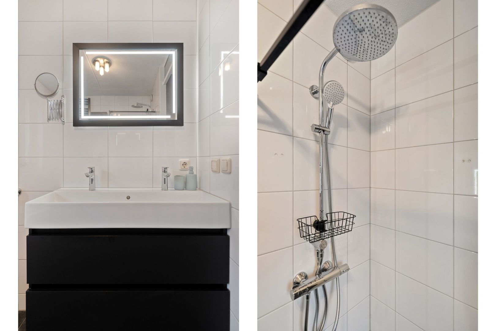 De badkamer, die begin 2023 deels is vernieuwd, is modern en compleet ingericht. De ruimte beschikt over een ligbad, inloopdouche, hangtoilet, designradiator en een wastafelmeubel met dubbele kraan. Een praktische én comfortabele badkamer die helemaal klaar is voor jarenlang gebruik.