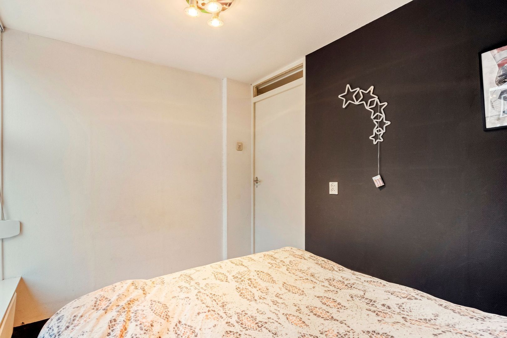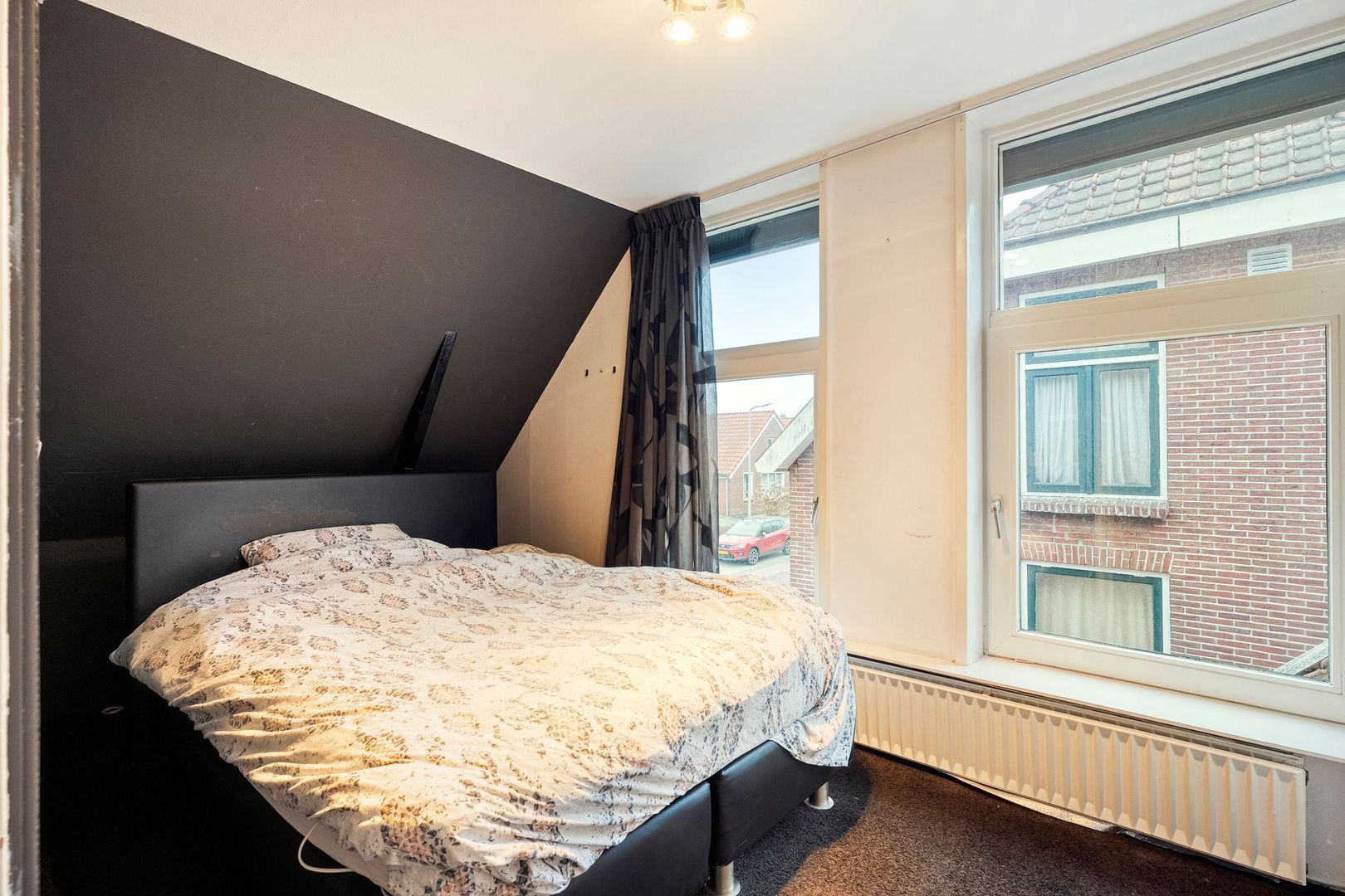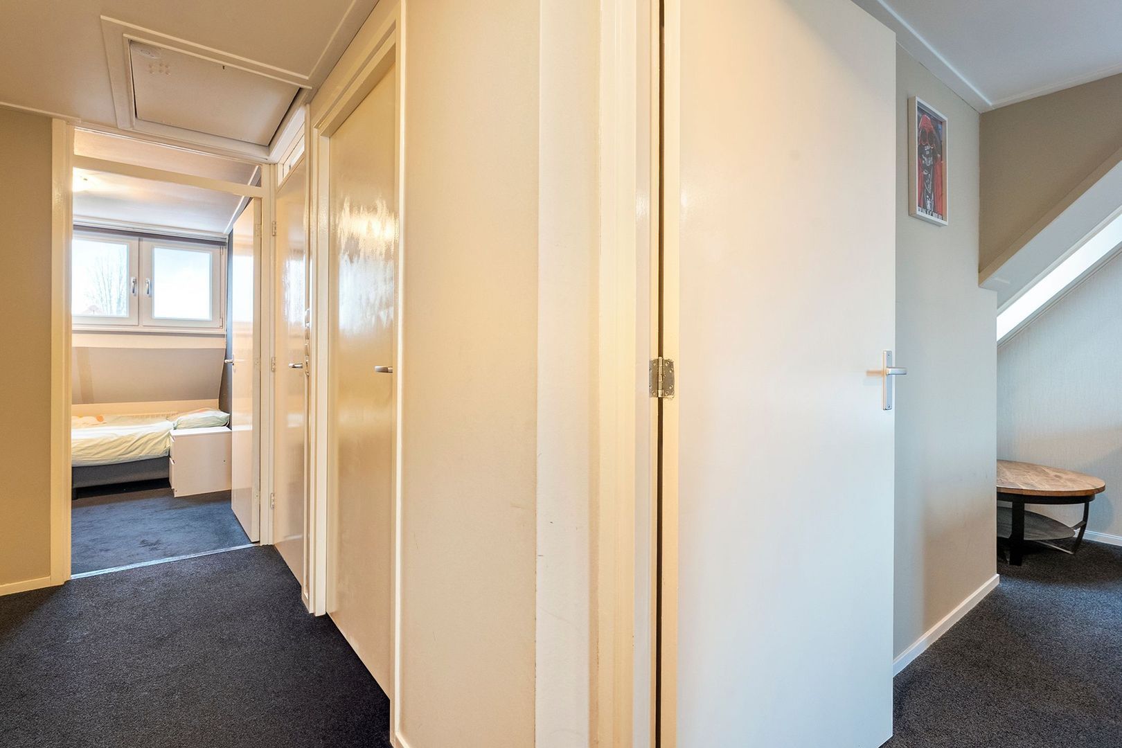 De slaapkamers zijn netjes afgewerkt en voorzien van draai-kiepramen, waardoor ventileren eenvoudig is. Daarnaast zijn twee kamers uitgerust met rolluiken, waarvan de rolluiken in de grootste slaapkamer elektrisch bedienbaar zijn. Deze ruime kamer beschikt bovendien over een dakraam en airconditioning die zowel kan koelen als verwarmen, wat zorgt voor extra comfort gedurende het hele jaar.