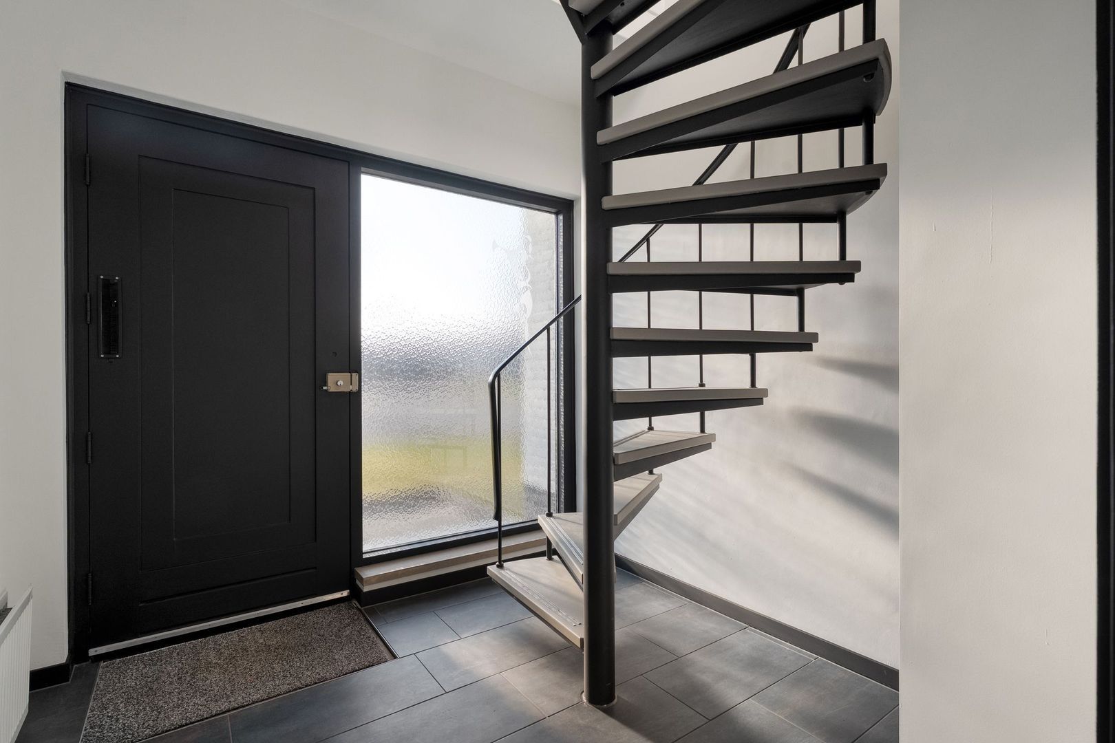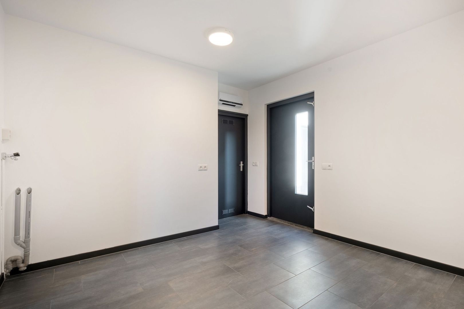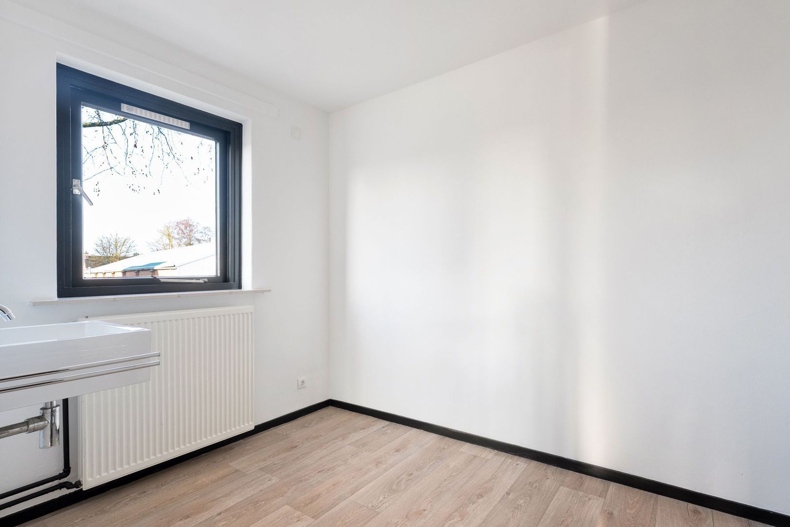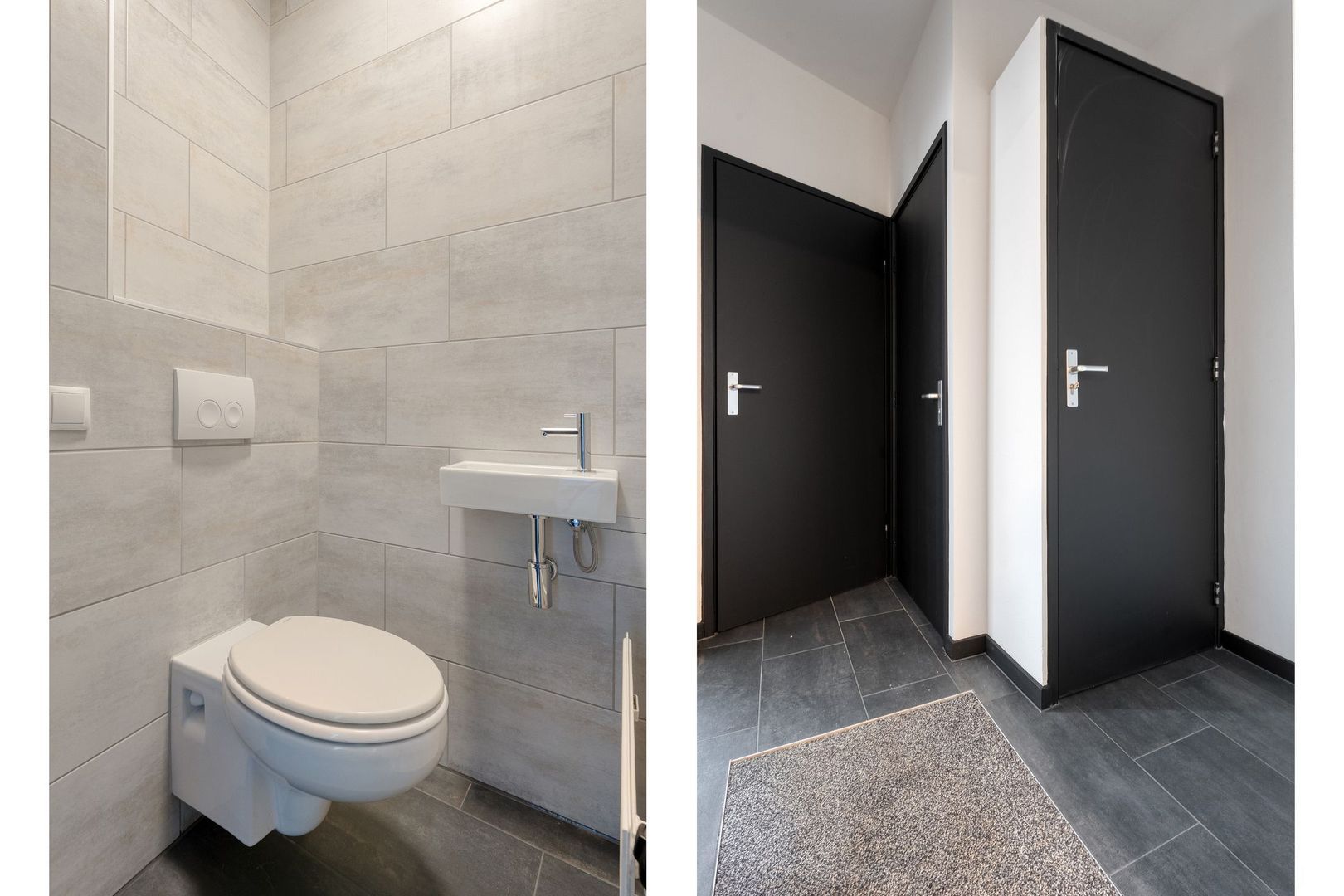 Via de zijentree bereikt u de praktische bijkeuken, voorzien van aansluitingen voor wasmachine en droger en een airco. Vanuit de bijkeuken zijn zowel de garage als de hal binnendoor bereikbaar. In de hal bevindt zich tevens het toilet op de begane grond, wat het geheel extra praktisch maakt.