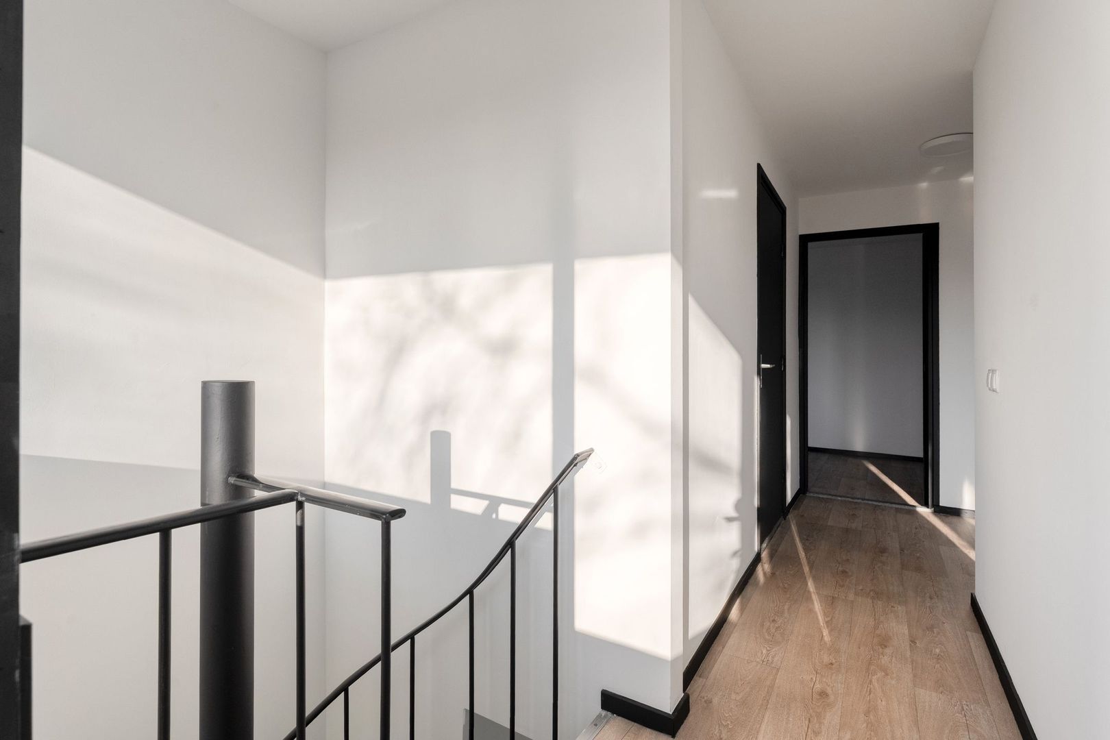 De overloop biedt toegang tot drie slaapkamers, de badkamer en het balkon, dat bereikbaar is vanaf de overloop en één van de slaapkamers.
