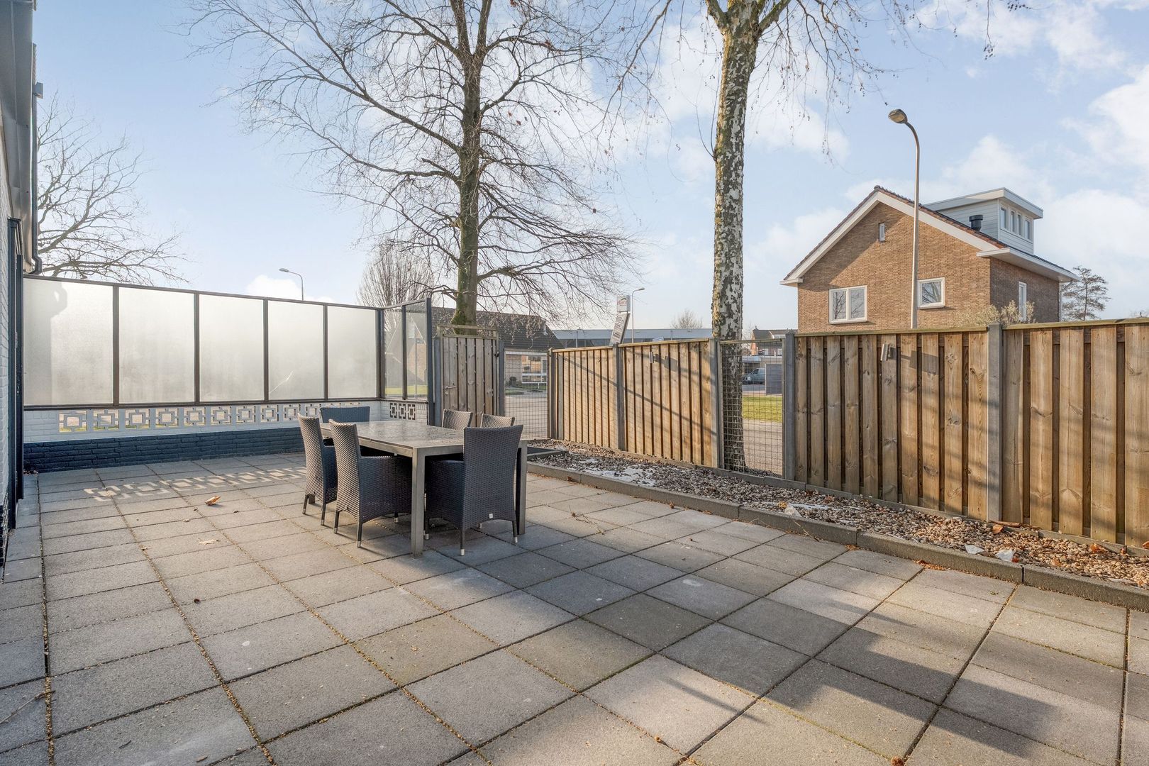 Daarnaast is er een buitenruimte van circa 200 m², praktisch ingericht en voorzien van openslaande deuren naar de straat, geschikt voor het stallen van voertuigen of aanhangers.