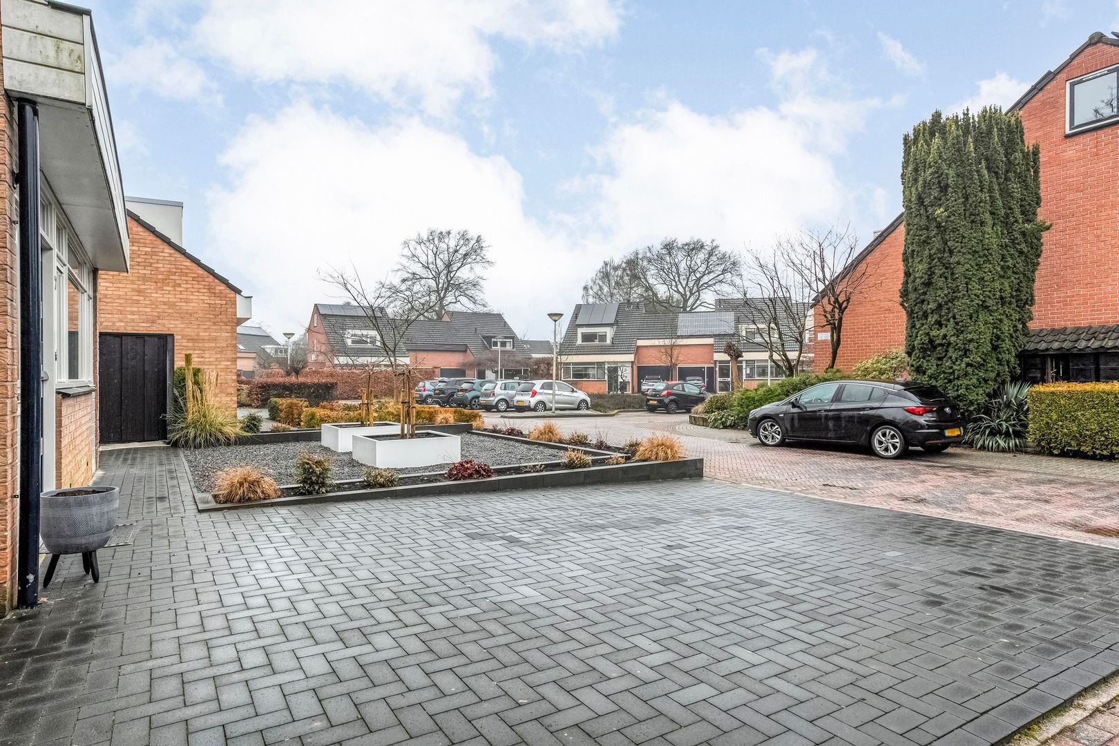 Via de onderhoudsvriendelijke voortuin, aangelegd in 2025, met dubbele oprit voor twee auto’s bereikt u de entree van deze uitgebouwde en modern afgewerkte woning. De hal is strak gestuct en afgewerkt met een moderne pvc-vloer met comfortabele vloerverwarming, wat direct zorgt voor een nette en luxe eerste indruk.