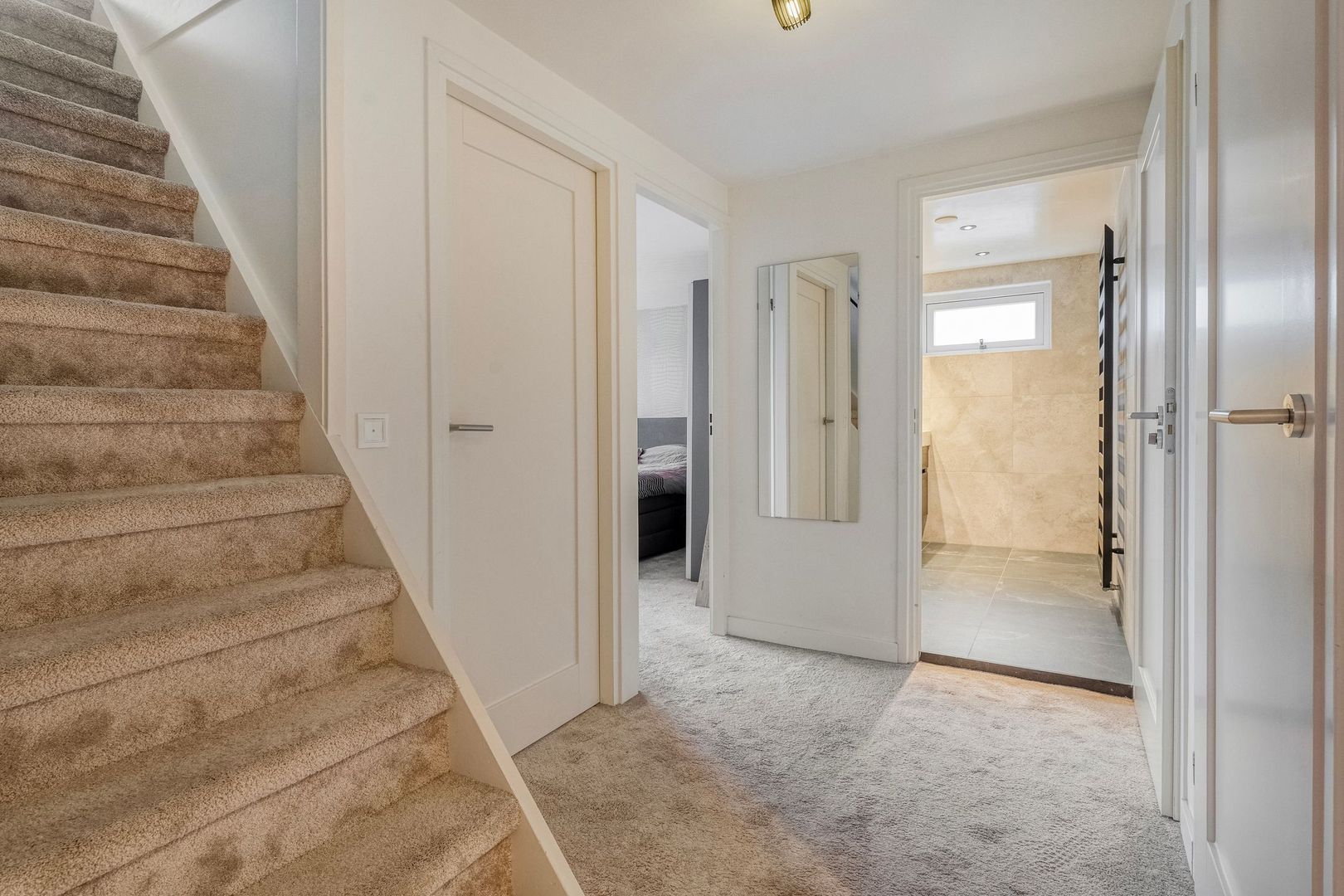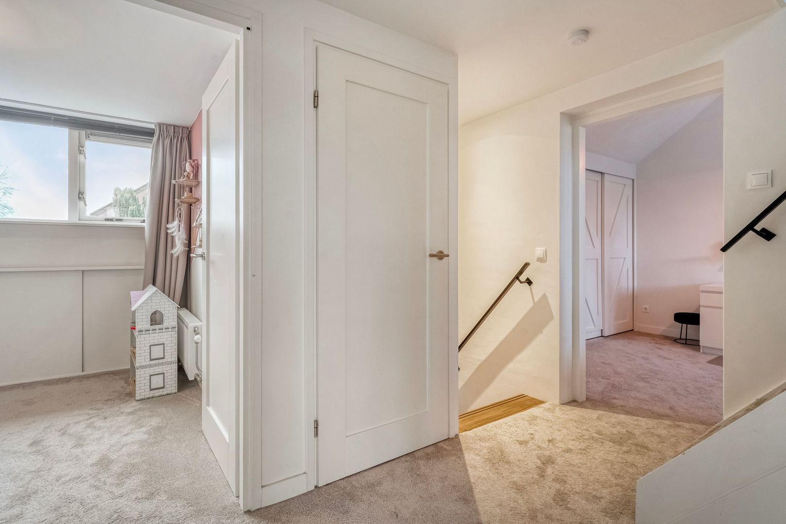 Tot slot bevindt zich op de overloop een diepe bergkast met veel opbergruimte.