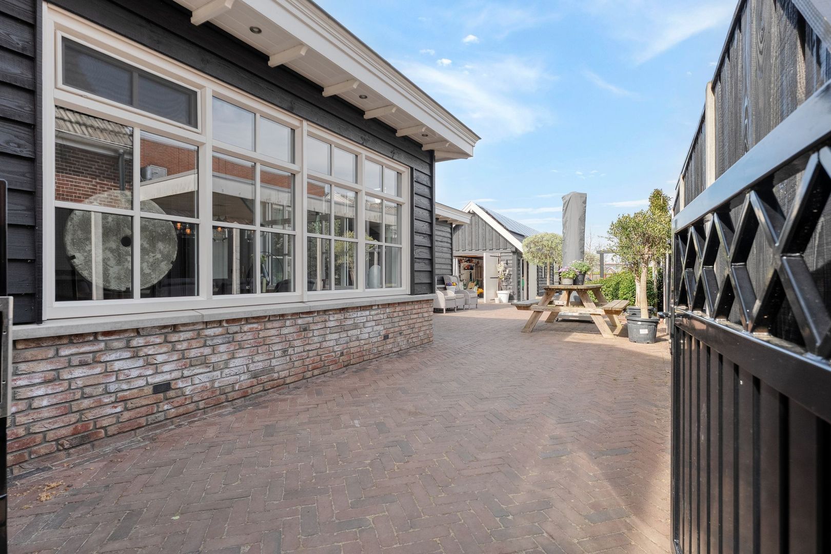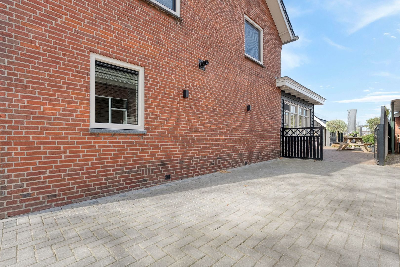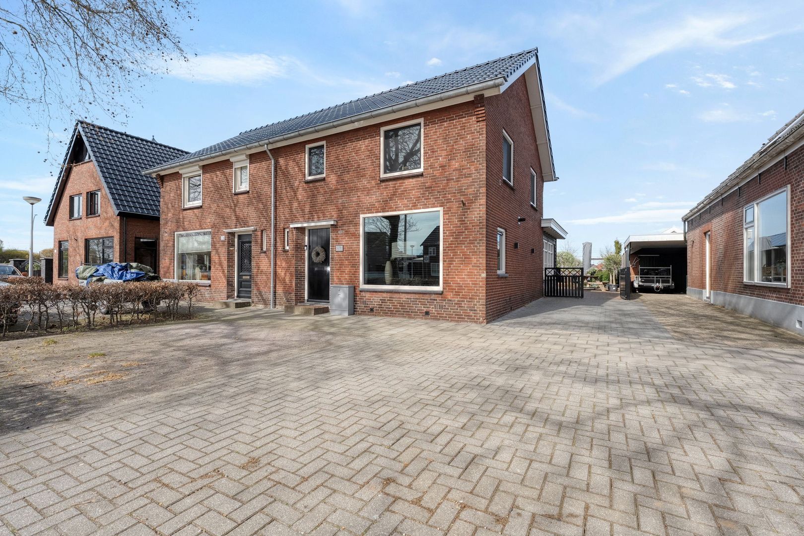 De ruime oprit aan de zijkant biedt voldoende parkeergelegenheid op eigen terrein.