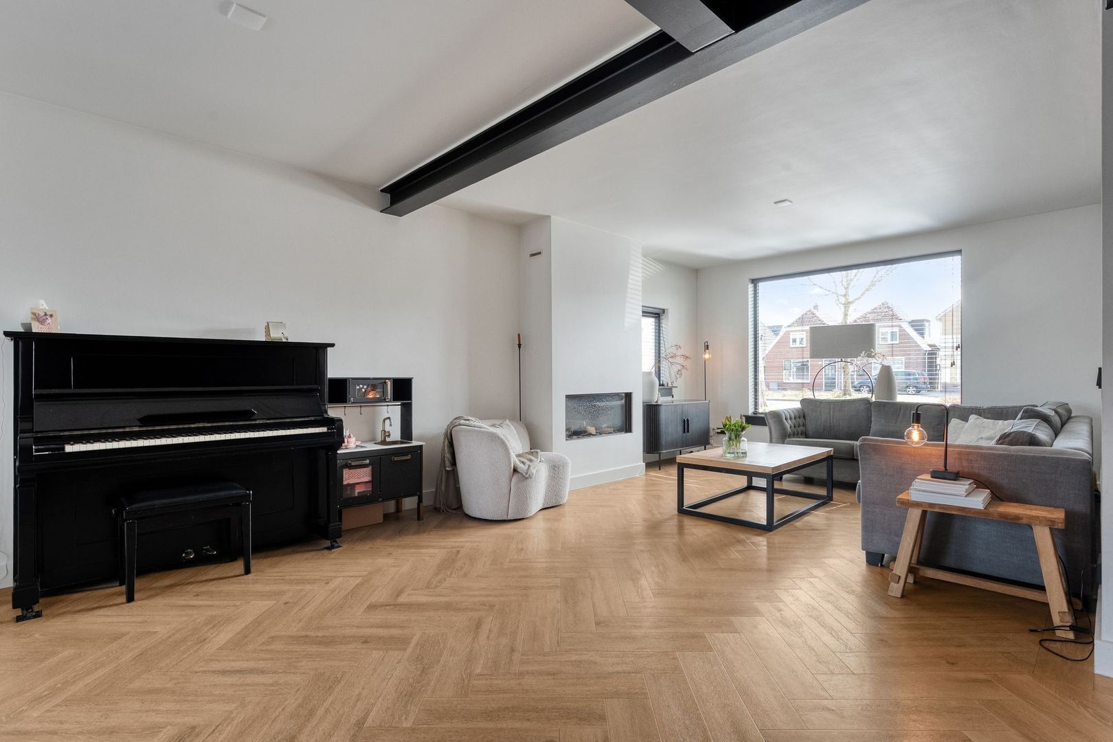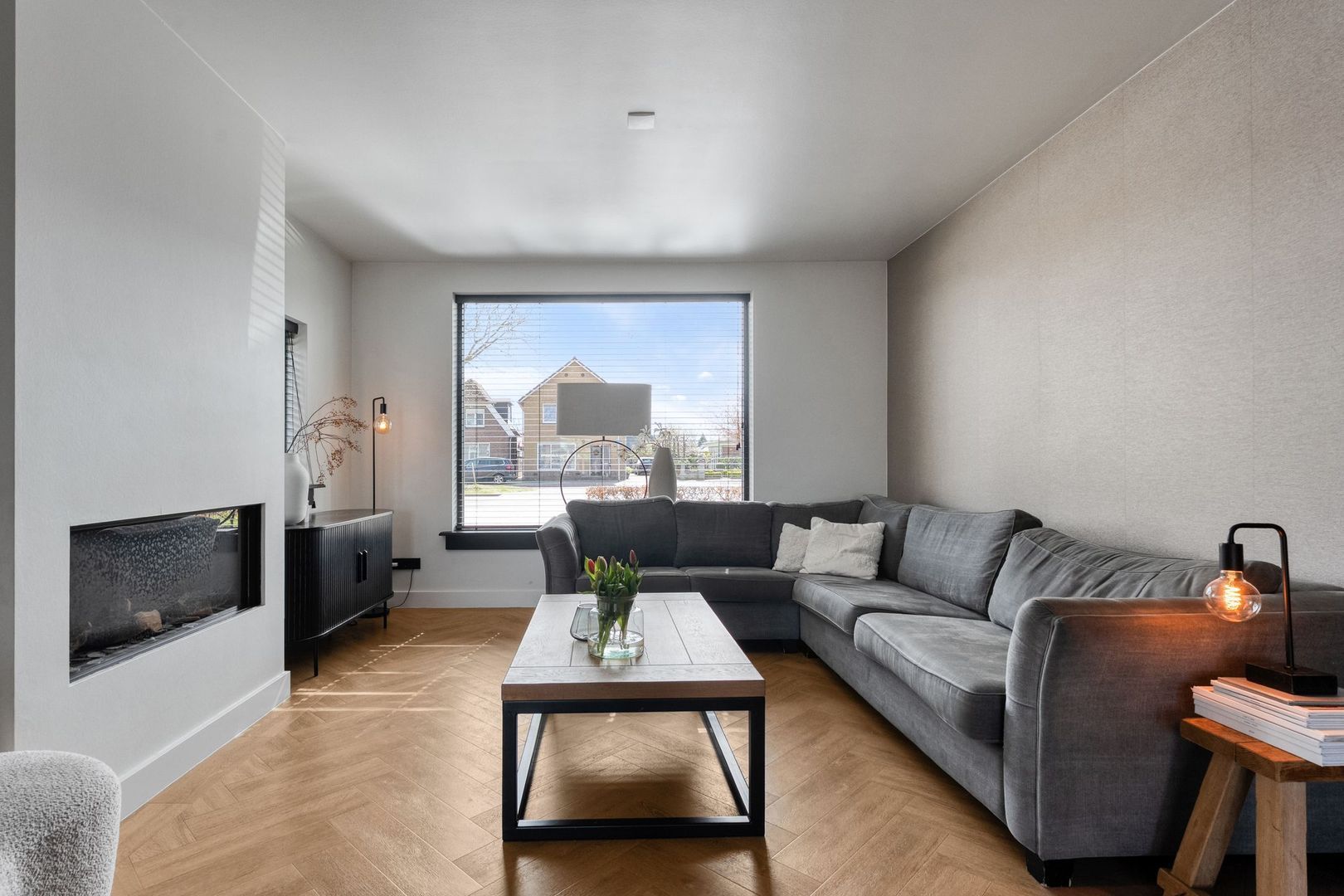 De begane grond is in 2019 grondig aangepakt en vormt het comfortabele leefhart van de woning. De gehele verdieping is voorzien van vloerverwarming (met uitzondering van de hal en het toilet), wat zorgt voor een aangenaam woonklimaat en een strakke afwerking.