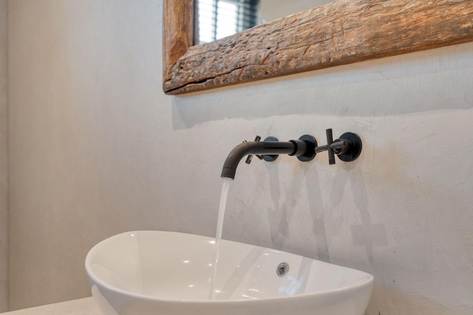 Een praktische slaapkamer met een groot kunststof draaikiepraam. Ook deze kamer is strak gestuct en voorzien van hoge plinten.