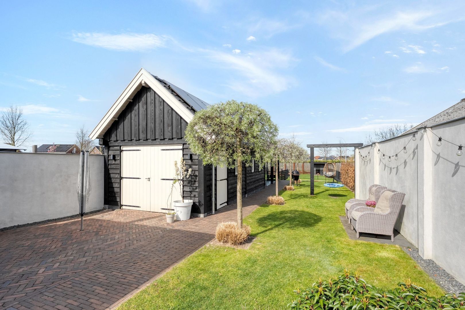 De diepe achtertuin met brede zij-ingang en royale oprit vormt een perfecte aanvulling op het wooncomfort. Met onder andere een serre met houtkachel, een grote bergschuur, zonnepanelen en diverse praktische voorzieningen is dit een ideale plek om te ontspannen en te genieten van het buitenleven.