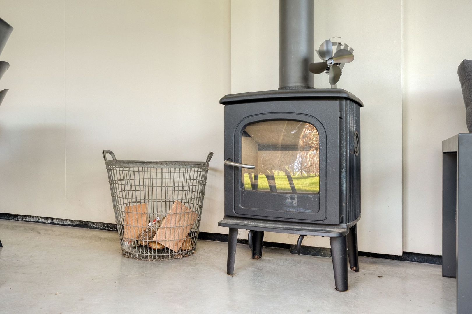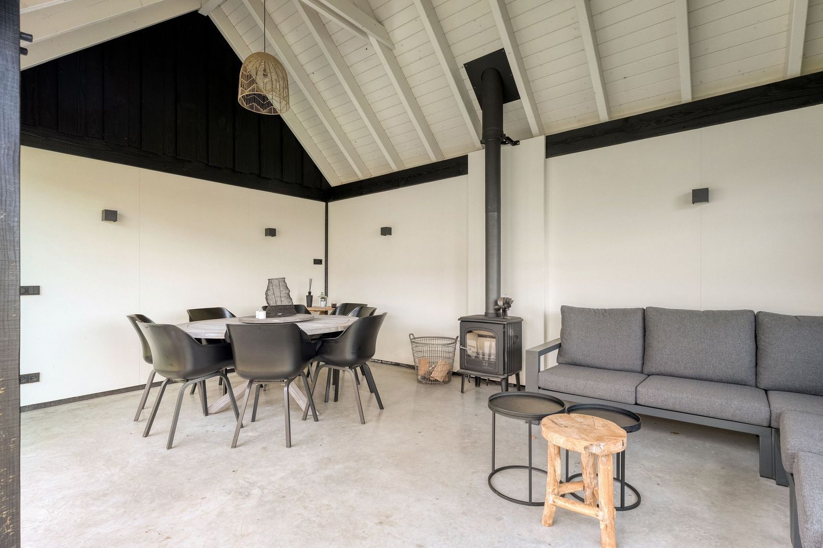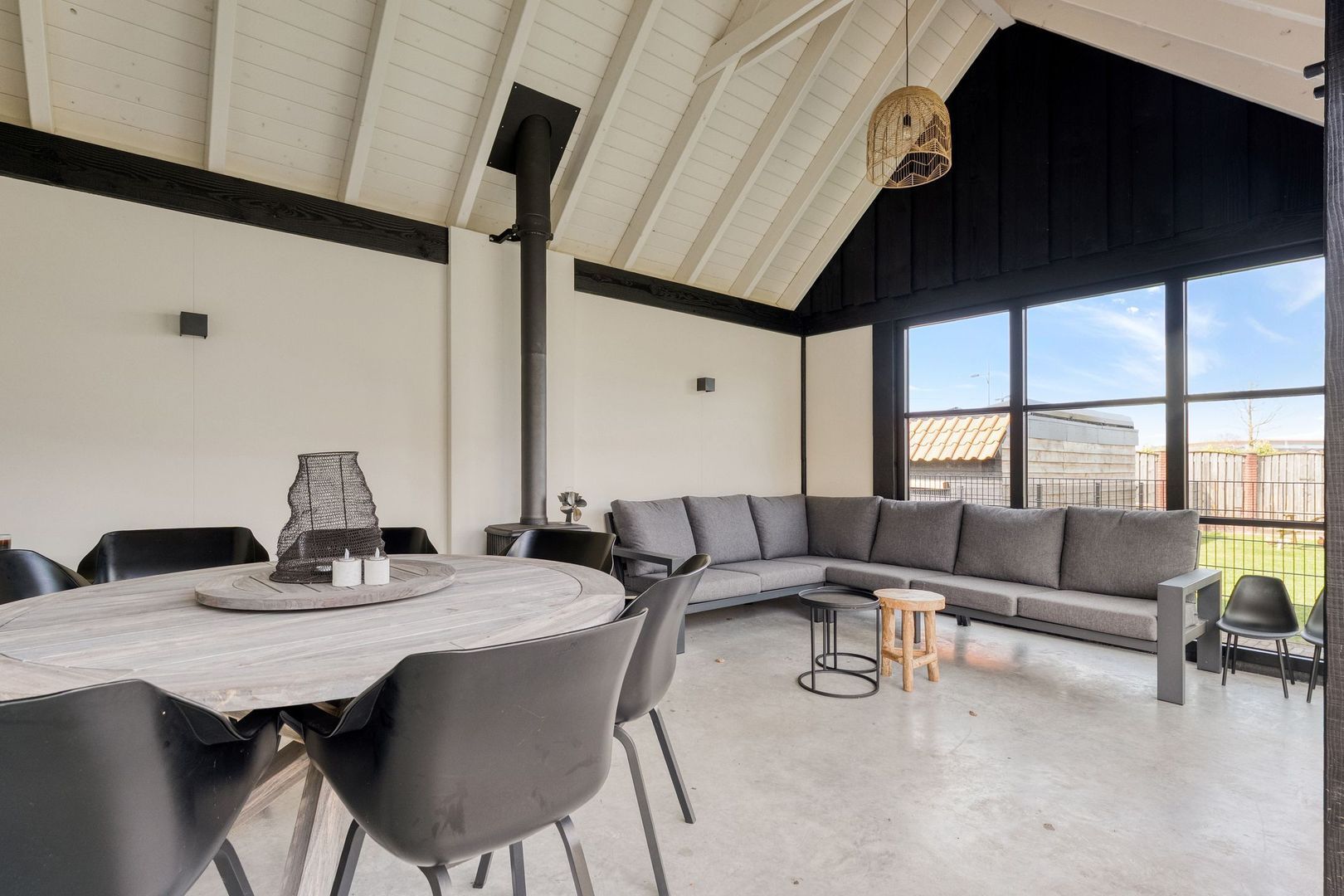 De serre vormt een verlengstuk van de woning en is voorzien van een houtkachel en een grote glazen schuifpui, waardoor deze ruimte het hele jaar door te gebruiken is.
