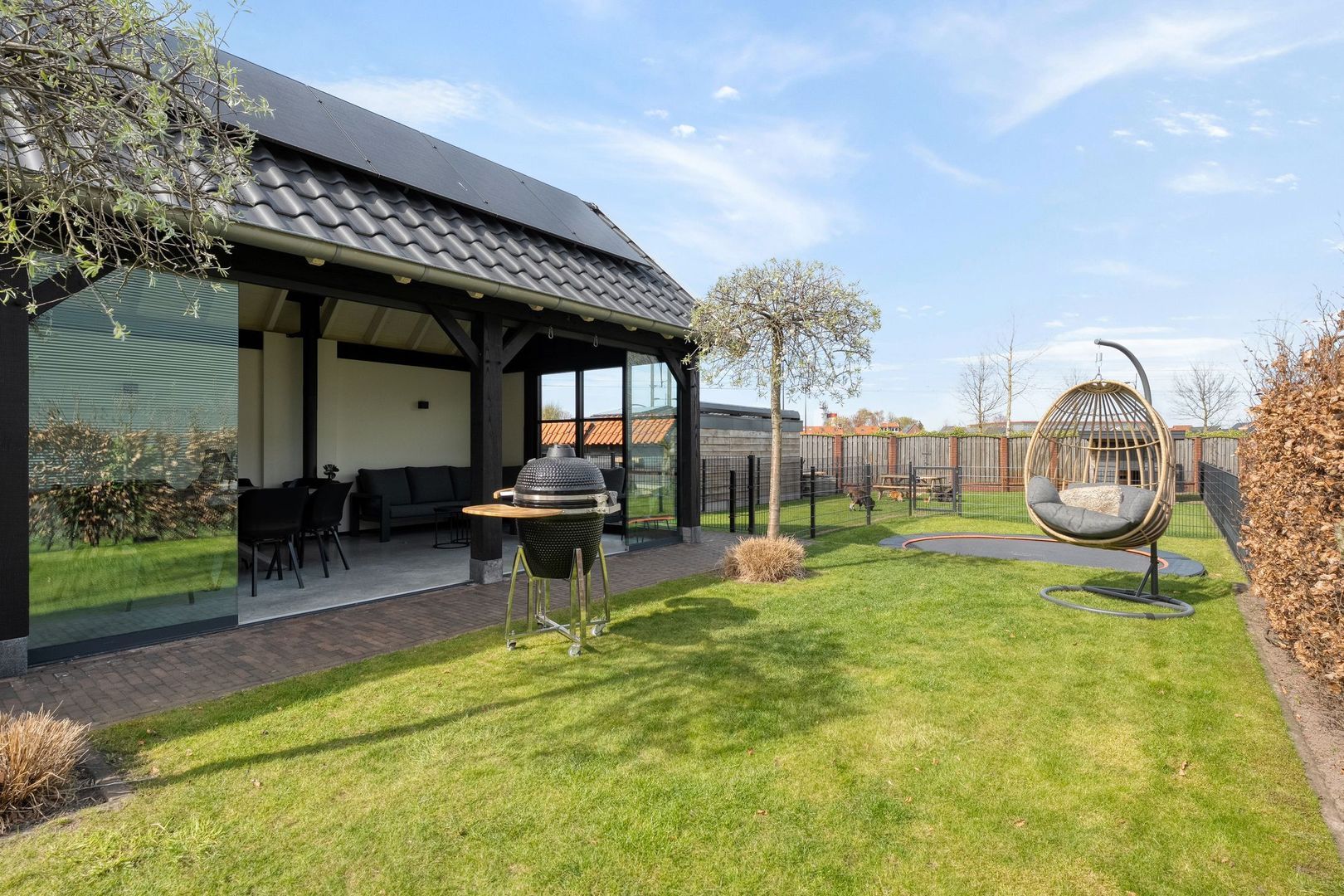 Daarnaast beschikt de tuin over diverse praktische voorzieningen, zoals een dierenverblijf met stroom en elektrische waterbak en een druppelslang rondom. De woning is voorzien van 12 zonnepanelen (2024), wat bijdraagt aan lagere energielasten.